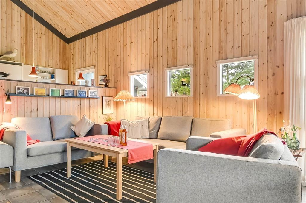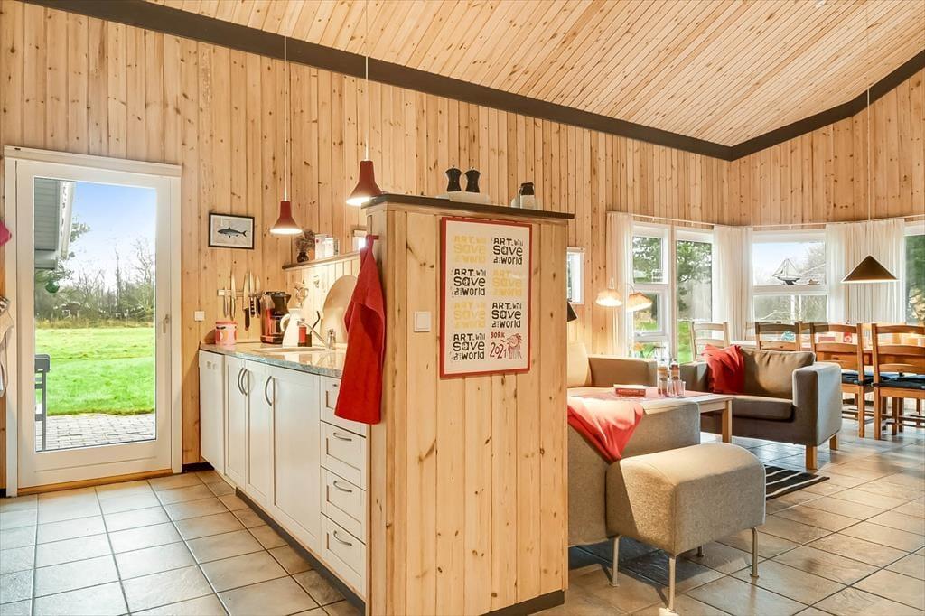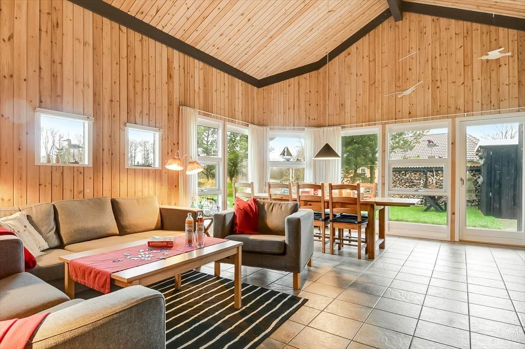 Im Inneren des Ferienhauses erwartet dich eine warme und einladende Atmosphäre, die zum Verweilen einlädt. Das Wohnzimmer ist der zentrale Treffpunkt des Hauses, wo ihr gemeinsam Brettspiele spielen, ein spannendes Buch lesen oder einen gemütlichen Filmabend verbringen könnt. Der Kamin sorgt an kühlen Tagen für wohlige Wärme, während die offene Verbindung zur Küche eine einladende, gesellige Atmosphäre schafft. Vier schöne Schlafzimmer bieten dir und deinen Liebsten erholsame Nächte, und im großen Badezimmer findest du alles, was du für einen entspannten Urlaub brauchst.