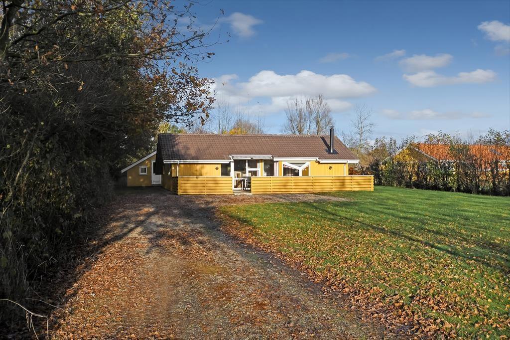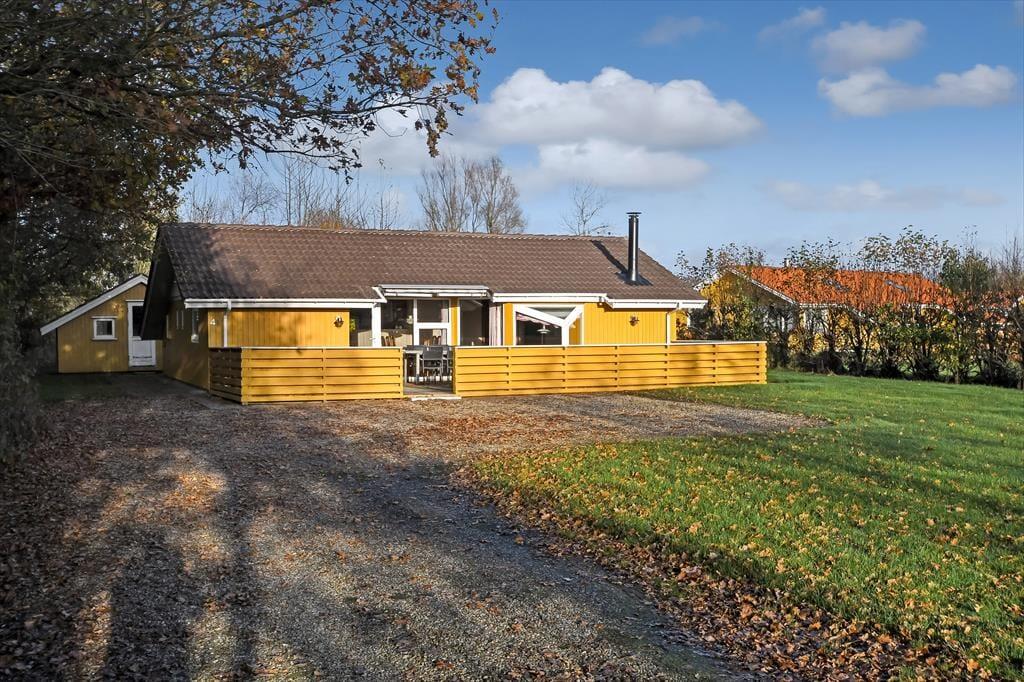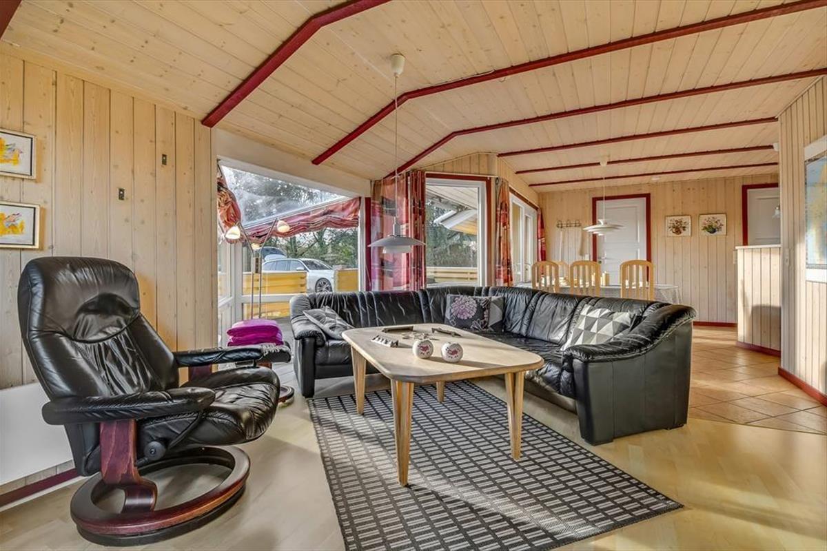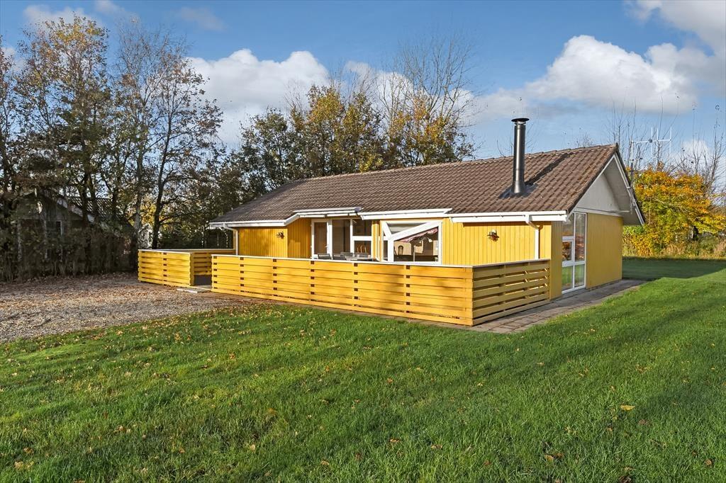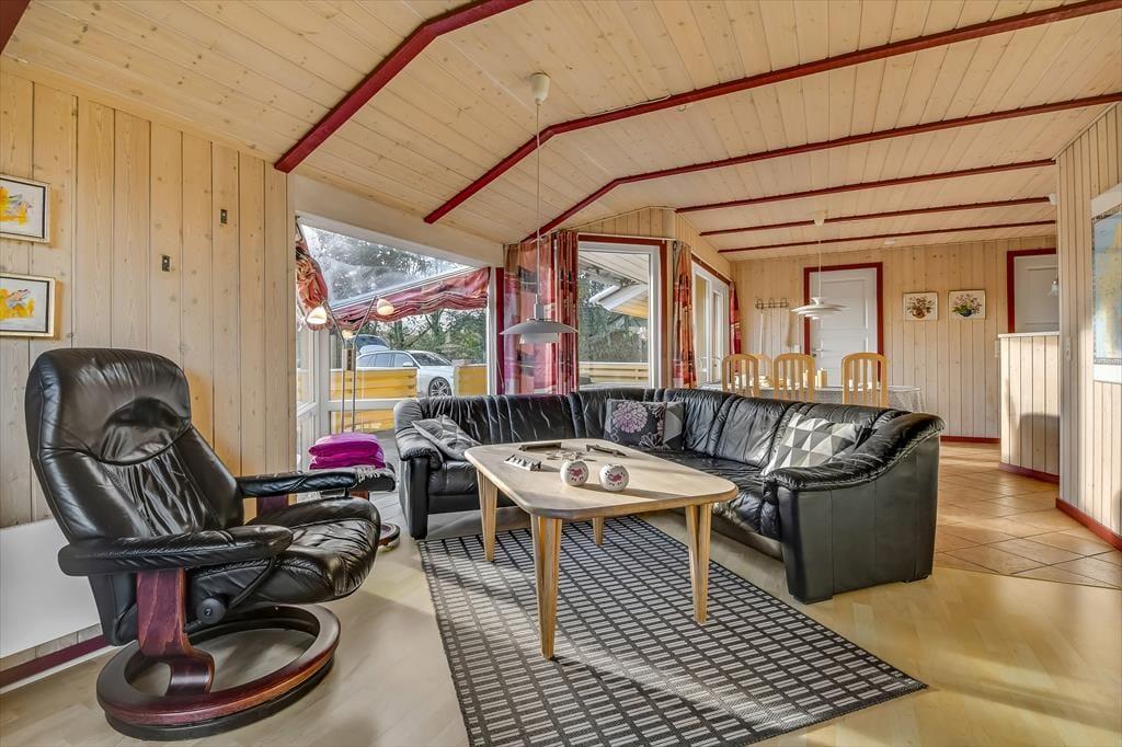 Das Ferienhaus ist von einer großen Terrasse umgeben, die dazu einlädt, die Sonne von morgens bis abends zu genießen. Beginnen Sie den Tag mit einer Tasse Kaffee in den bequemen Gartenmöbeln und beenden Sie ihn mit einem Grillabend, bei dem sich die ganze Familie am großen Esstisch versammeln kann. Der Garten bietet viel Platz zum Spielen und für Ballspiele – sowohl für Kinder als auch für Erwachsene – während die umliegende Bepflanzung eine friedliche und private Atmosphäre schafft. An warmen Sommerabenden können Sie das leise Rauschen der Wellen von der Fjordseite hören und die Ruhe genießen.