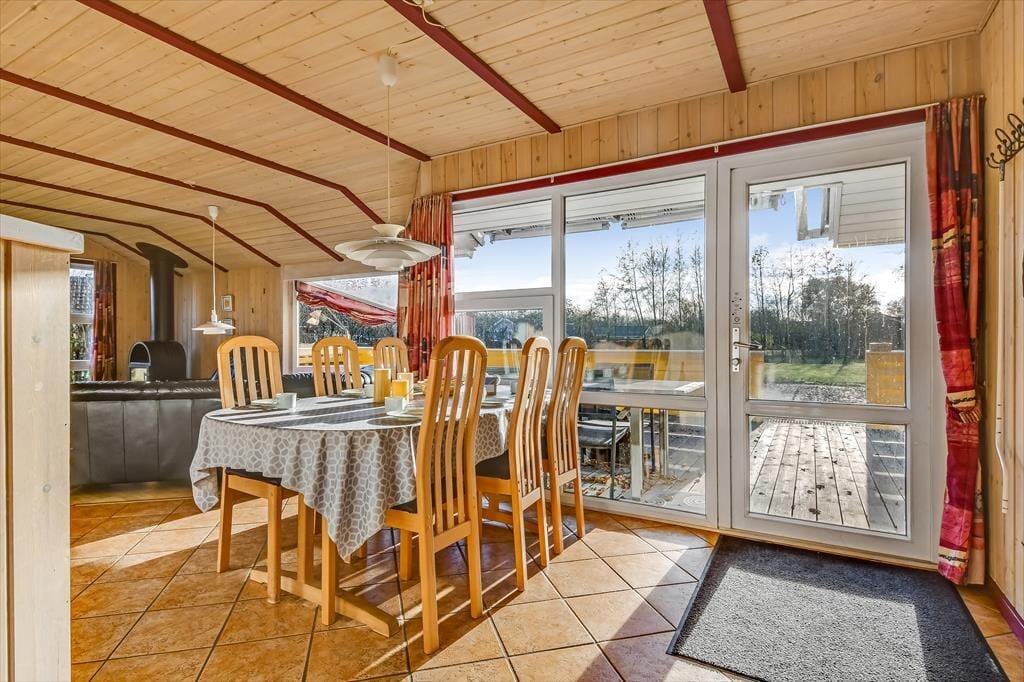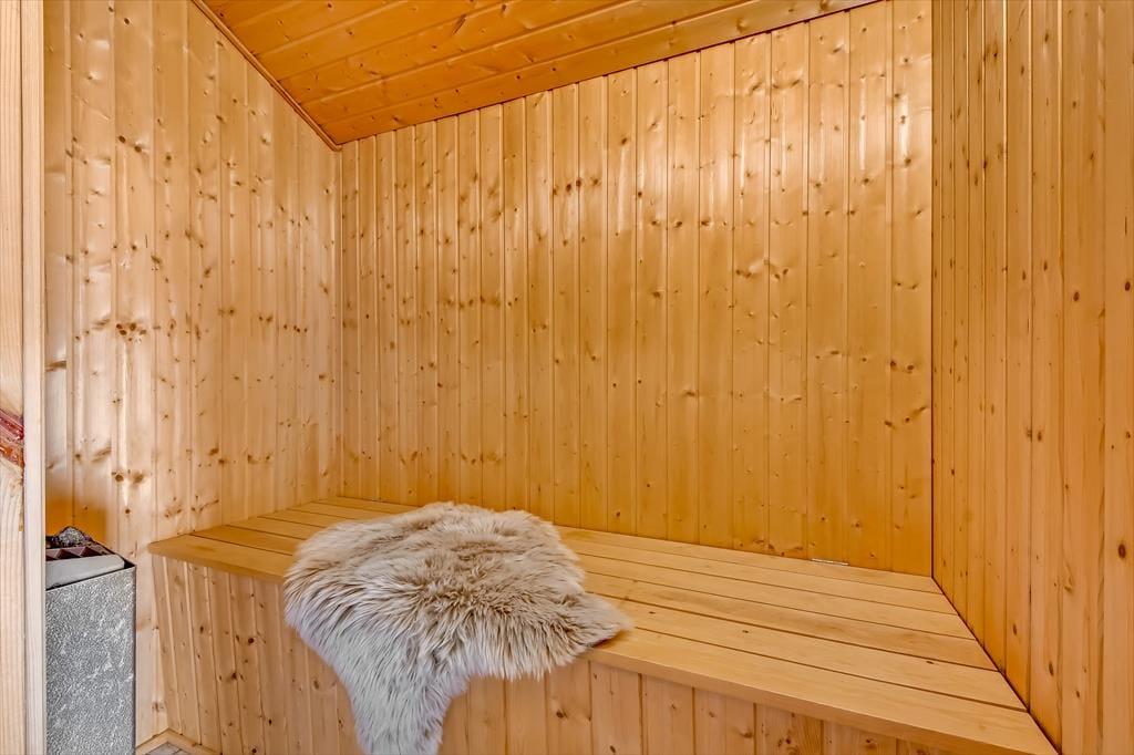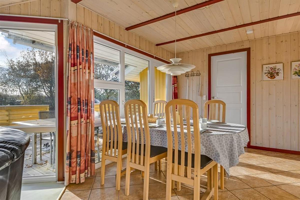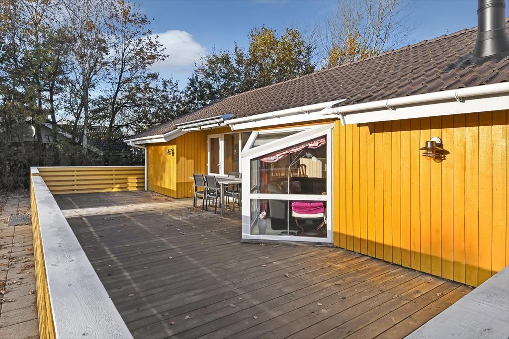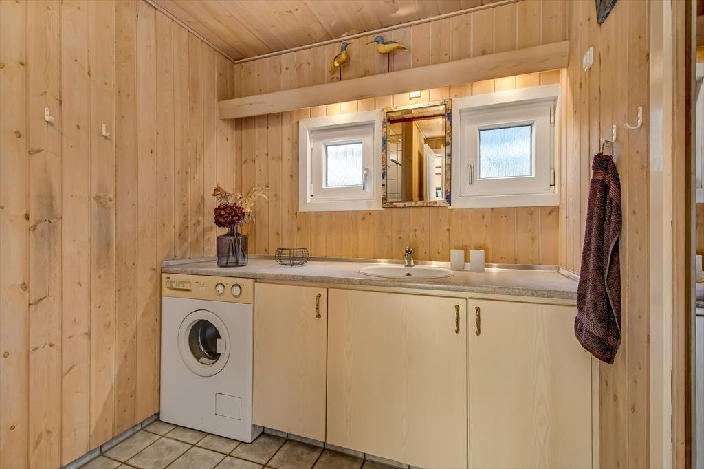 Das Ferienhaus ist von einer großen Terrasse umgeben, die dazu einlädt, die Sonne von morgens bis abends zu genießen. Beginnen Sie den Tag mit einer Tasse Kaffee in den bequemen Gartenmöbeln und beenden Sie ihn mit einem Grillabend, bei dem sich die ganze Familie am großen Esstisch versammeln kann. Der Garten bietet viel Platz zum Spielen und für Ballspiele – sowohl für Kinder als auch für Erwachsene – während die umliegende Bepflanzung eine friedliche und private Atmosphäre schafft. An warmen Sommerabenden können Sie das leise Rauschen der Wellen von der Fjordseite hören und die Ruhe genießen.