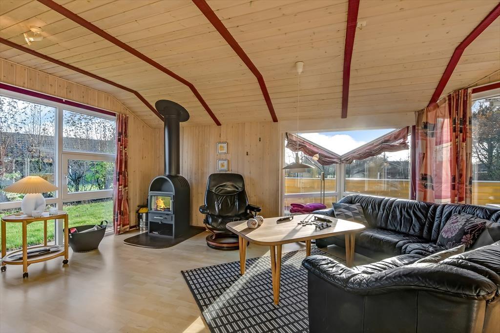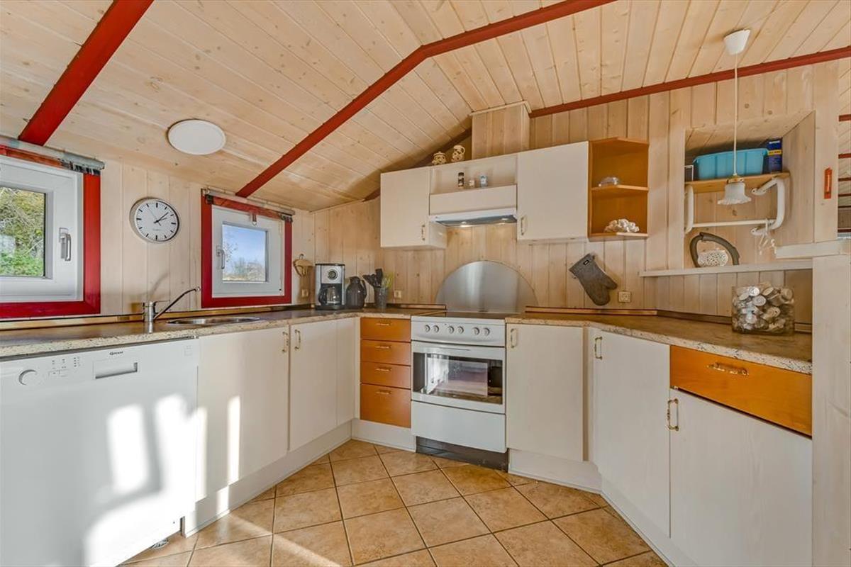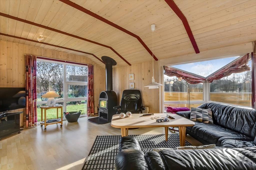 Betreten Sie dieses helle Ferienhaus, das Sie sofort willkommen heißt. Das Wohnzimmer ist mit großen Fensterfronten gestaltet, die die Natur ins Haus holen und eine freundliche und lichtdurchflutete Atmosphäre schaffen. Der Kamin sorgt an kühleren Abenden für Wärme und Gemütlichkeit, während die offene Verbindung zwischen Küche und Wohnzimmer perfekte Möglichkeiten für gemeinsames Kochen und Gespräche bietet. Das Haus verfügt über drei komfortable Schlafzimmer und ein geräumiges Badezimmer, das mit seiner praktischen Einrichtung für erholsame Urlaubstage sorgt.