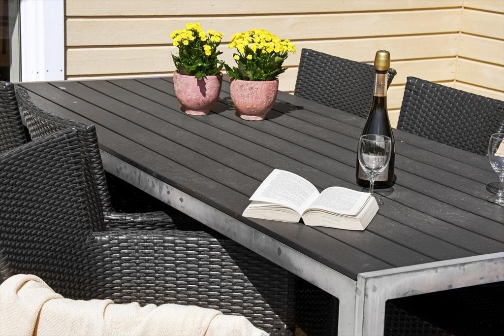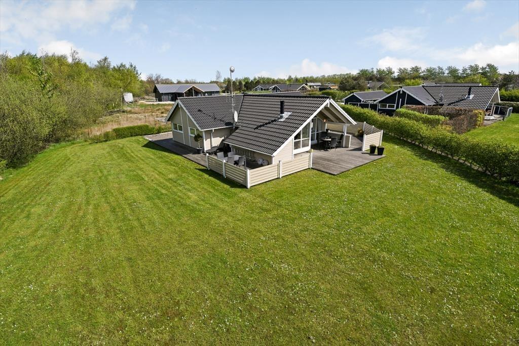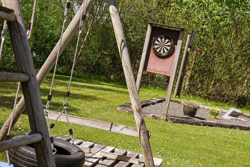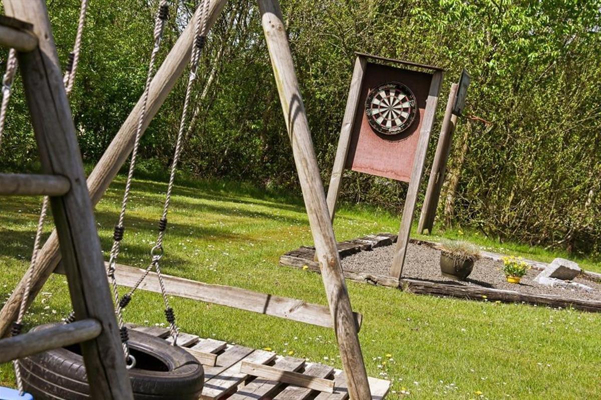Draußen erwartet dich ein Garten mit viel Platz für Spiel, Erholung und das Leben unter freiem Himmel. Die Rasenfläche lädt zu Ballspielen ein, und die Kinder werden sich schnell über die Schaukel oder eine Partie Dart freuen. Die Erwachsenen können es sich auf der Terrasse gemütlich machen, den Morgenkaffee in der Sonne genießen oder das Abendessen auf dem Grill zubereiten, während die Kinder in der Nähe spielen. Weil das Haus am Ende einer geschlossenen Straße liegt, kannst du das Draußensein ganz ungestört genießen – mit viel Privatsphäre und Abstand zu den Nachbarn. So kann sich die Ruhe ausbreiten und das Urlaubsgefühl übernehmen – ganz gleich, ob du einen aktiven oder entspannten Tag geplant hast.