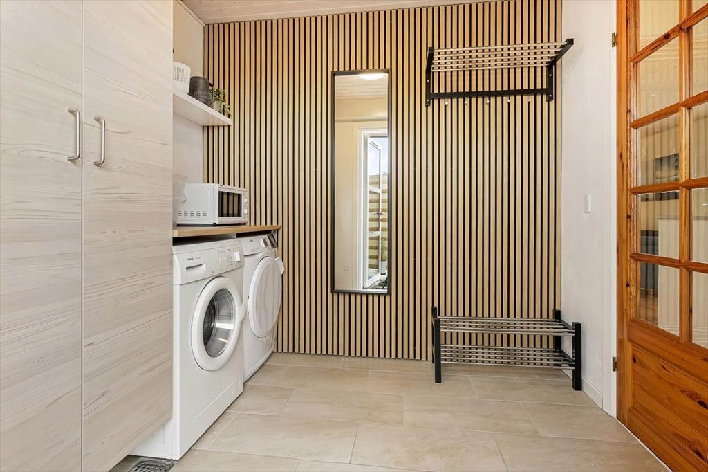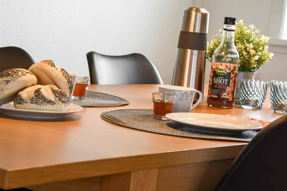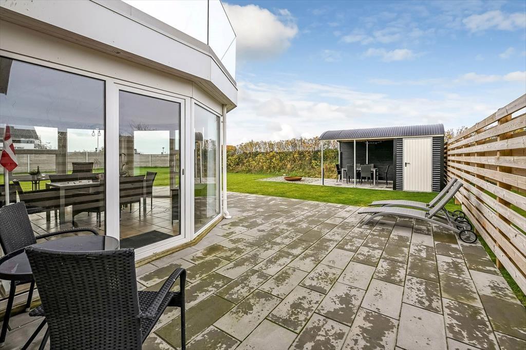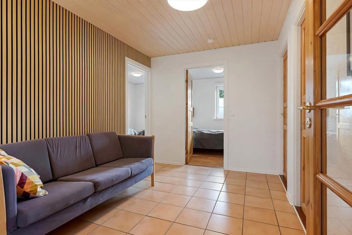 Auch draußen gibt es viel zu freuen sich. Das Grundstück des Ferienhauses bietet beste Voraussetzungen dafür, den Tag in eurem eigenen Rhythmus zu gestalten – vielleicht mit einer Tasse Kaffee in der Hand, während ihr den Vögeln lauscht, oder mit einem entspannten Moment nach einem Spaziergang entlang des Wassers. Der Wintergarten dient als natürliches Bindeglied zwischen Innen- und Außenbereich und macht es leicht, Licht und Aussicht zu genießen, egal wie das Wetter sich zeigt. Die kurze Entfernung zum Wasser bedeutet, dass ihr jederzeit spontan zur Fjordküste gehen könnt, um die Zehen in der flachen Wasserkante zu baden, den Wind im Haar zu spüren oder einfach den Blick über die ruhige Wasseroberfläche schweifen zu lassen.