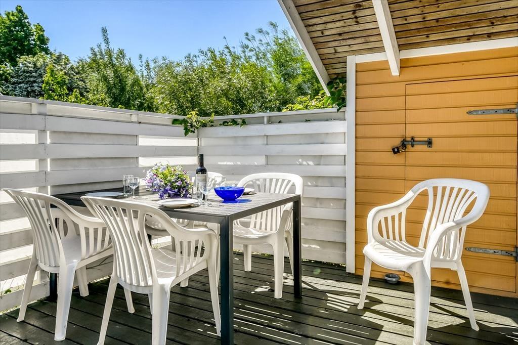 Step outside to a lovely green garden with shelter and several sunny spots, so you can always find a place in the sun – or shade, if that is what you prefer. Here you can truly relax, let the sun warm your skin, and listen to the birds singing in the trees around you. The terrace is equipped with lounge furniture for relaxing and a dining area for enjoying meals under the open sky. Your dogs will love sniffing around the garden while the children play on the grass. Whether you are taking a nap in a garden chair, playing outdoor games with the family or toasting with a glass of rosé at sunset, you can enjoy your holiday at your own pace – surrounded by peace, shelter and plenty of nature.