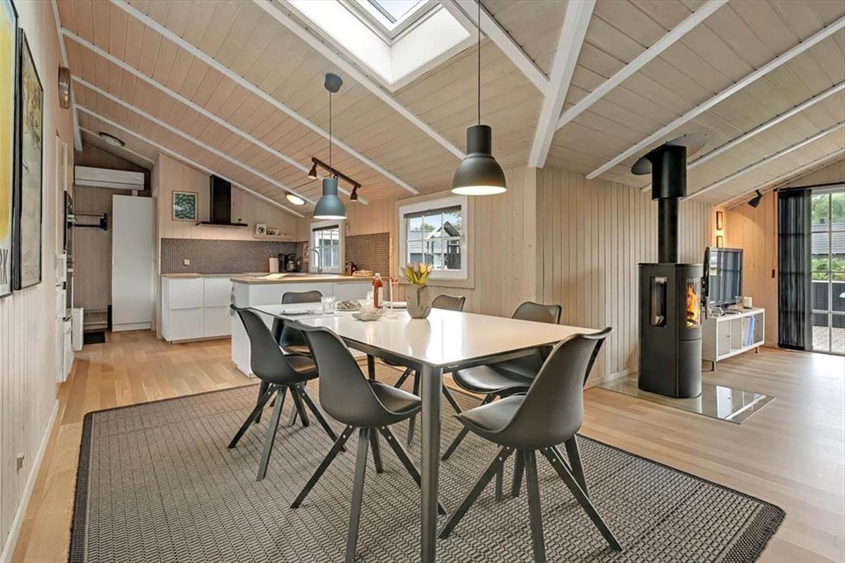 Im Inneren erwartet Sie eine helle und einladende Atmosphäre, in der auf jedes Detail geachtet wurde. Die gut ausgestattete Küche ist offen mit dem Wohnbereich verbunden, sodass Sie beim Kochen, Essen und Entspannen immer zusammen sein können, egal, wo Sie sich im Raum befinden. Im Sofabereich können Sie gemeinsam Brettspiele spielen oder einen guten Film schauen, während das Feuer im Kamin knistert und Wärme sowie Gemütlichkeit verbreitet. Das Badezimmer ist eine wahre Oase, in der Sie sich im Whirlpool zurücklehnen und die Massagen der Blasen genießen können, bevor ein Saunagang das entspannende Urlaubserlebnis perfekt abrundet. Alles in allem bietet das Ferienhaus den perfekten Rahmen, damit die ganze Familie sich wie zu Hause fühlen und die gemeinsame Zeit in einer entspannten Atmosphäre genießen kann.