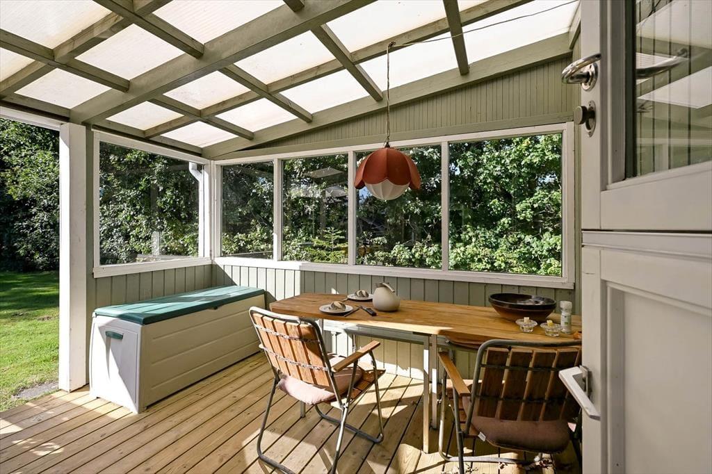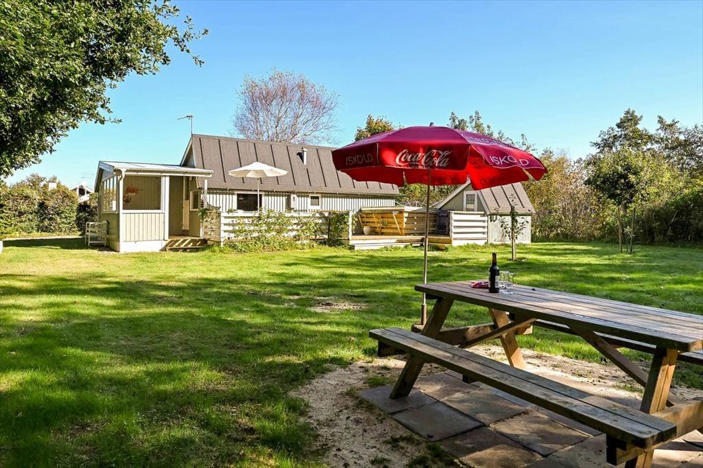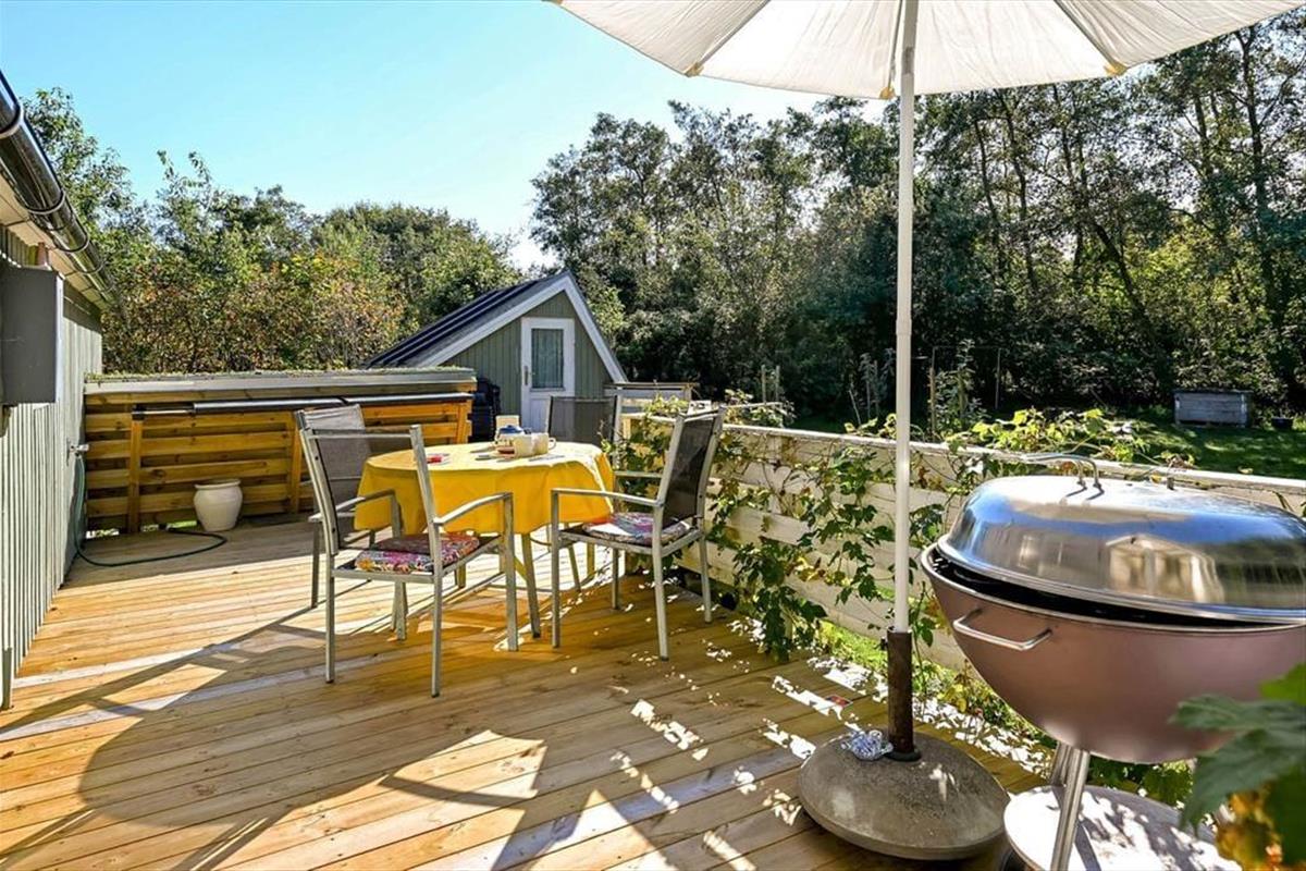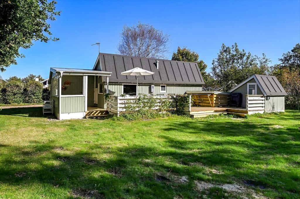 Das Ferienhaus in der Horsfold 39 hat einen ganz besonderen Vorzug: die Außenbereiche. Hier erwartet dich ein friedlicher Garten, in dem Vogelgezwitscher und Blätterrauschen die Hintergrundmusik eurer Ferientage bilden. Die neue Holzterrasse aus dem Jahr 2025 bietet den perfekten Rahmen für alles, was man mit dem Ferienhausleben verbindet – von entspannten Morgenstunden mit frisch gebrühtem Kaffee bis zu lauen Sommerabenden mit leckerem Essen, an denen die Zeit ein wenig stillzustehen scheint. Die Terrasse ist so ausgerichtet, dass du im Laufe des Tages sowohl Sonne als auch Schatten findest, und dank der gemütlichen überdachten Ecke möchte man am liebsten den ganzen Tag draußen verbringen. Der Garten lädt dazu ein, das Leben in ruhigem Tempo zu genießen. Vielleicht entdecken die Kinder ihren Lieblingsplatz zum Spielen auf dem Rasen – oder ihr versinkt gemeinsam in der besonderen Sommerhaus-Stille, die nur ein gut geschützter Garten bieten kann.