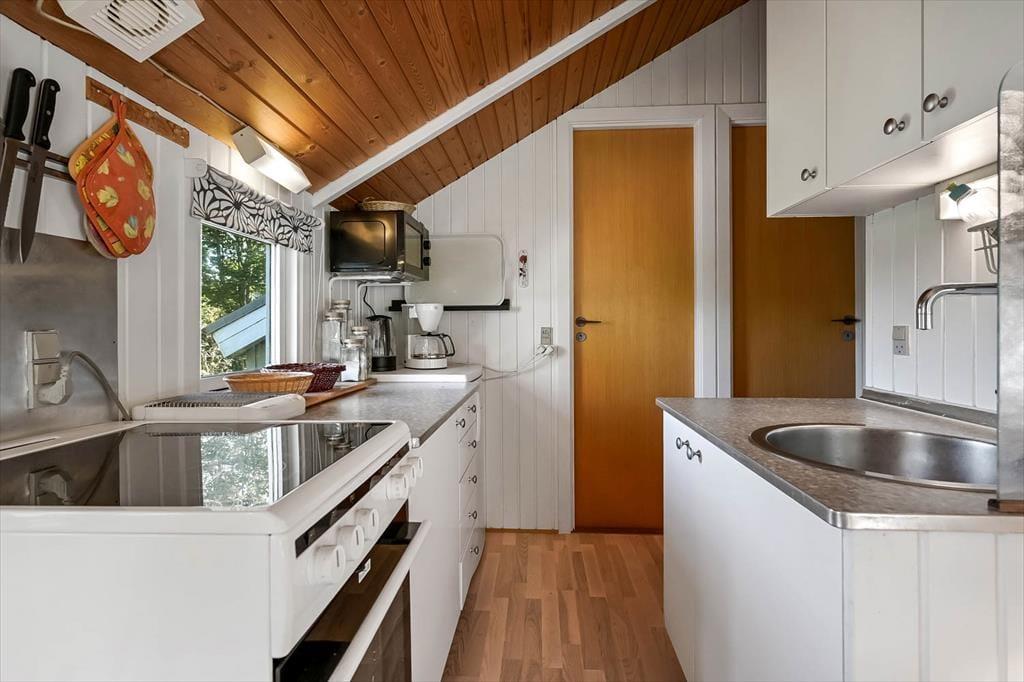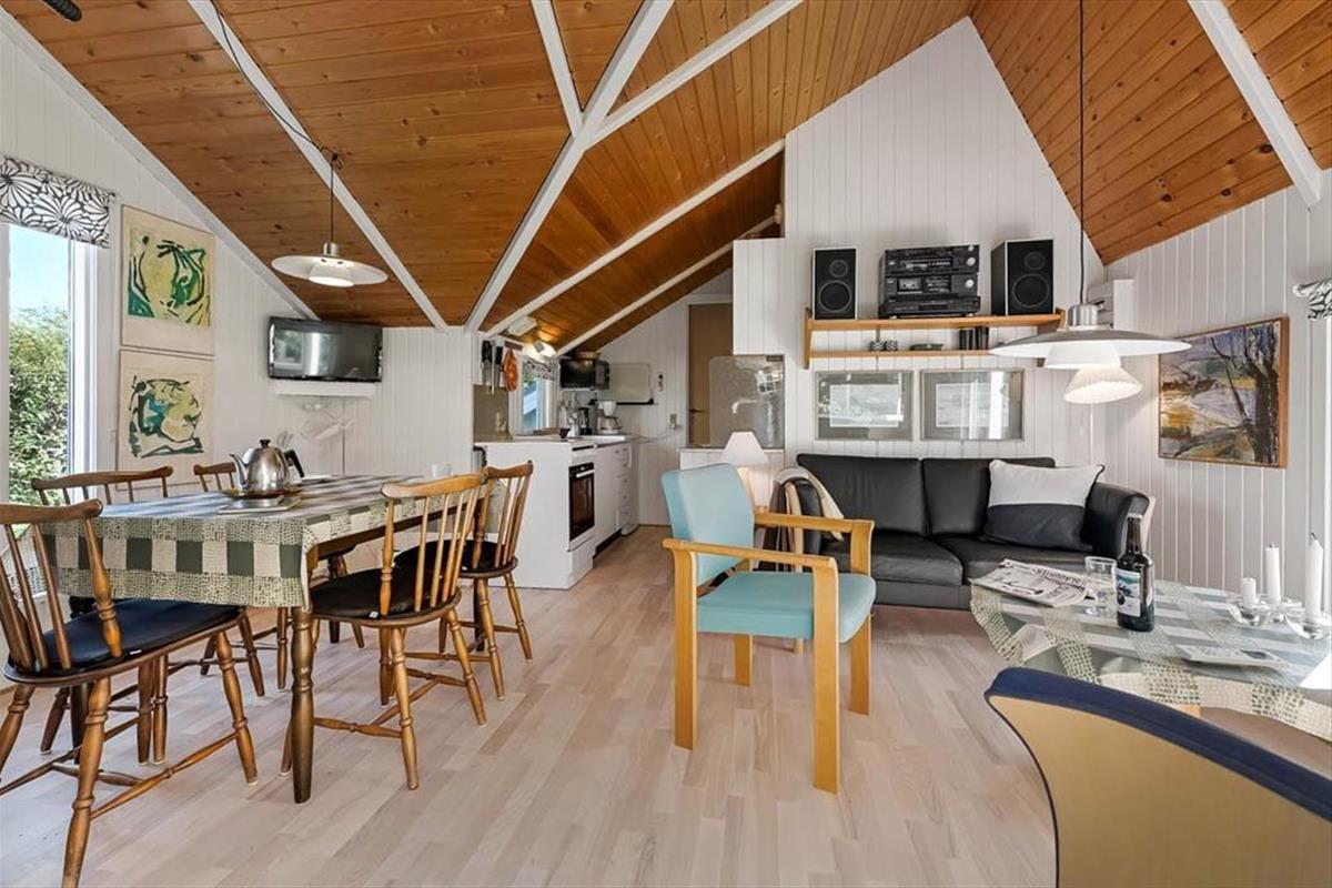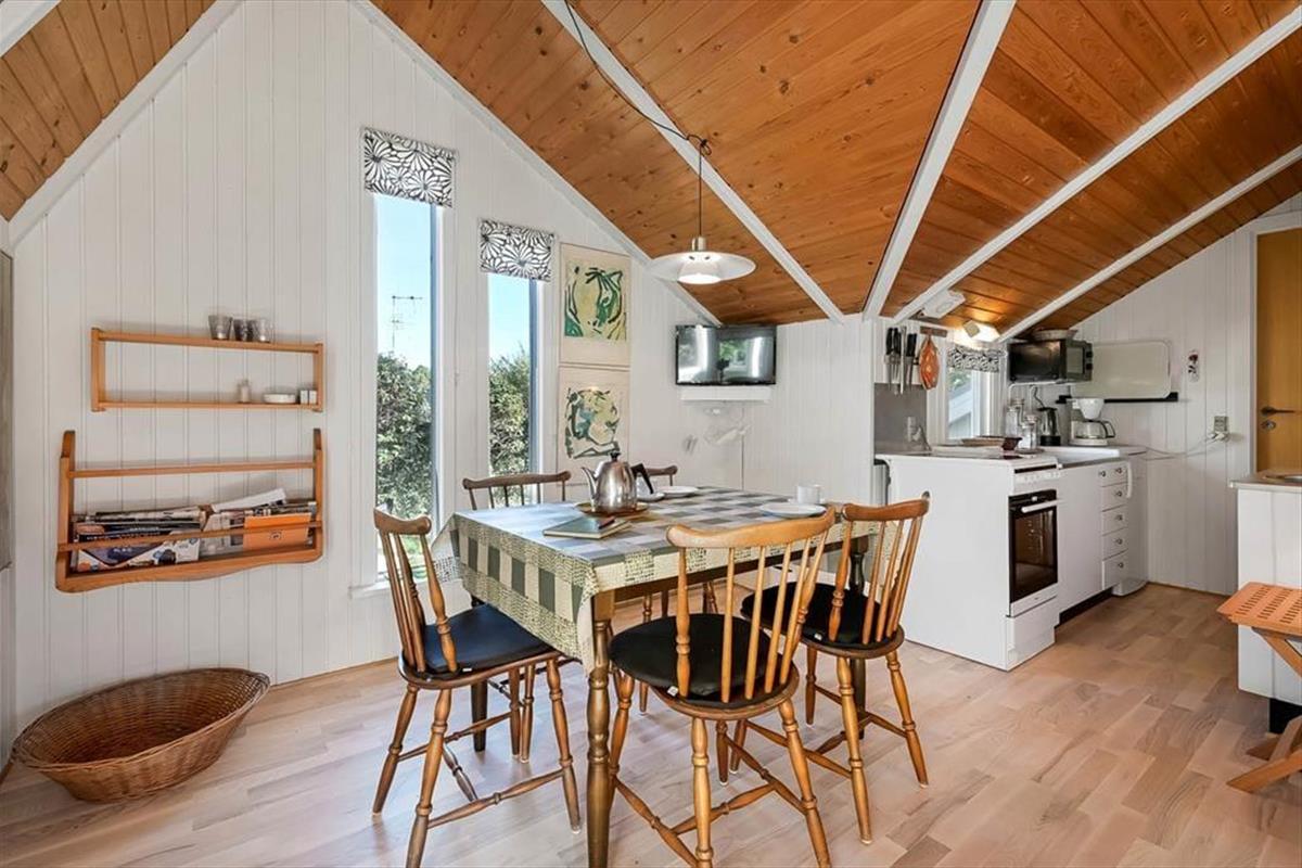 Im Inneren des Ferienhauses herrscht eine warme und bodenständige Atmosphäre – genau so, wie es in einem klassischen Ferienhaus am Fjord sein sollte. Die hellen Räume, die luftige Raumhöhe und die ruhige Einrichtung sorgen dafür, dass man vom ersten Moment an entspannen kann. Vielleicht wird der Esstisch euer fester Treffpunkt für lange Frühstücksrunden und gesellige Brettspielabende, während das Wohnzimmer dazu einlädt, sich mit einem Buch, einer Tasse Kaffee oder einer Serie gemütlich zurückzuziehen. Die Küche liegt praktisch nahe am Wohnbereich, sodass du beim Kochen weiterhin Teil des Beisammenseins bist – und gleichzeitig im Blick hast, was draußen im Garten passiert. Die Ferienbasis ist so gestaltet, dass sie entspannt und einladend wirkt, sodass sich sowohl Familie und Freunde als auch die zwei mitgebrachten Hunde schnell zuhause fühlen.