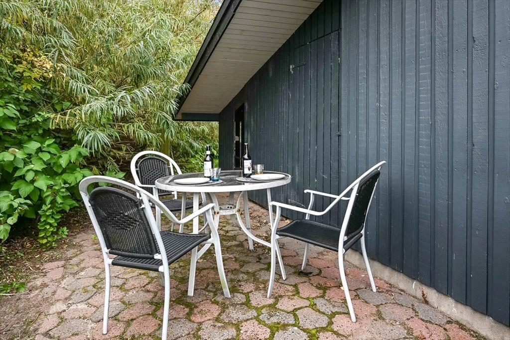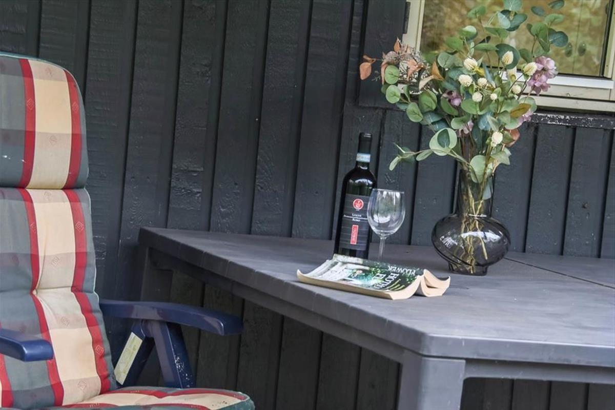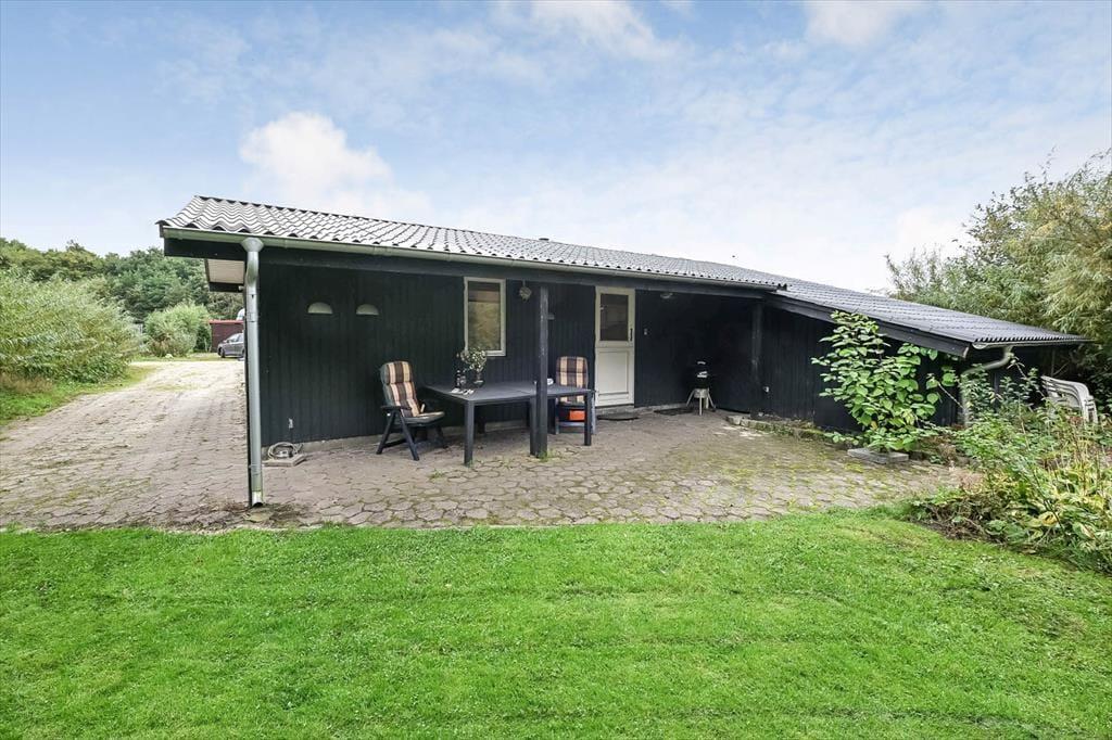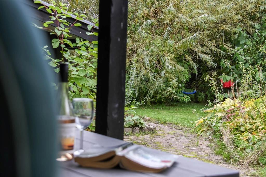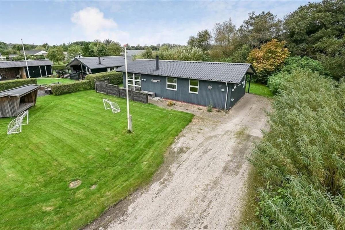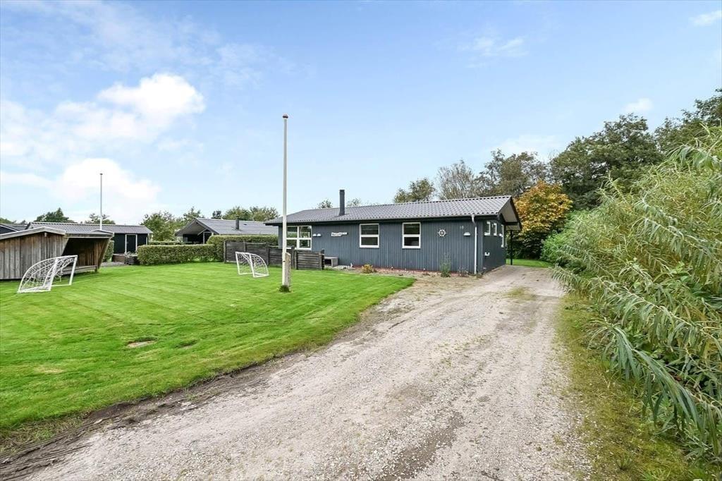Draußen erwartet dich ein schöner Garten, der zu Entspannung und kleinen Abenteuern einlädt. Die Terrasse ist der perfekte Ort für die ruhigen Momente des Tages – vom Morgenkaffee in der Sonne bis zum Abendessen, das in der frischen westjütländischen Luft gleich noch gemütlicher schmeckt. Der Garten bietet sowohl geschützte Ecken, in denen du dem Zwitschern der Vögel lauschen kannst, als auch offene Bereiche für Ballspiele und gemeinsame Aktivitäten. Ein besonderes Highlight ist das gemütliche Shelter, das bereitsteht für Feriengäste, die bei gutem Wetter unter freiem Himmel übernachten möchten. Hier spürst du die besondere Ruhe, die es nur frühmorgens in einem Ferienhausgebiet gibt – mit Tau im Gras und dem leisen Klang des Fjords in der Ferne. Das verleiht deinem Urlaub eine Extraportion Nähe zur Natur.