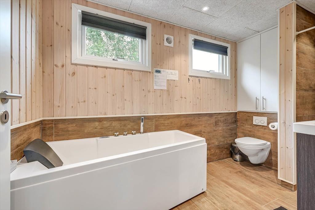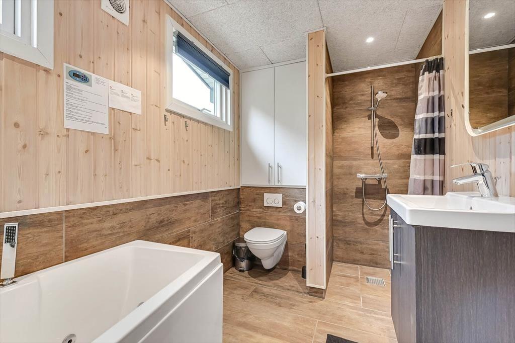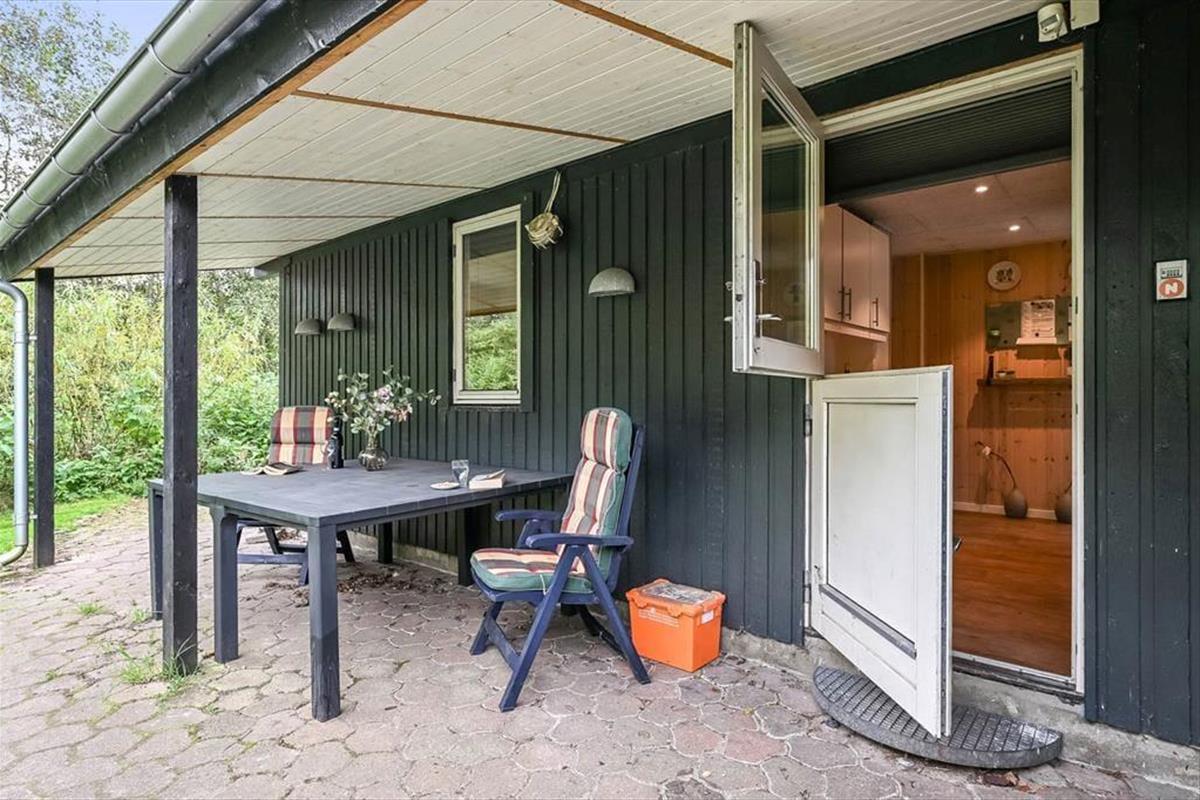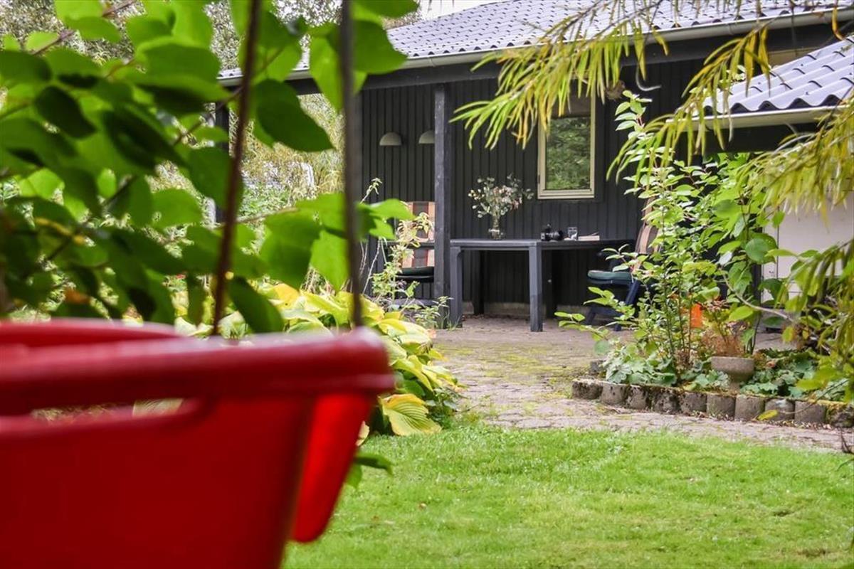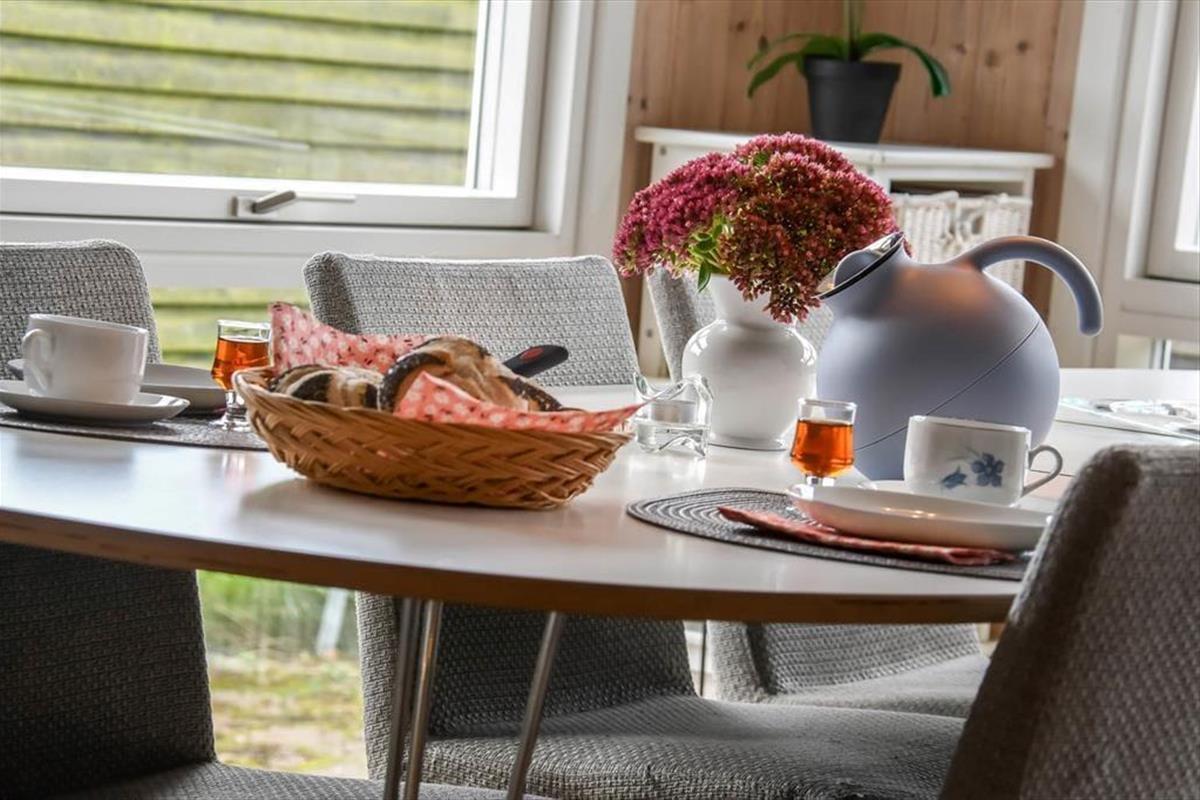 Draußen erwartet dich ein schöner Garten, der zu Entspannung und kleinen Abenteuern einlädt. Die Terrasse ist der perfekte Ort für die ruhigen Momente des Tages – vom Morgenkaffee in der Sonne bis zum Abendessen, das in der frischen westjütländischen Luft gleich noch gemütlicher schmeckt. Der Garten bietet sowohl geschützte Ecken, in denen du dem Zwitschern der Vögel lauschen kannst, als auch offene Bereiche für Ballspiele und gemeinsame Aktivitäten. Ein besonderes Highlight ist das gemütliche Shelter, das bereitsteht für Feriengäste, die bei gutem Wetter unter freiem Himmel übernachten möchten. Hier spürst du die besondere Ruhe, die es nur frühmorgens in einem Ferienhausgebiet gibt – mit Tau im Gras und dem leisen Klang des Fjords in der Ferne. Das verleiht deinem Urlaub eine Extraportion Nähe zur Natur.