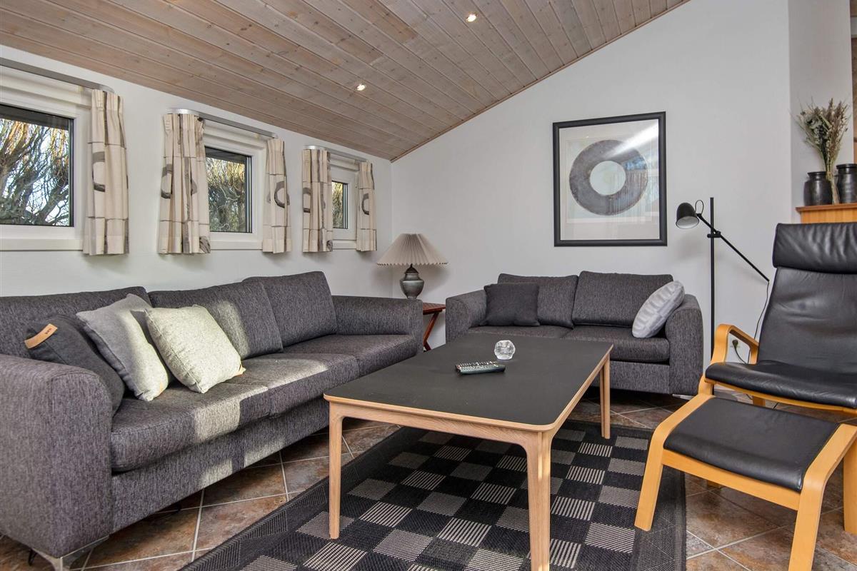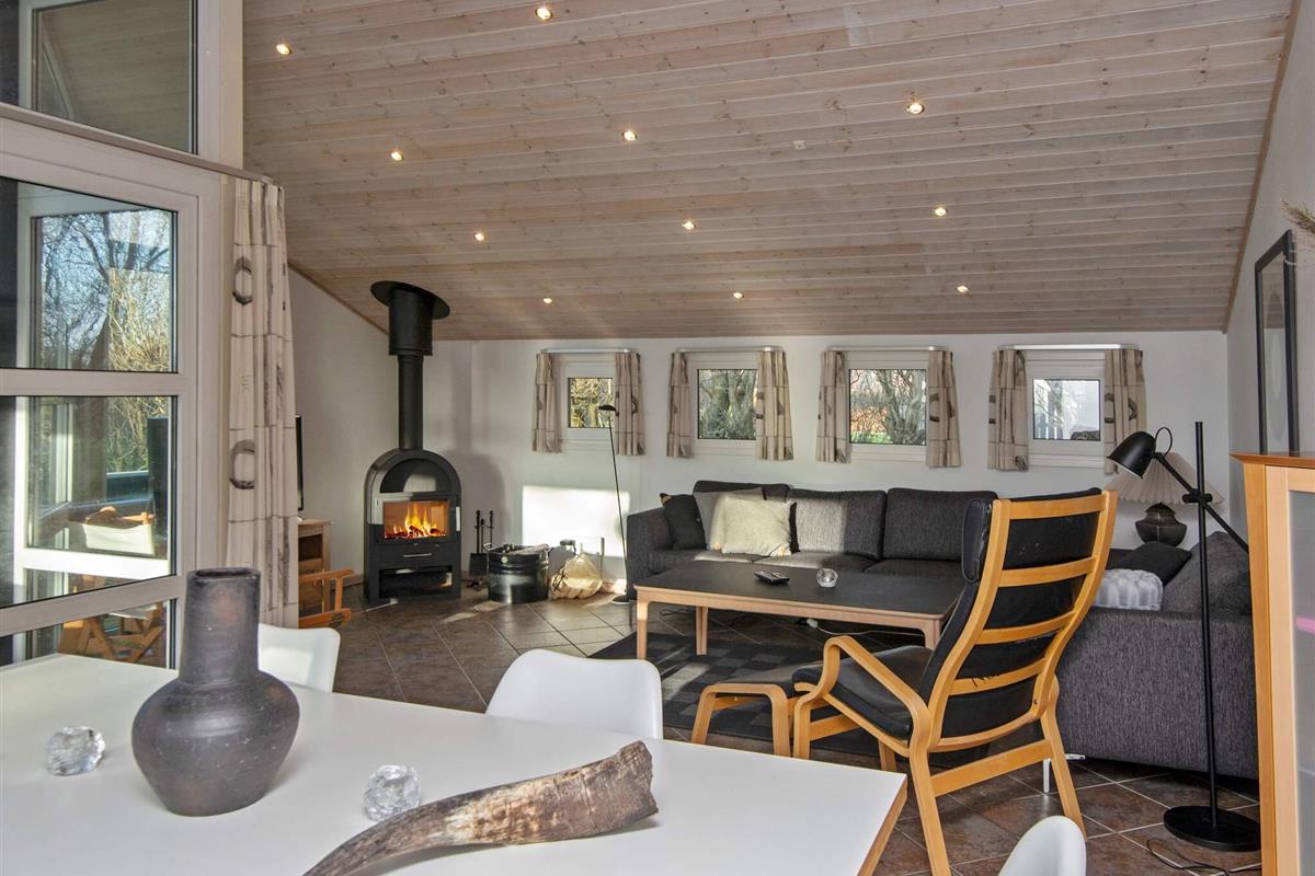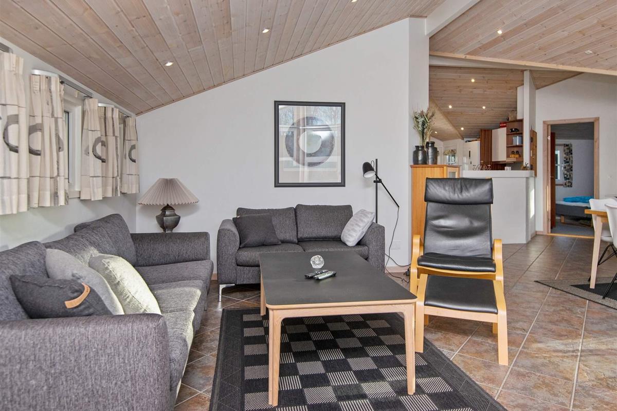 Im Haus offener Küchen-/Wohnbereich mit angenehmer Fußbodenheizung und viel Platz für das Familienleben. Im Haus gibt es diverse schöne Details, wie z.B. die eingebauten Spots in den Decken, die für ein besonderes Lichtspiel sorgen. Nach einem langen Tag in der Natur ist im warmen Wasser des Whirlpools für zwei Personen Platz für Erholung. Vom Bad hat man zudem Zugang zur hauseigenen Sauna. Die klimafreundliche Wärmepumpe sorgt das ganze Jahr hindurch für ein behagliches Raumklima. Zum Ferienhaus gehört auch eine große Terrassenfläche für sonnige Tage sowie eine Rasenfläche für Spiel und Spaß.