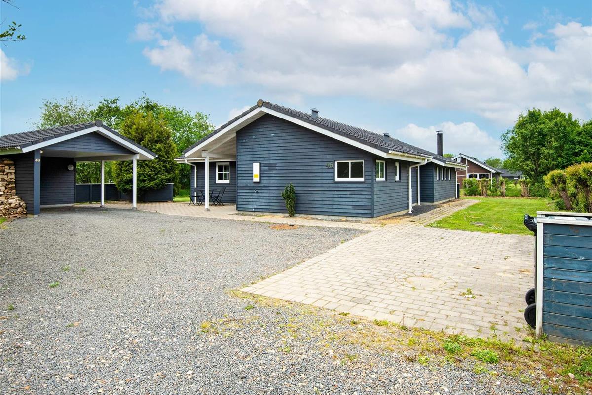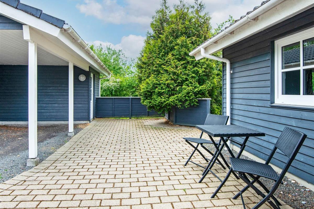 Und: Terrasse, überd. Terrasse, Carport, Luft-Luft-Wärmepumpe, Naturgrundst. m. Bäumen 1200 m2, komfortable Möblierung, Ferienhausgebiet, Nichtraucherhaus