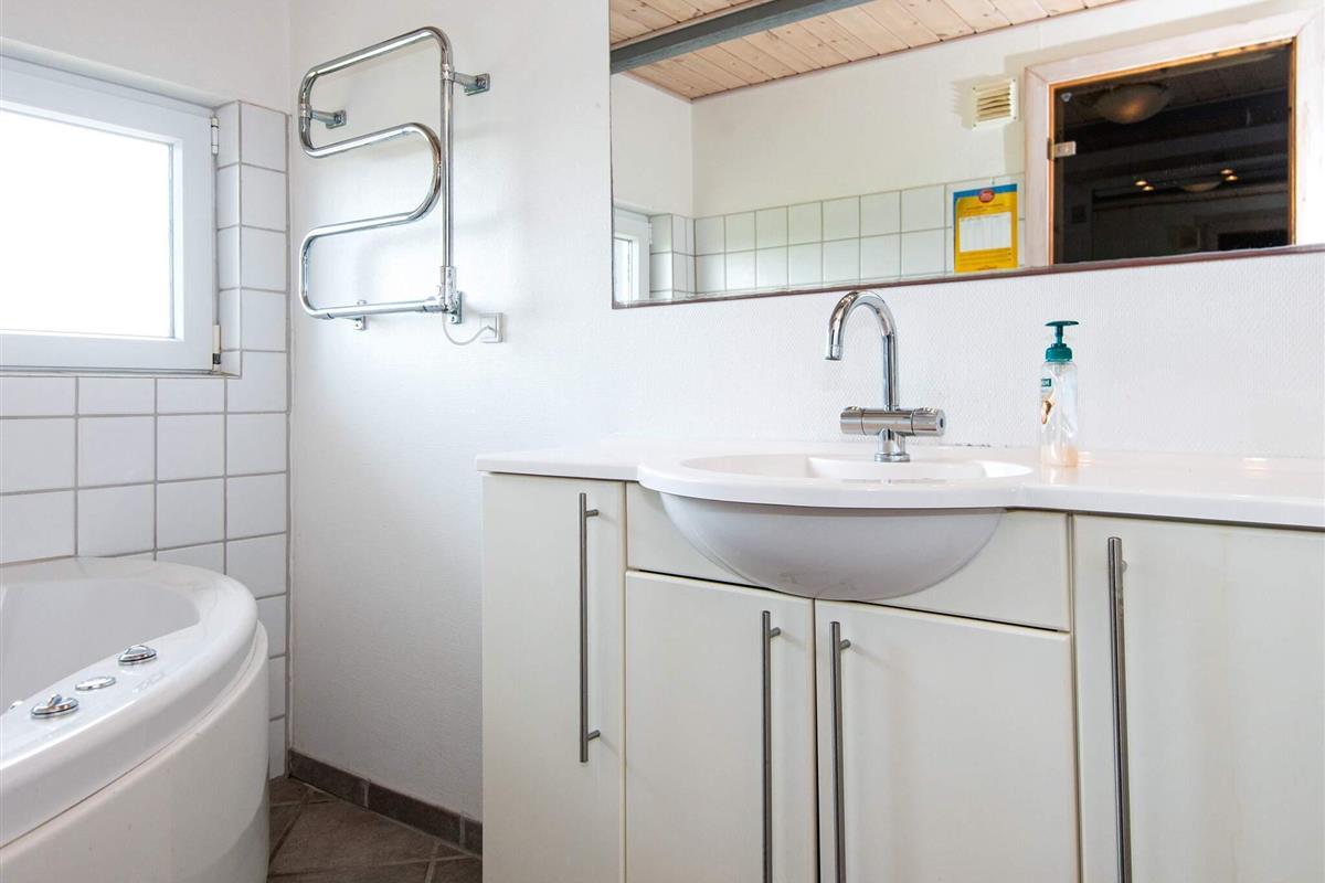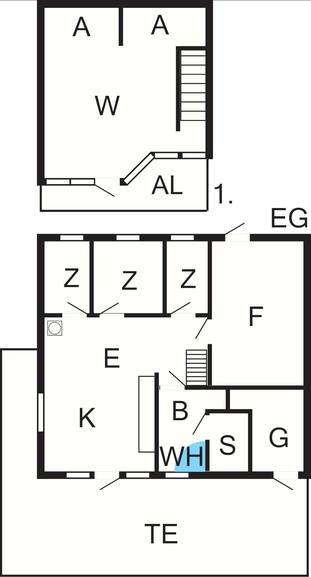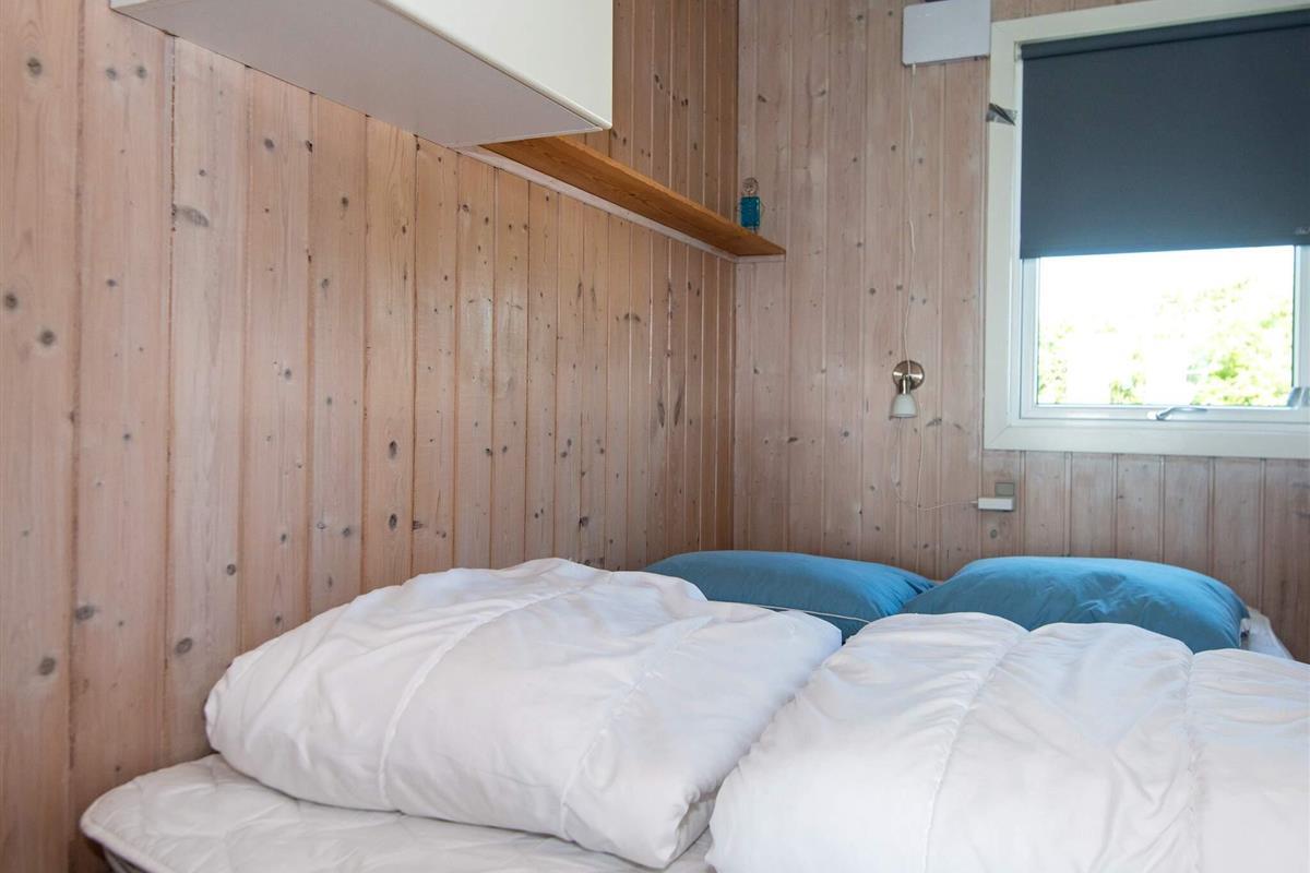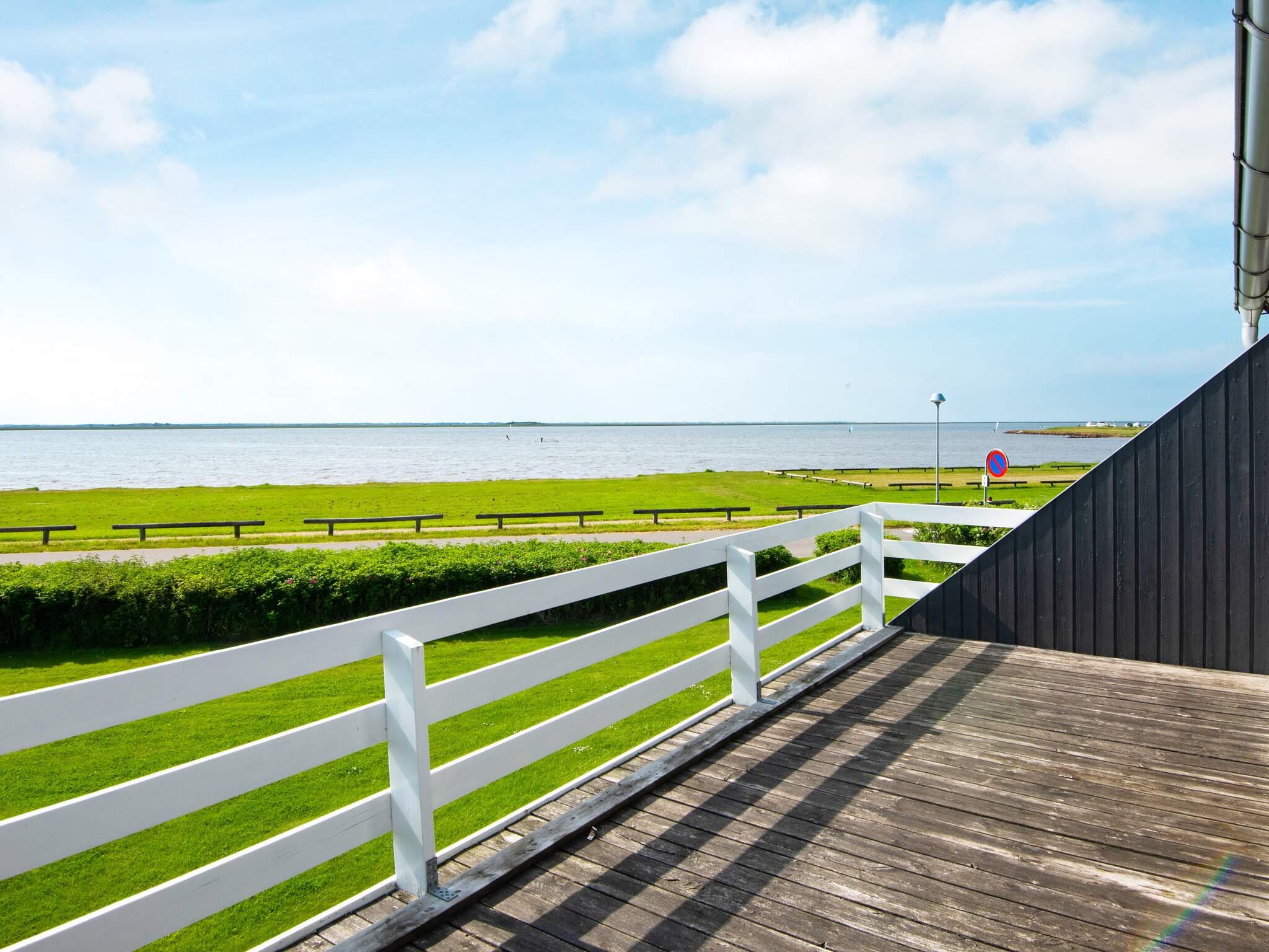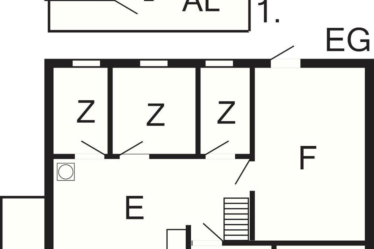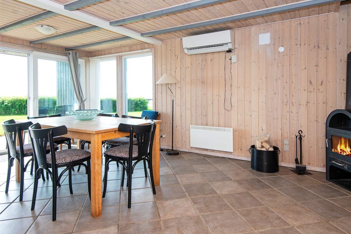 Vom WZ auf der 1. Etage hat man eine fantastische Aussicht über den Fjord und es sind außerdem zwei Alkoven vorhanden, in denen Sie sich nach einem spannendem Tag ausruhen können. Von dort aus gelangen Sie durch eine Schiebetür zu dem 14 m² großen, teilweise überdachten Balkon, wo Sie beim Abendessen den wunderschönen Sonnenuntergang genießen können. Abends können Sie in nördlicher Richtung den Lyngvig Leuchtturm blinken sehen.