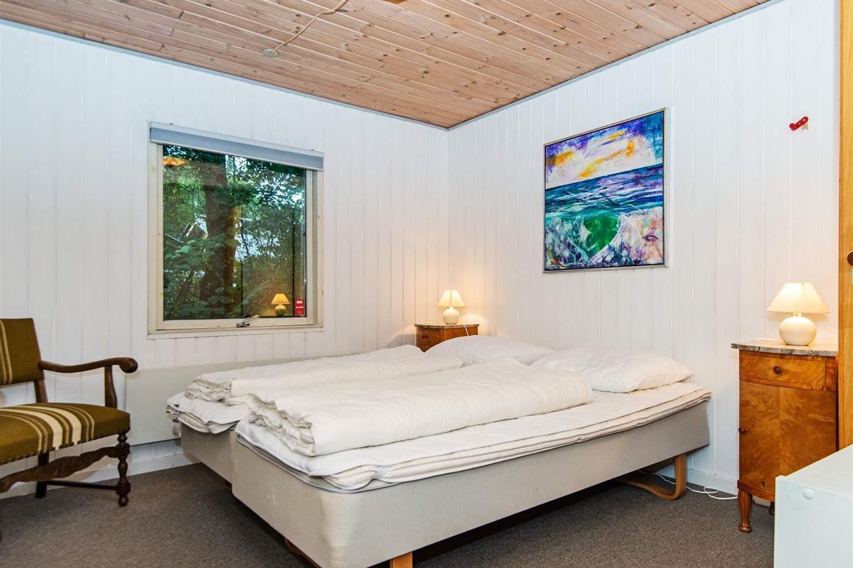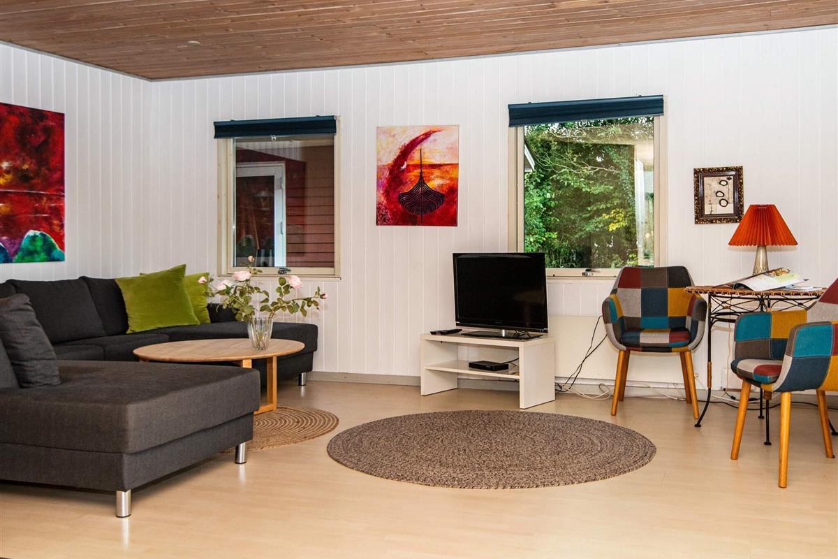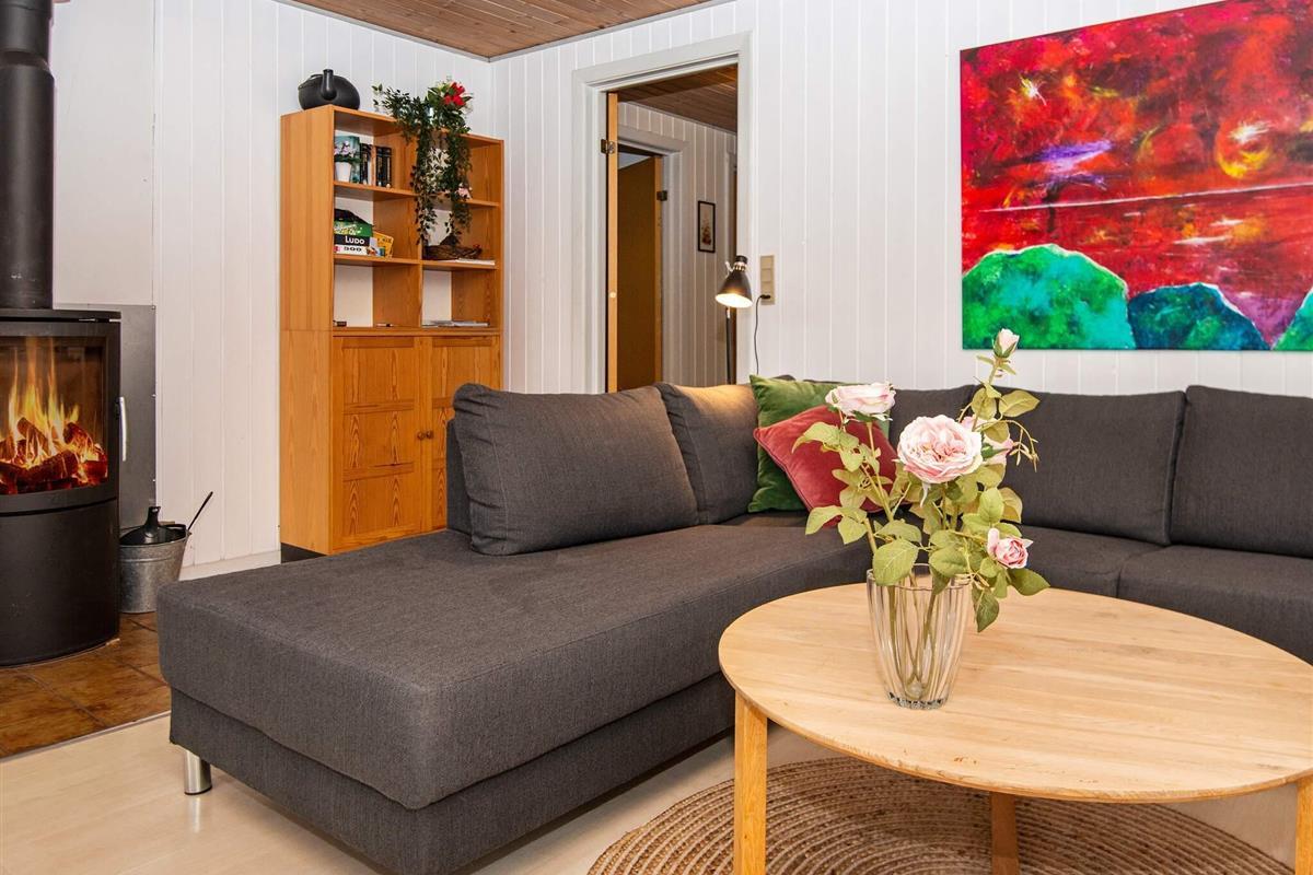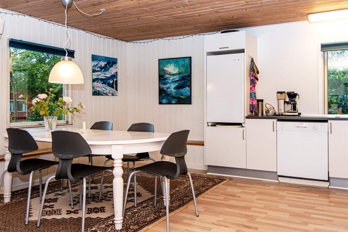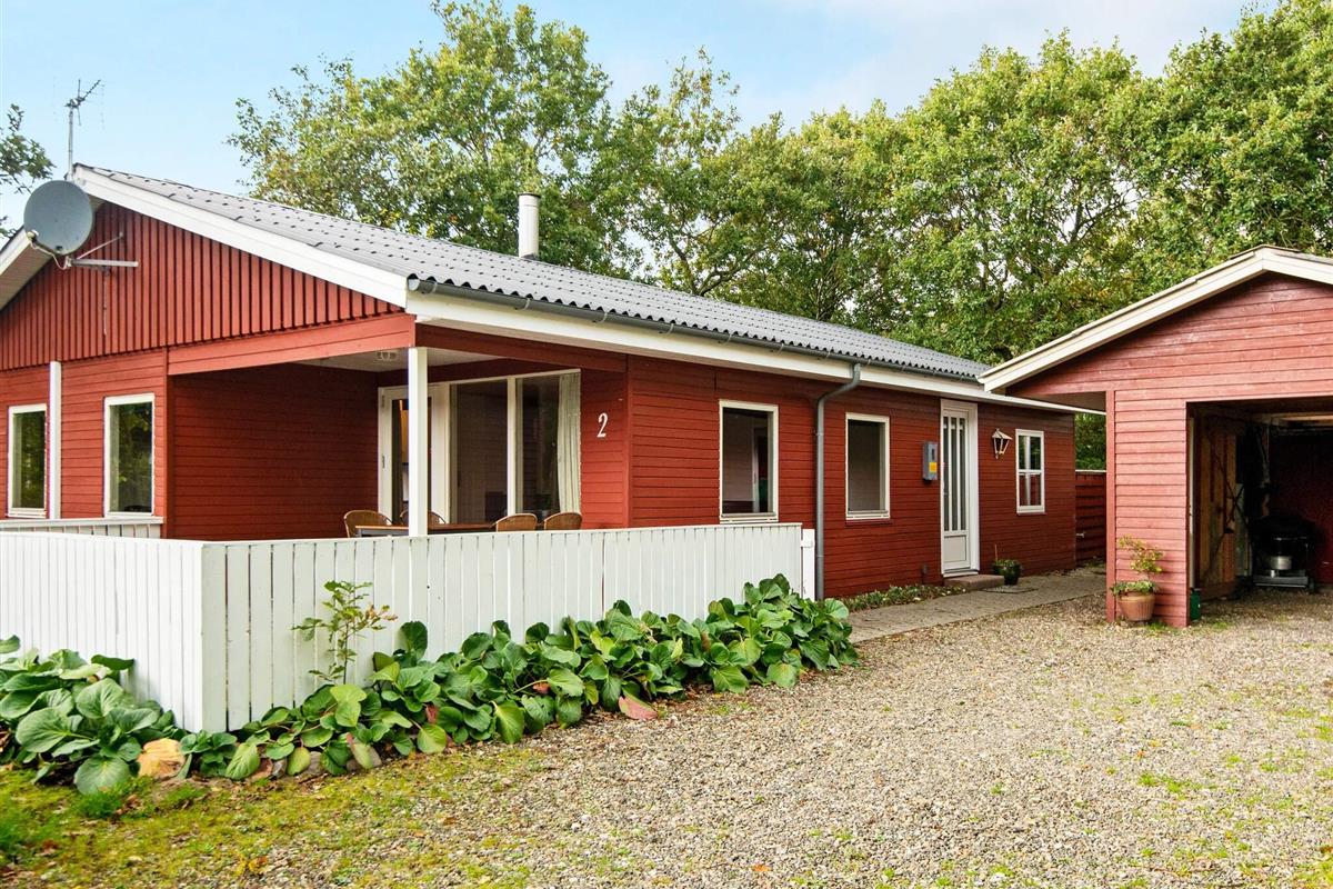 Ferienhaus im naturschönen Gebiet um Bork Havn. Das praktisch eingerichtete Ferienhaus liegt auf einem gut abgeschirmten Naturgrundstück mit einigen Bäumen ringsum.
