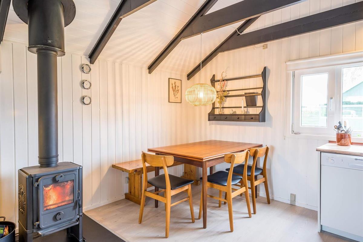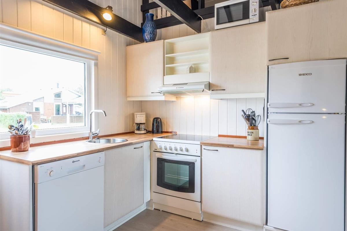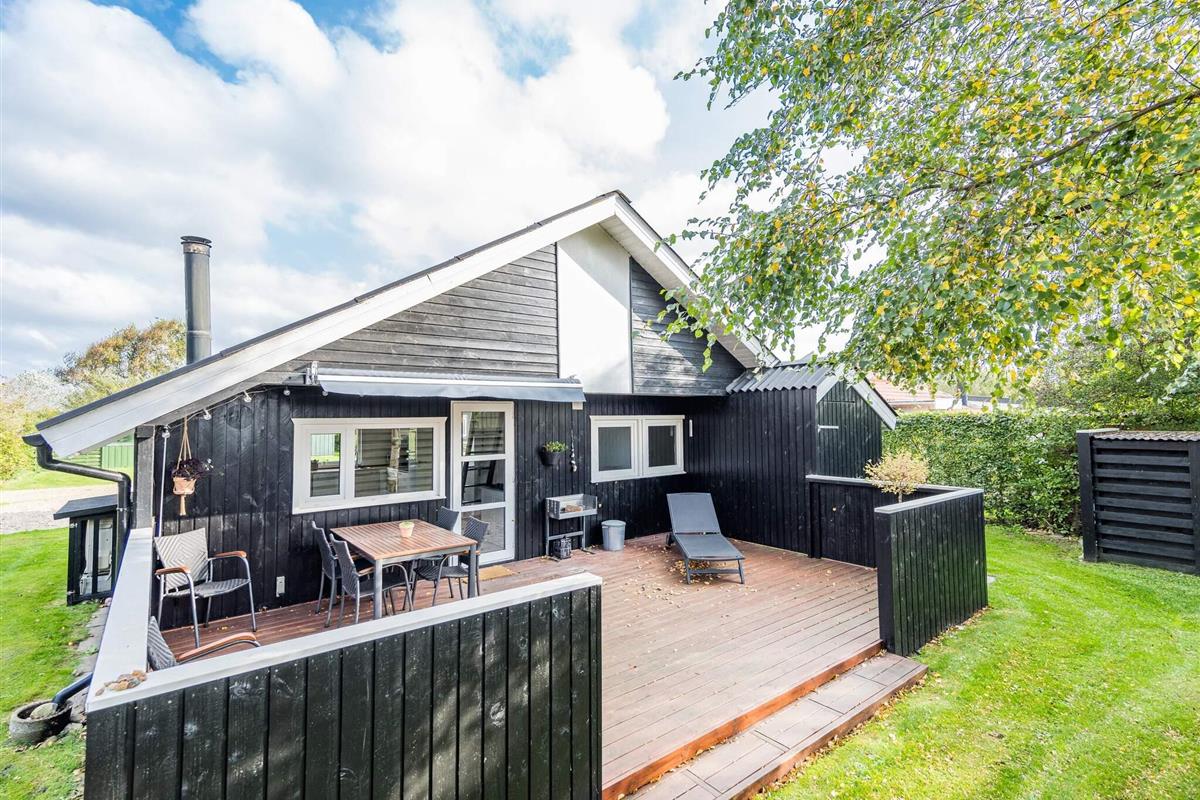 Auf einem attraktiven kleinen Naturgrundstück in Bork - in der Nähe des Borker Hafens - findet man dieses schwarze Ferienhäuschen. Es liegt im gemütlichen Feriendorf Bork Hytteby, wo die Häuser nicht besonders groß sind - dafür ist die Gegend ringsum wirklich beeindruckend. Sie wohnen zudem in der Nähe des Surfgebietes. Vom offenen Küchen-/Wohnbereich im Haus gelangt man hinaus auf die schöne Holzterrasse und von dort weiter auf das kleine Grundstück. Ein passendes Ferienhaus für die kleine Familie, die sich erholen und eine Pause vom Alltag genießen möchte.