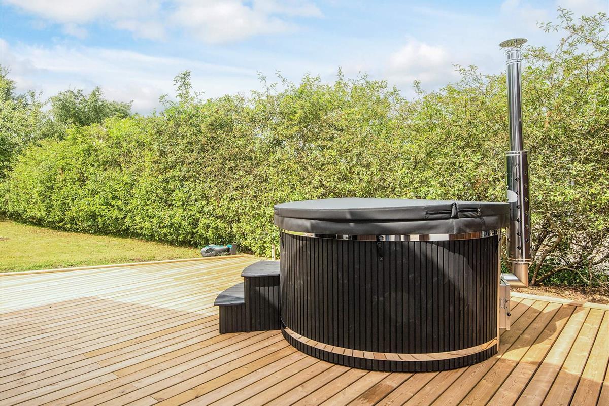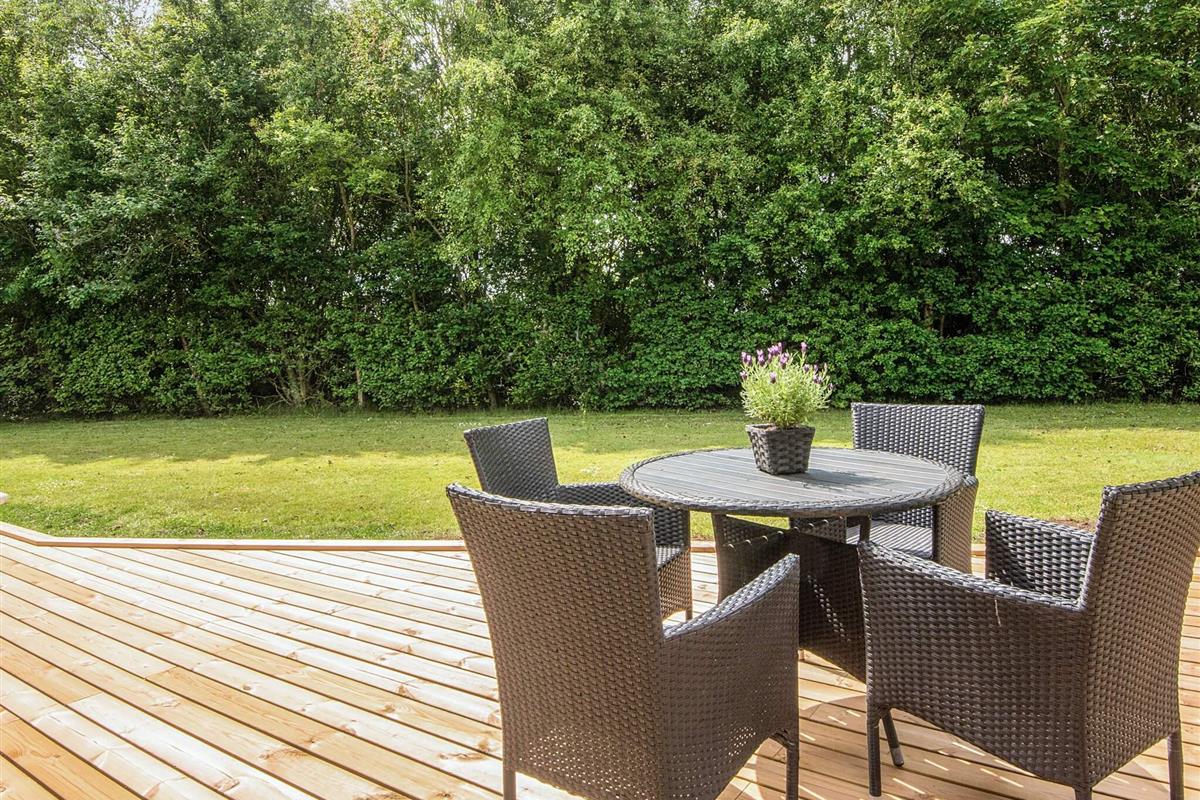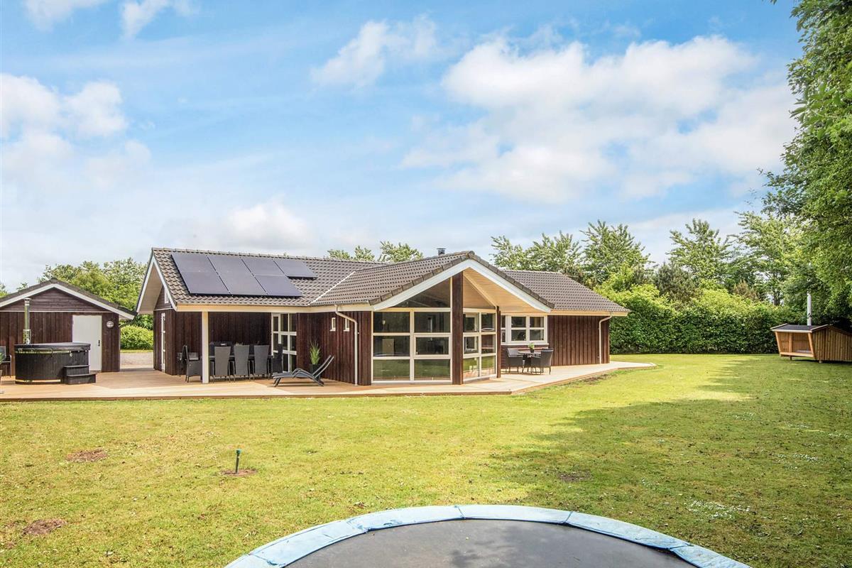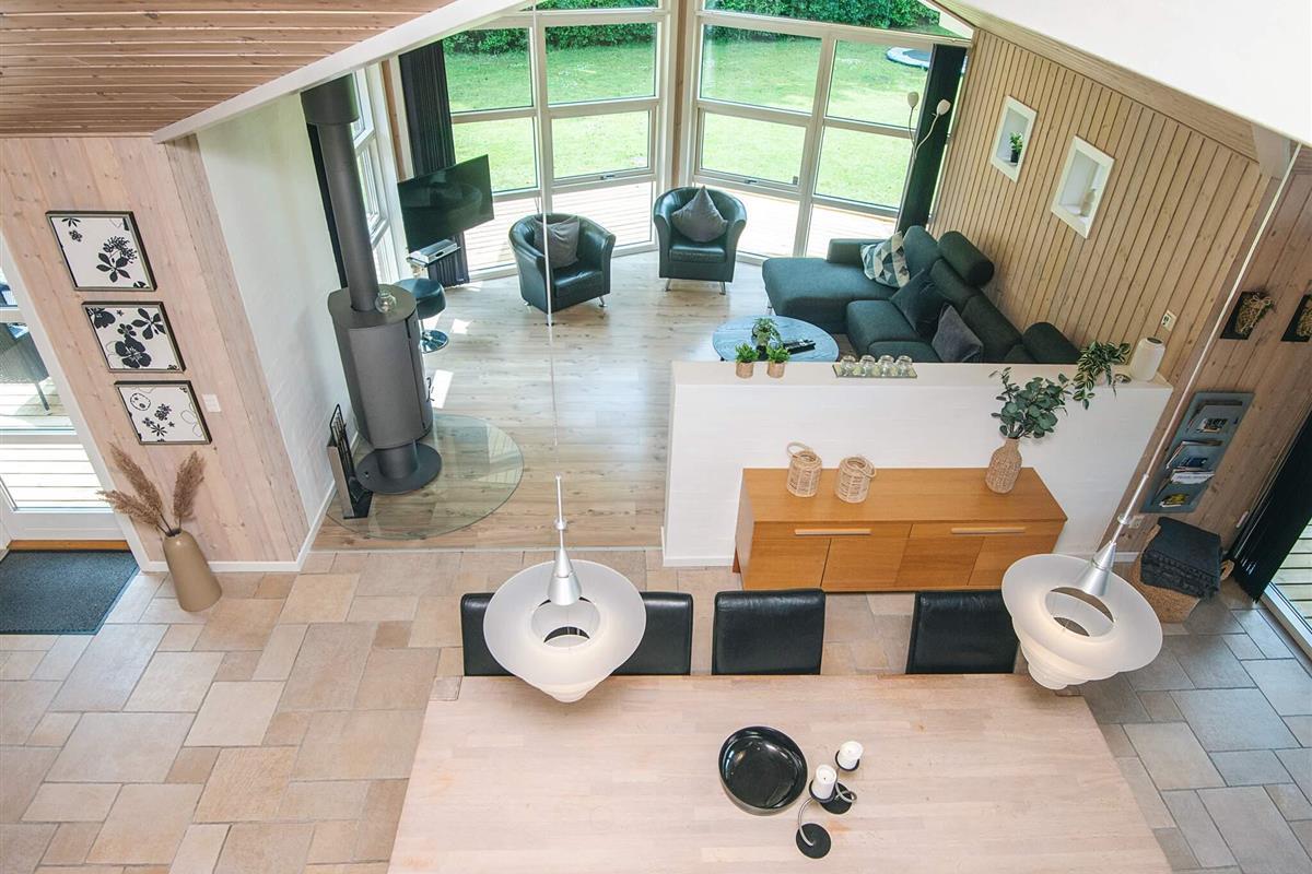 Vom Wohnzimmer gelangt man hinaus auf eine herrliche, weiträumige Holzterrasse mit mehreren windgeschützten Sitzecken. Außerdem steht im Haus ein sogenannter Aktivitätsraum mit sowohl Pool- als auch Billard-Tisch für den Freizeitspaß bereit. Trampolin auf dem Grundstück für die Kinder (Nutzung nur auf eigenes Risiko).