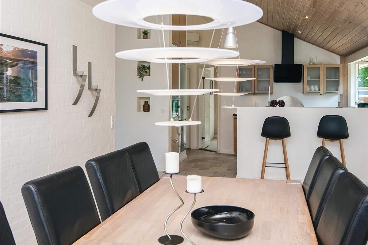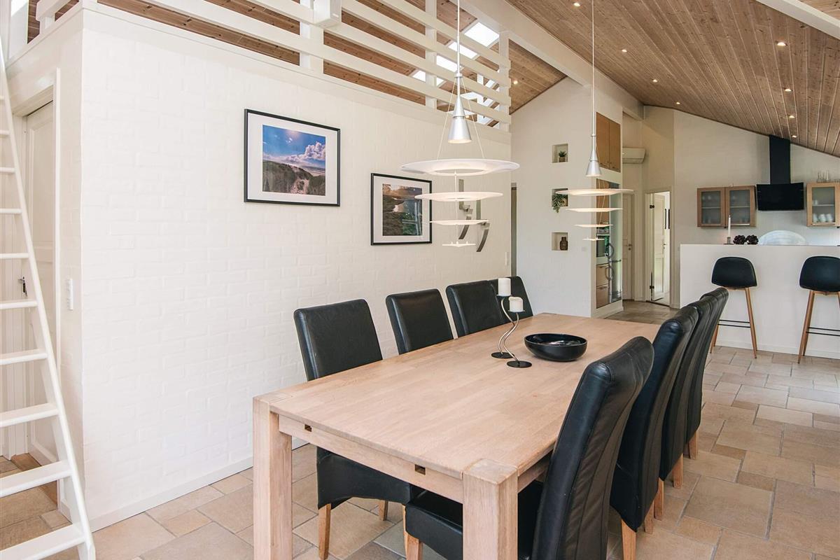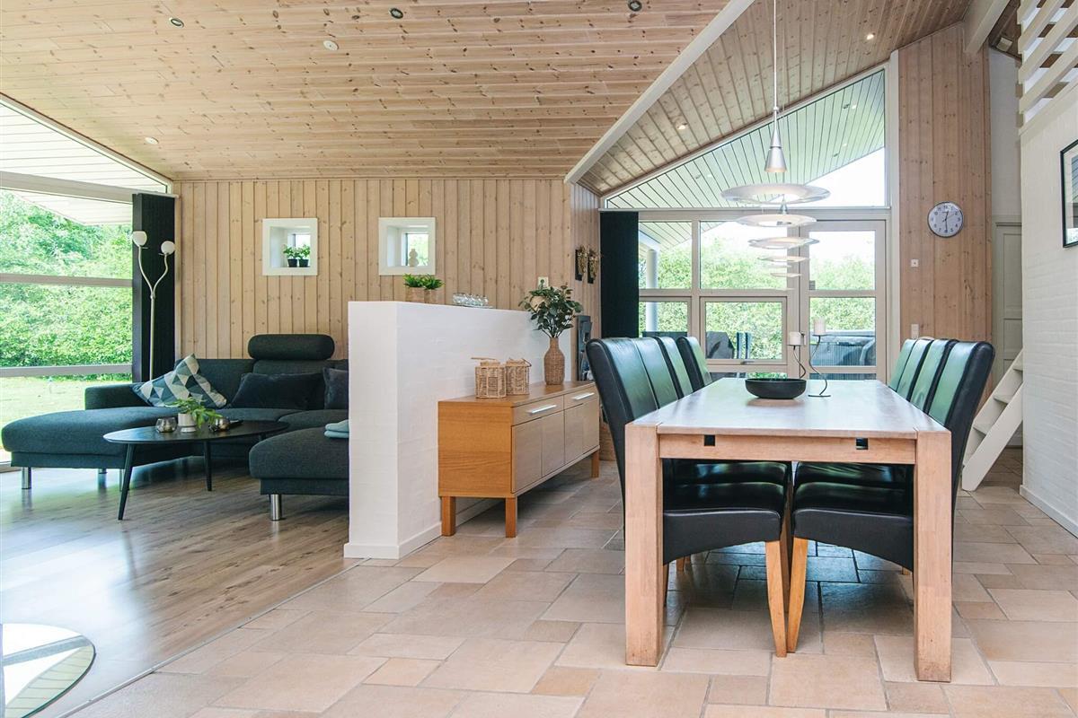 Geschmackvoll eingerichtetes Ferienhaus mit guter Raumaufteilung für das Familienleben. Offener Küchen-/Wohnbereich mit moderner Ausstattung. Das Haus bietet seinen Gästen außerdem 2 Badezimmer, von denen das eine mit einem Whirlpool und einer Sauna ausgestattet ist.