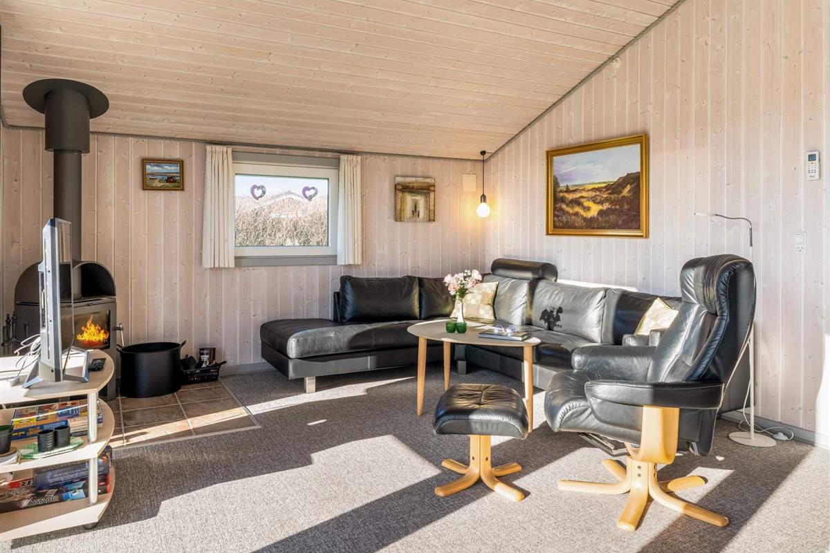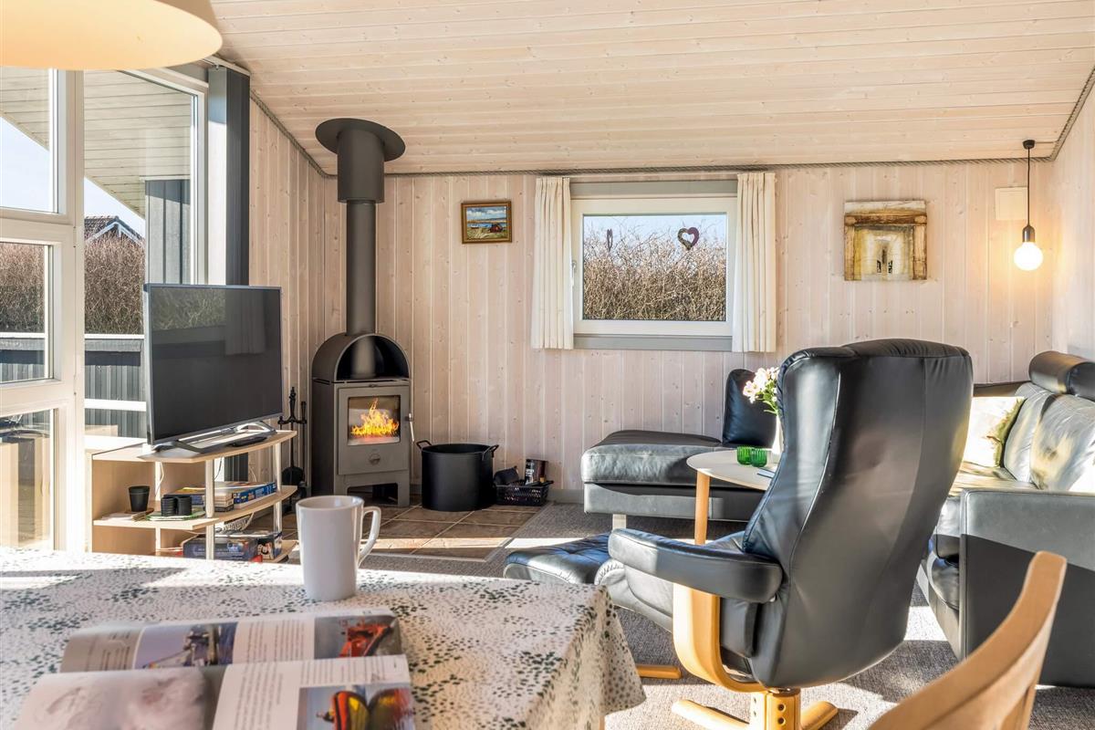 Ein wirklich schönes Ferienhaus mit optimaler Raumaufteilung, bei dem der gesamte Wohnraum perfekt genutzt wird. Das Haus ist gut ausgestattet und gemütlich eingerichtet. Nach einem langen Tag in der Natur können Sie sich vor dem Kaminofen, in der Sauna oder vor dem Fernseher mit dänischen und deutschen Sendern entspannen.