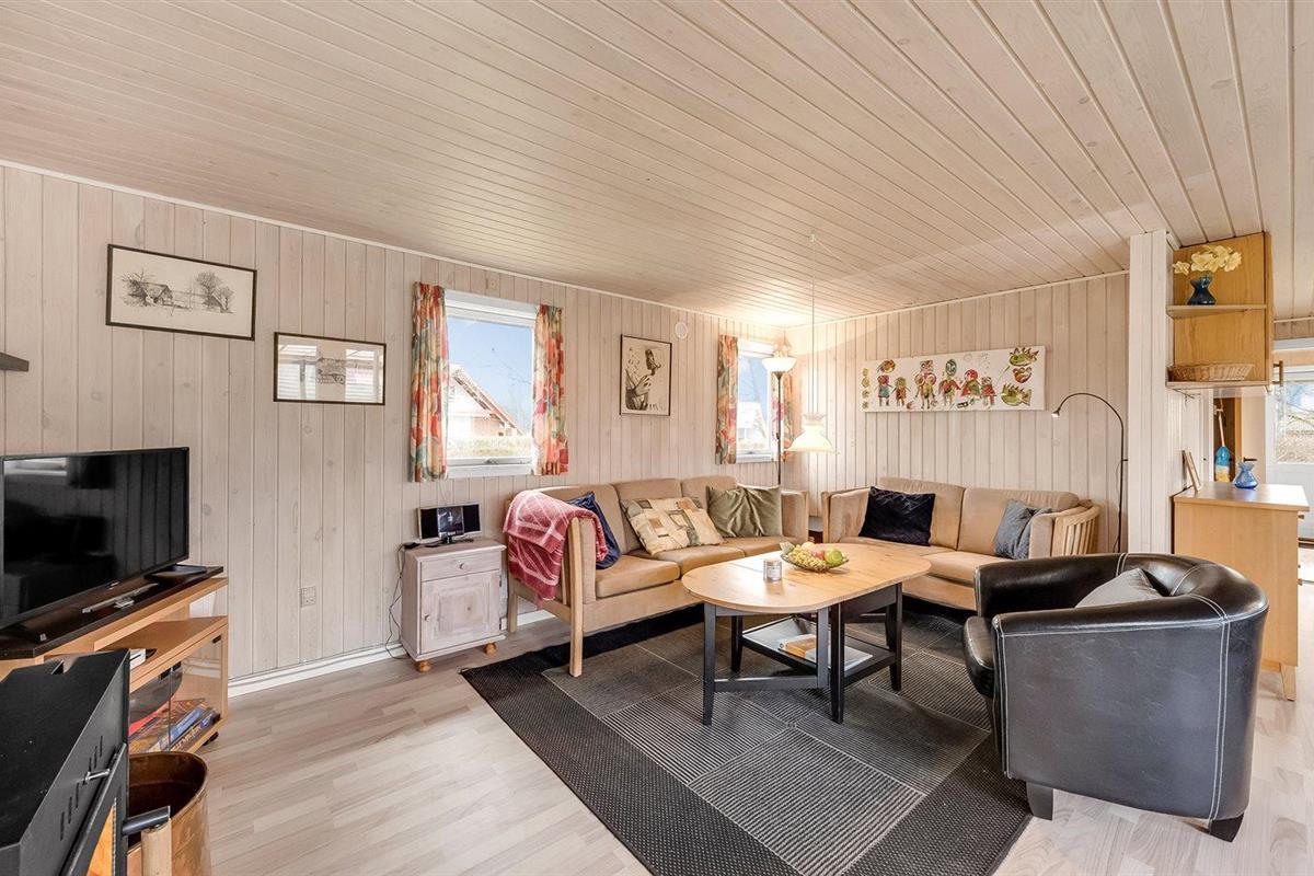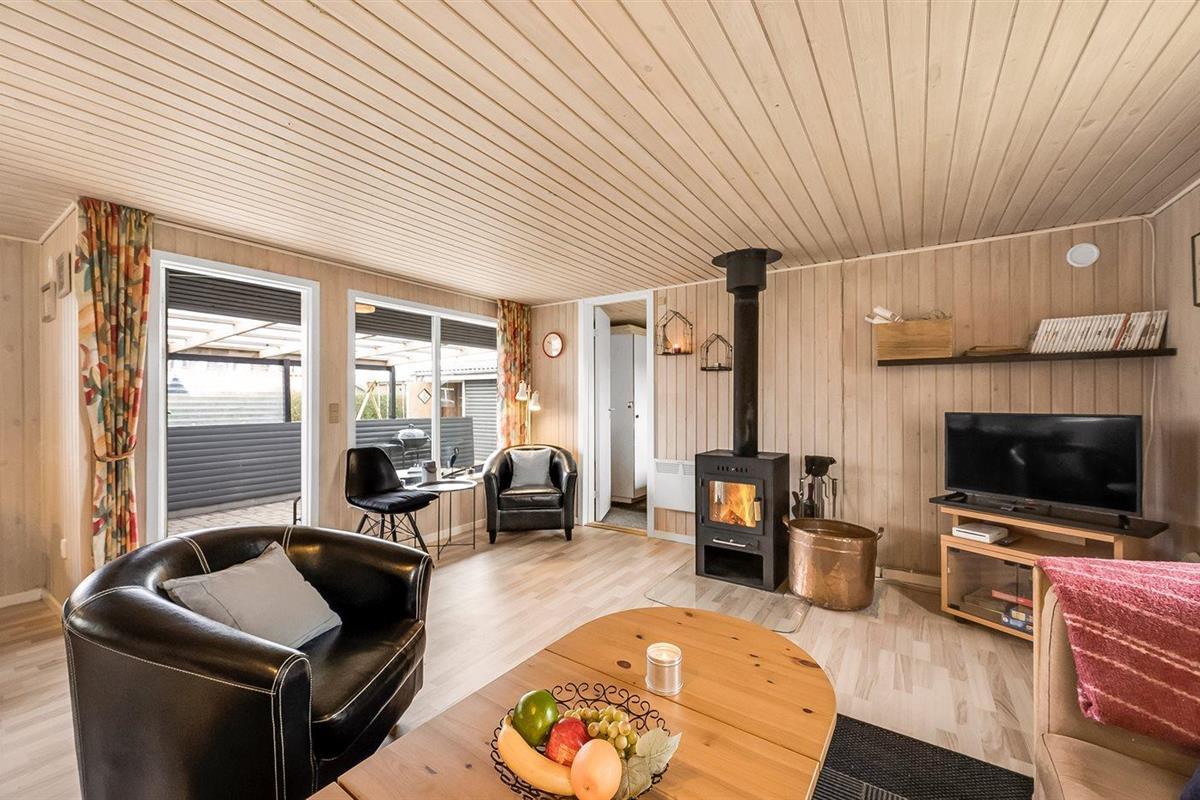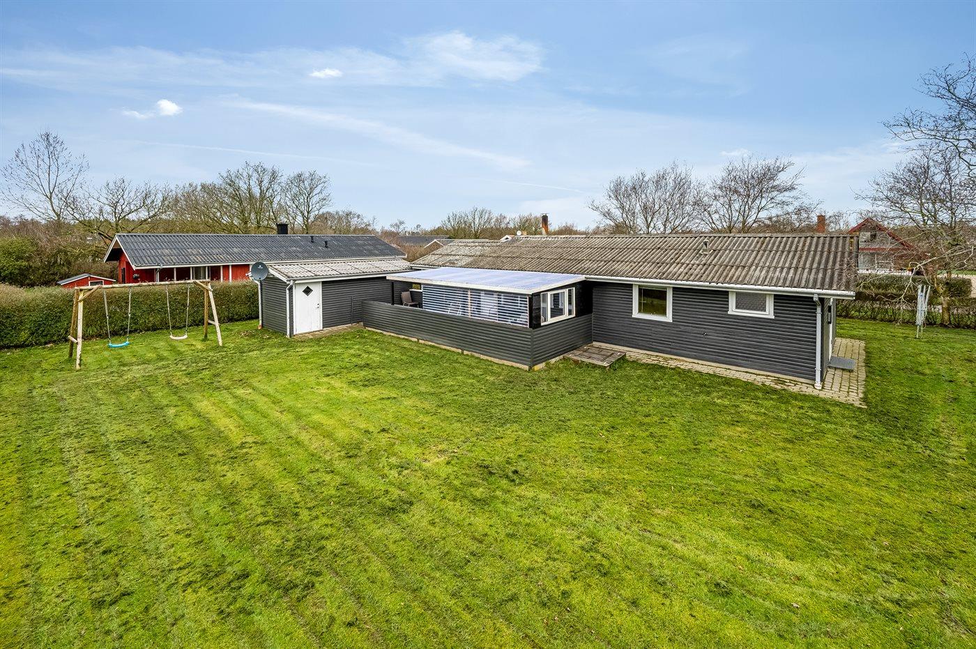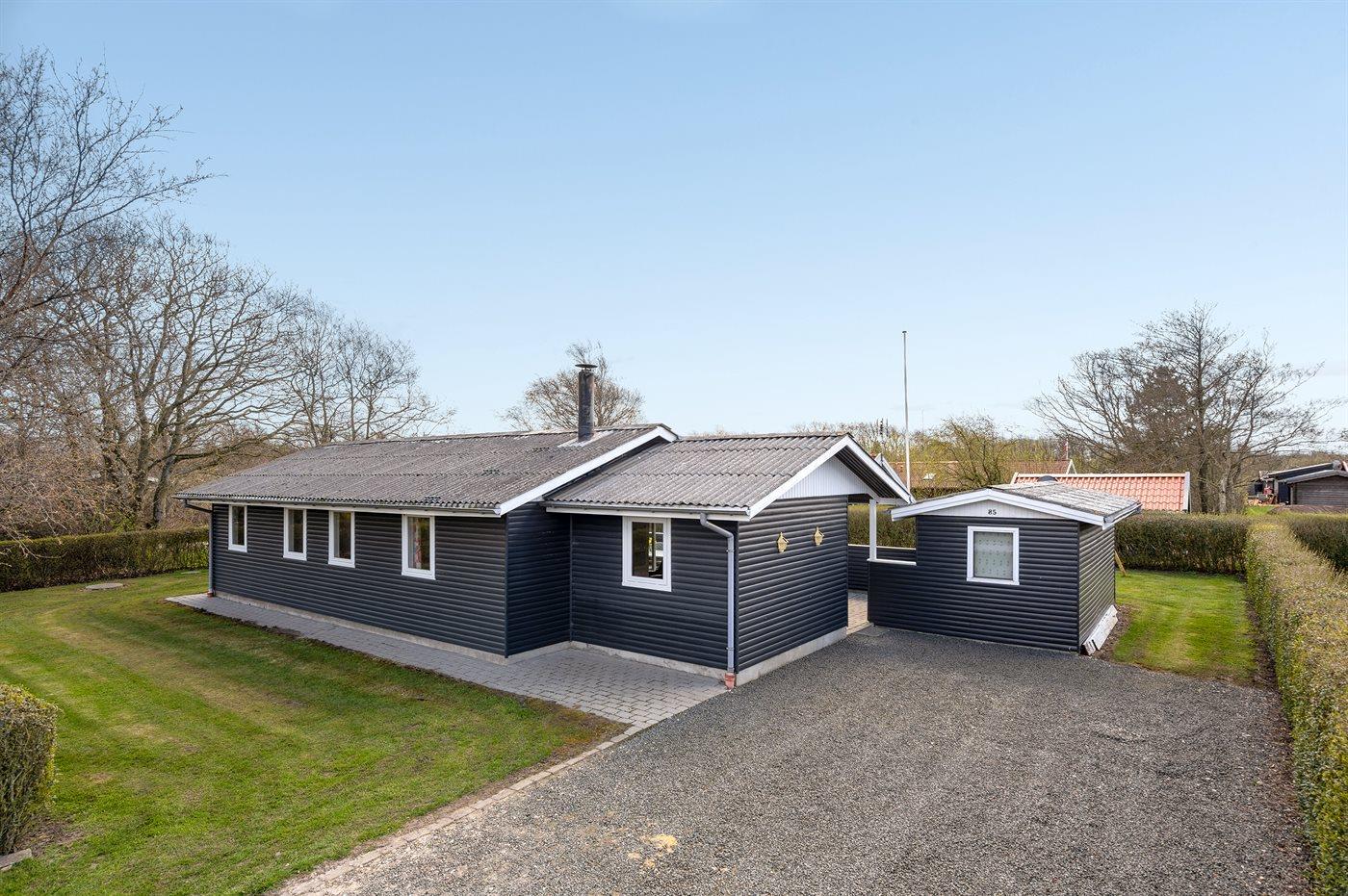 De vakantiewoning is gelegen op een 600 m² groot natuural grond. De grond is omheind. Afstand tot de zee 6500 m. Afstand tot de fjord 850 m. Dichtstbijzijnde winkel 1000 m. Bij de vakantiewoning hoort 45 m² terras. Daarnaast is er een 12 m² groot overdekt terras. Schommel. Zandbak. Afstand tot speelplaats 1000 m. Parkeerplaats bij het huis.