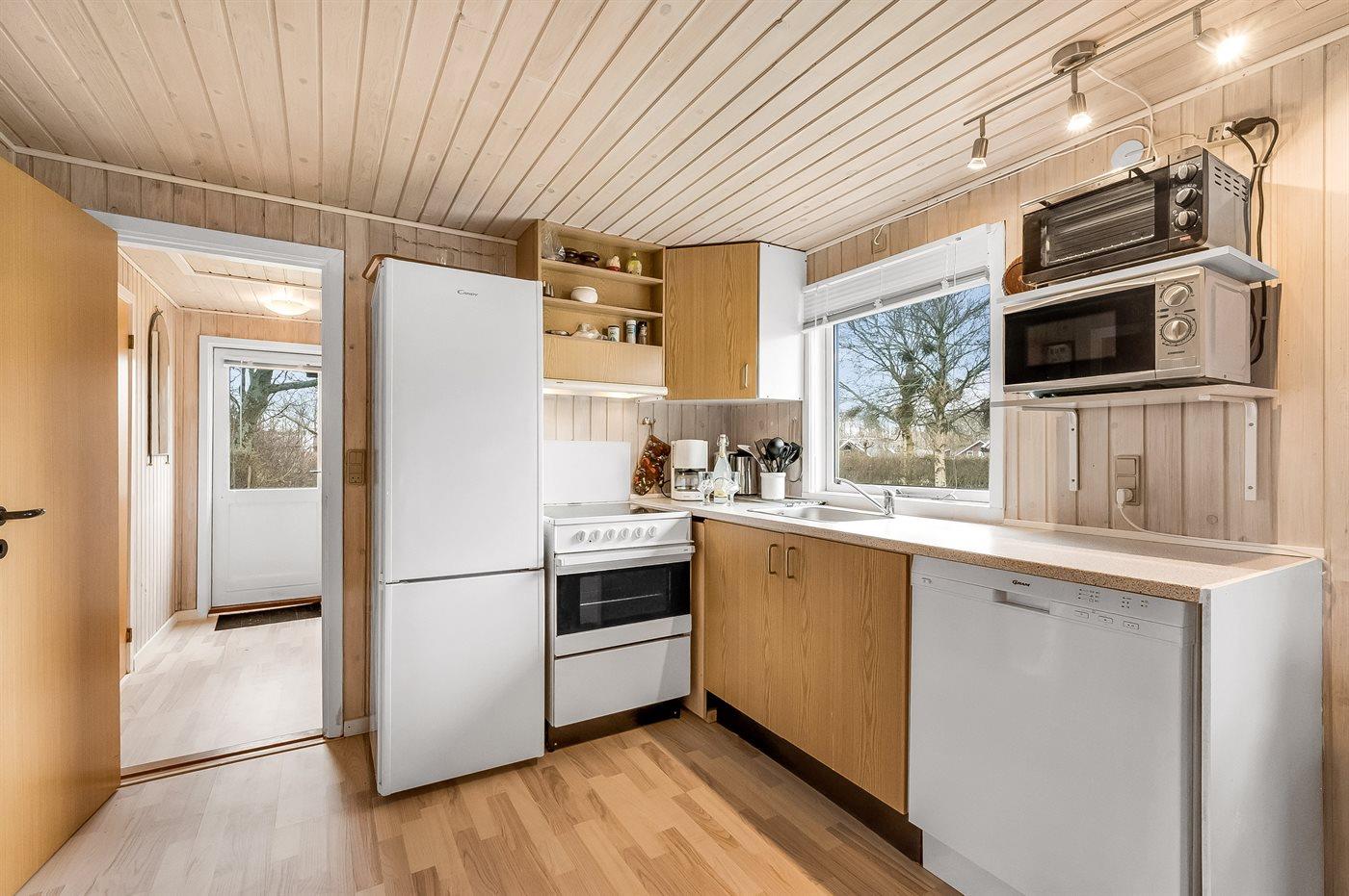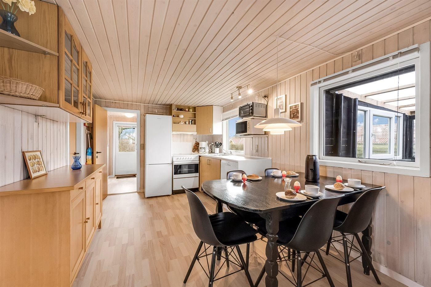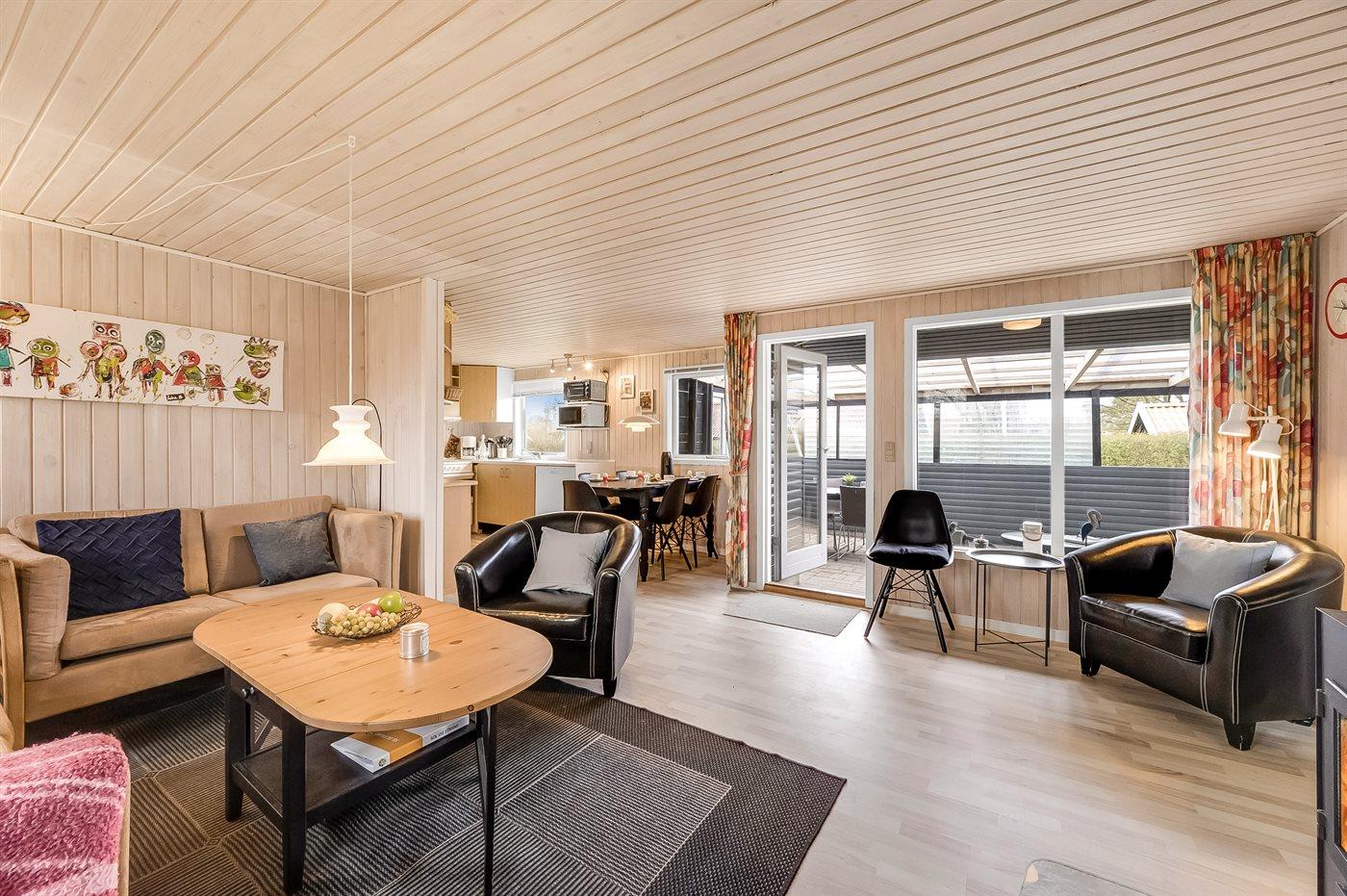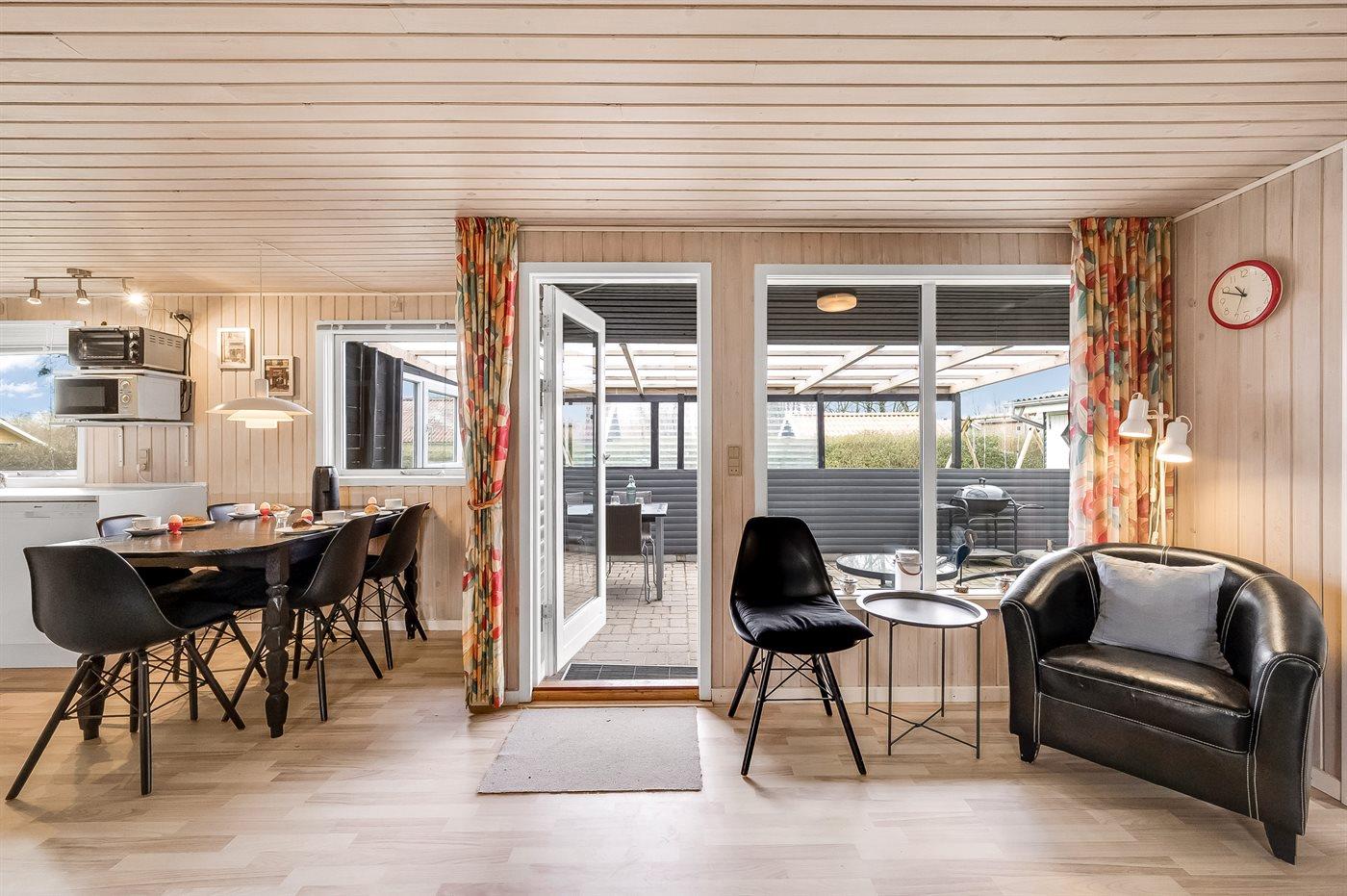 De vakantiewoning is gelegen op een 600 m² groot natuural grond. De grond is omheind. Afstand tot de zee 6500 m. Afstand tot de fjord 850 m. Dichtstbijzijnde winkel 1000 m. Bij de vakantiewoning hoort 45 m² terras. Daarnaast is er een 12 m² groot overdekt terras. Schommel. Zandbak. Afstand tot speelplaats 1000 m. Parkeerplaats bij het huis.