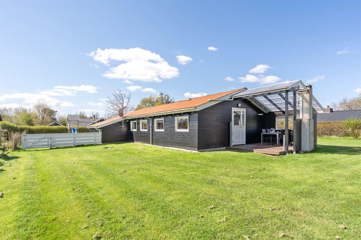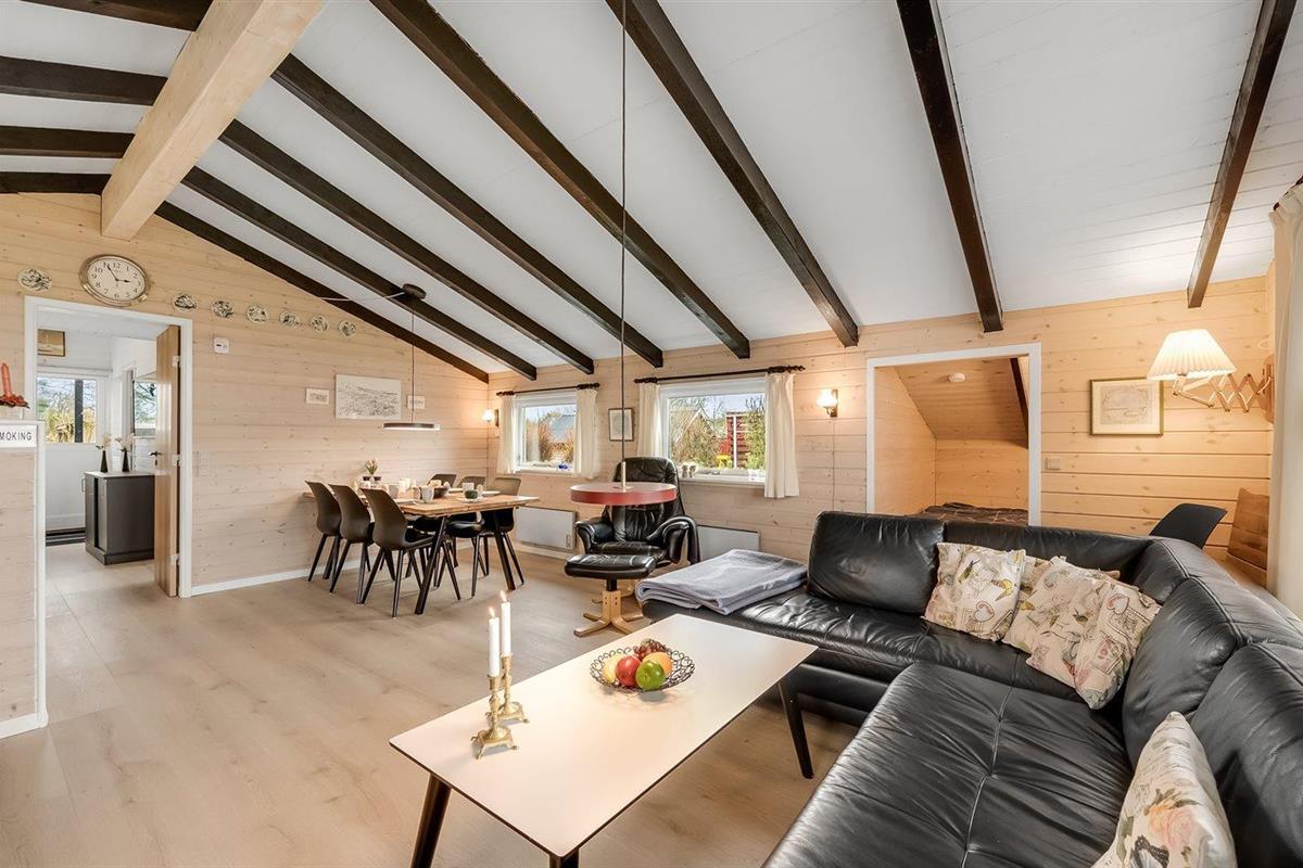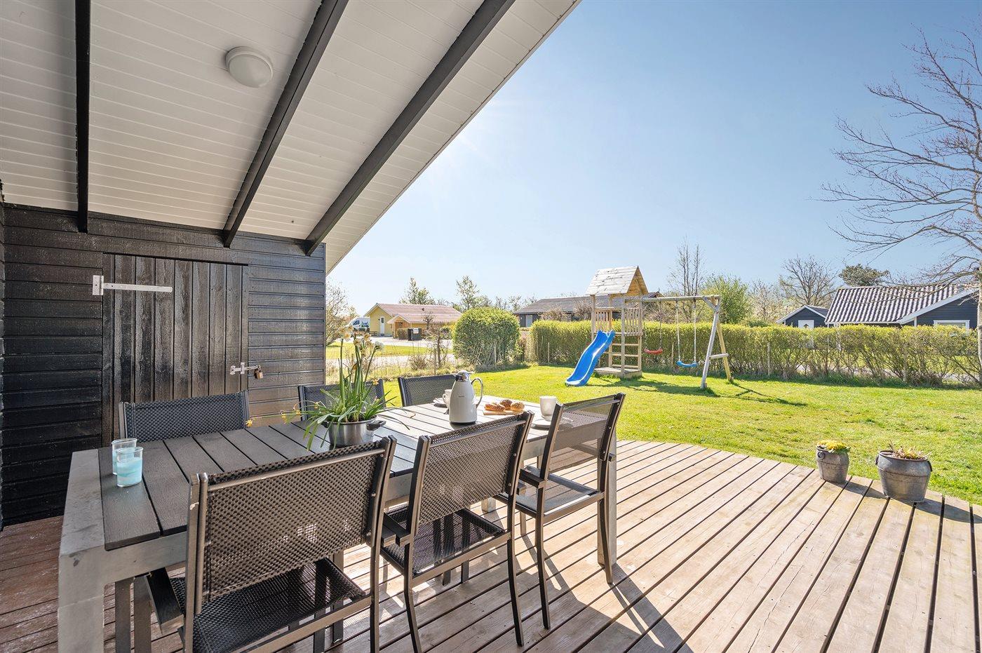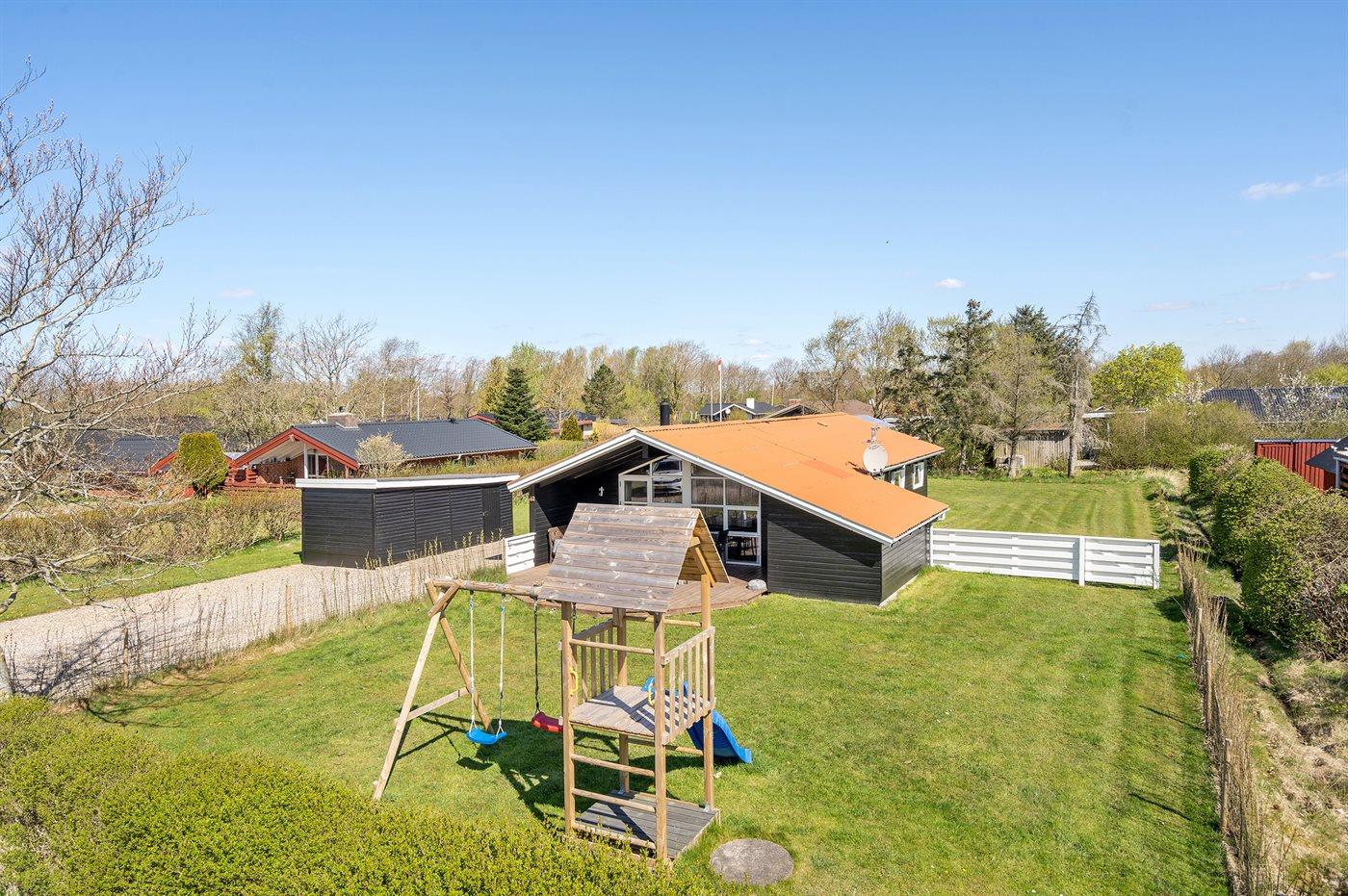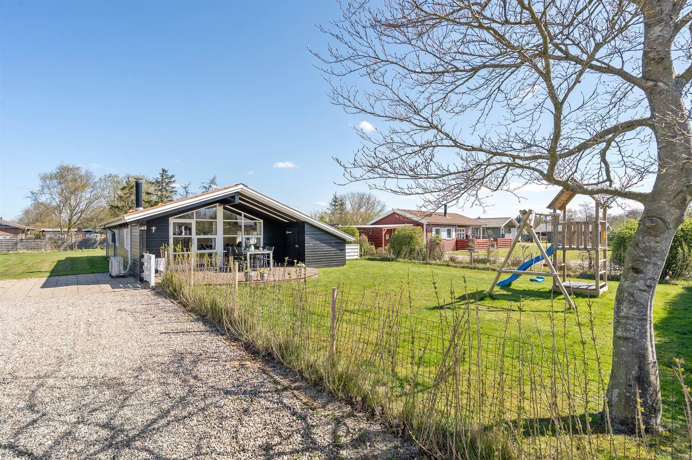 De vakantiewoning is gelegen op een 1000 m² groot aangelegde tuin. De grond is omheind. Afstand tot de zee 7200 m. Afstand tot de fjord 800 m. Dichtstbijzijnde winkel 800 m. Bij de vakantiewoning hoort 25 m² terras. Daarnaast is er een 30 m² groot overdekt terras. Gereedschapsruimte. Schommel. Zandbak. Glijbaan. Het huis heeft een stopcontact voor het opladen van een elektrische auto. Oplaadstekker type 2. Parkeerplaats bij het huis.