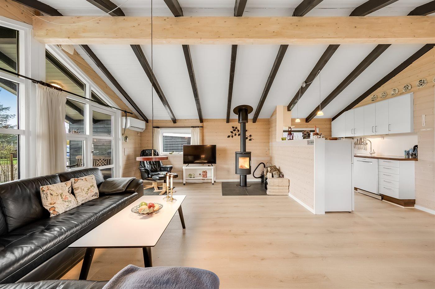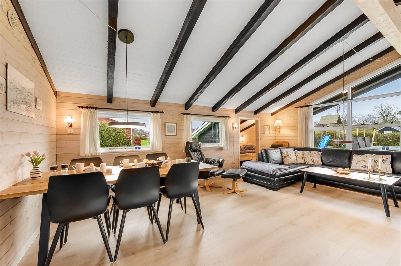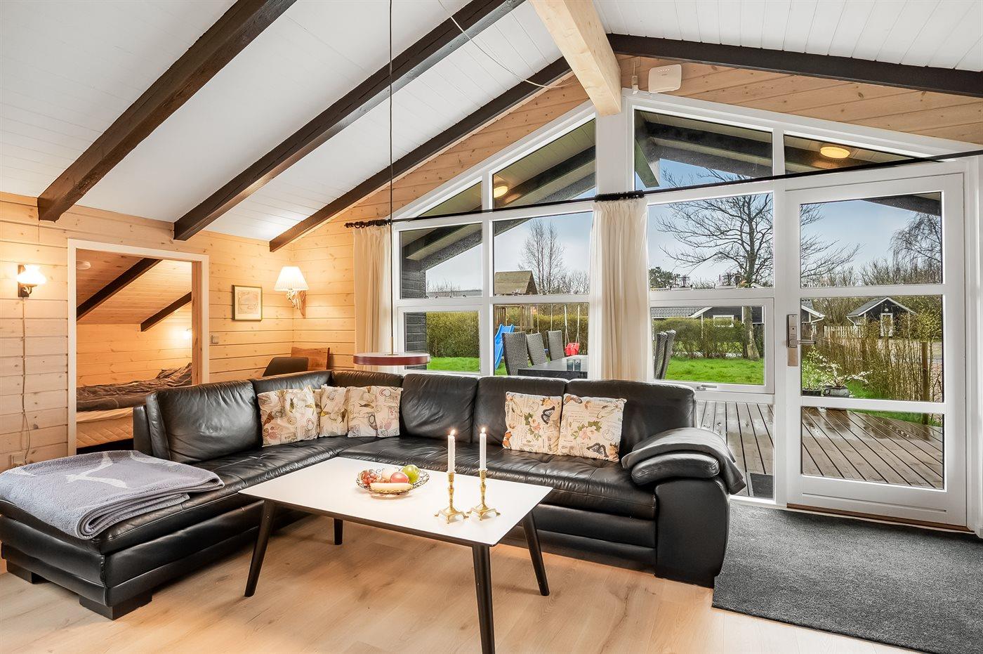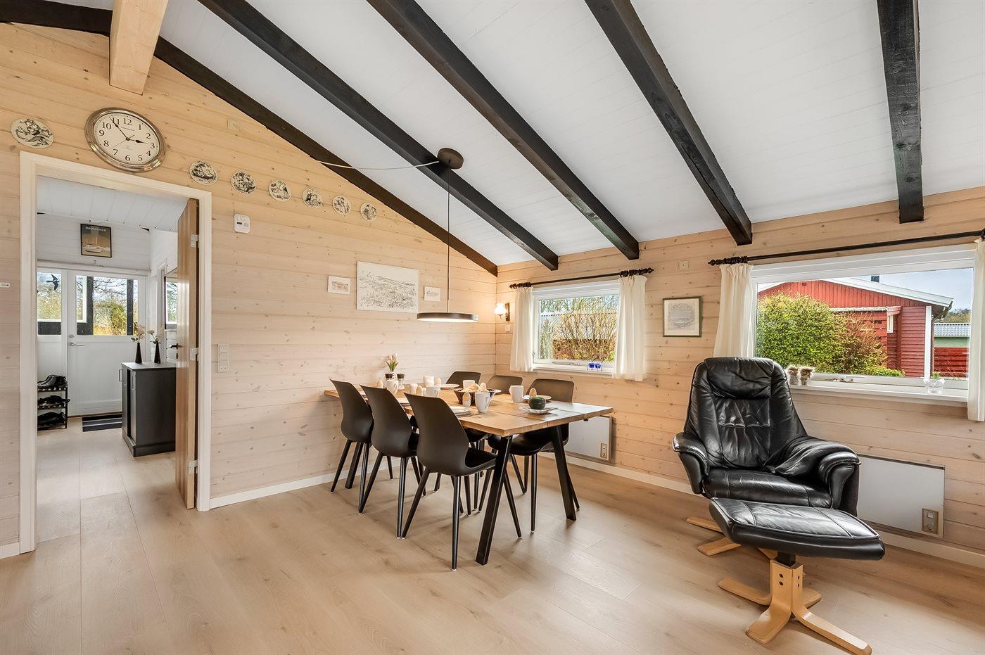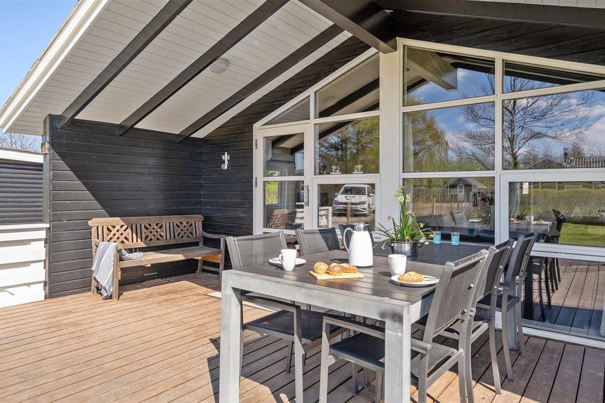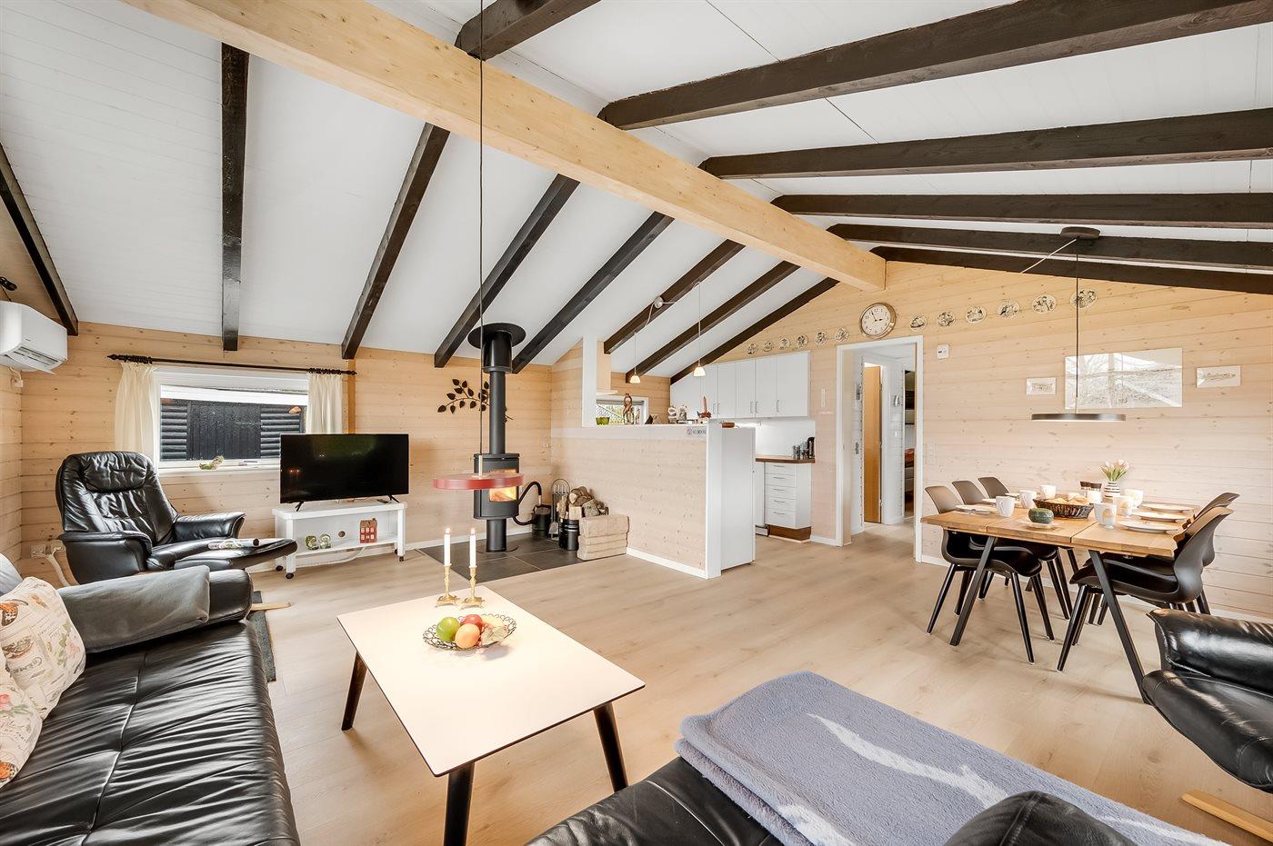 De vakantiewoning is gelegen op een 1000 m² groot aangelegde tuin. De grond is omheind. Afstand tot de zee 7200 m. Afstand tot de fjord 800 m. Dichtstbijzijnde winkel 800 m. Bij de vakantiewoning hoort 25 m² terras. Daarnaast is er een 30 m² groot overdekt terras. Gereedschapsruimte. Schommel. Zandbak. Glijbaan. Het huis heeft een stopcontact voor het opladen van een elektrische auto. Oplaadstekker type 2. Parkeerplaats bij het huis.