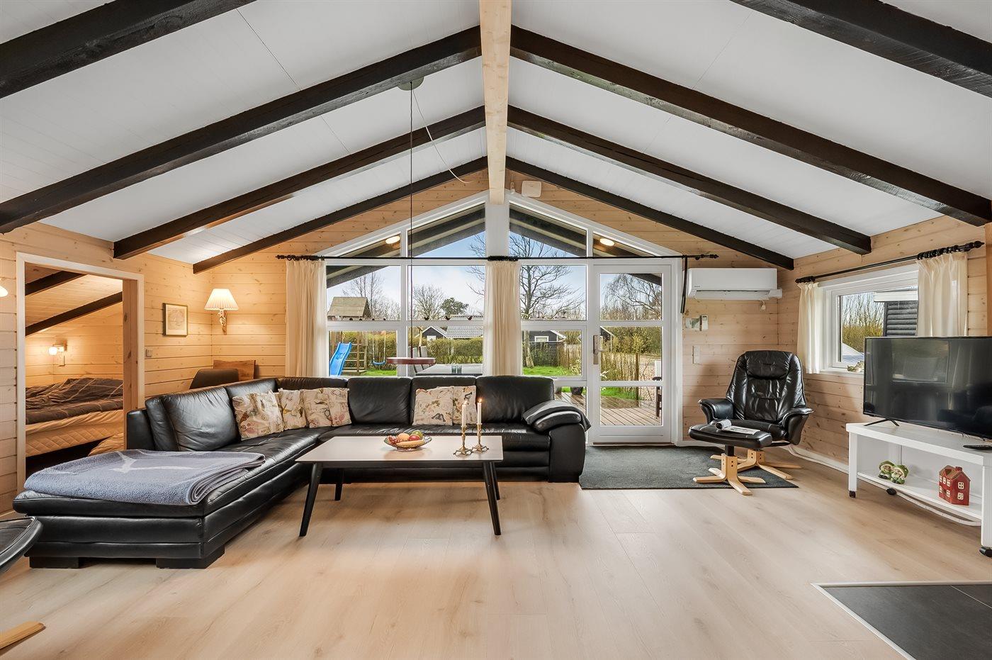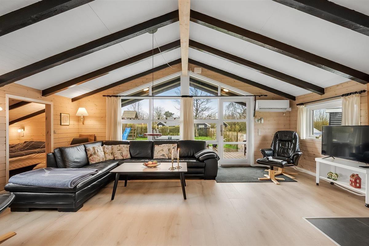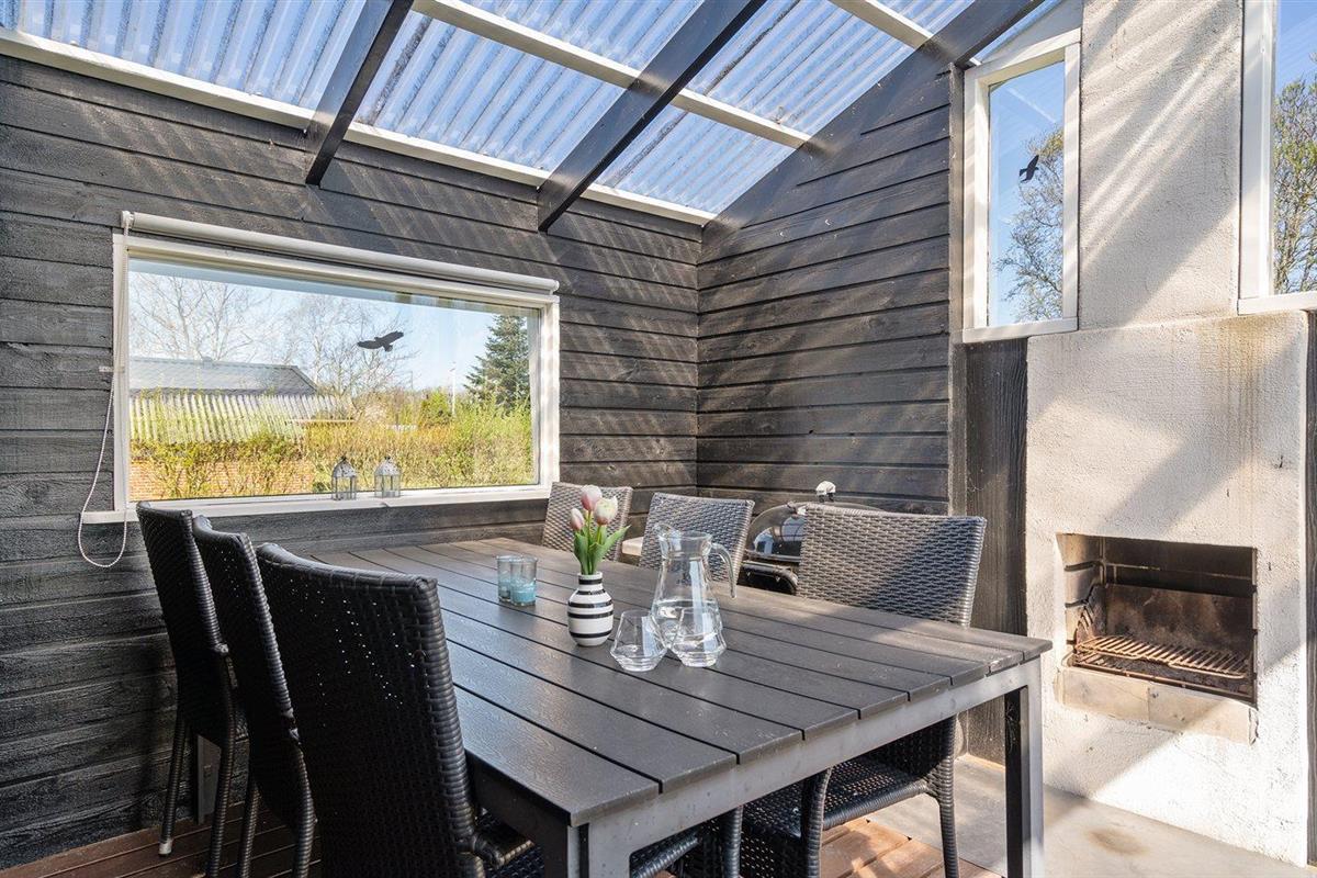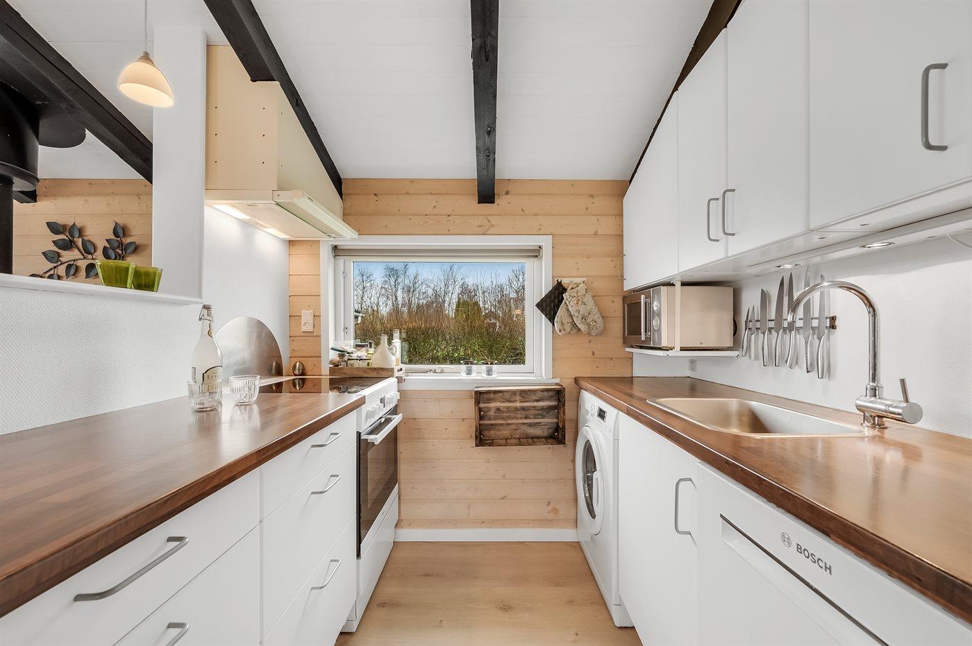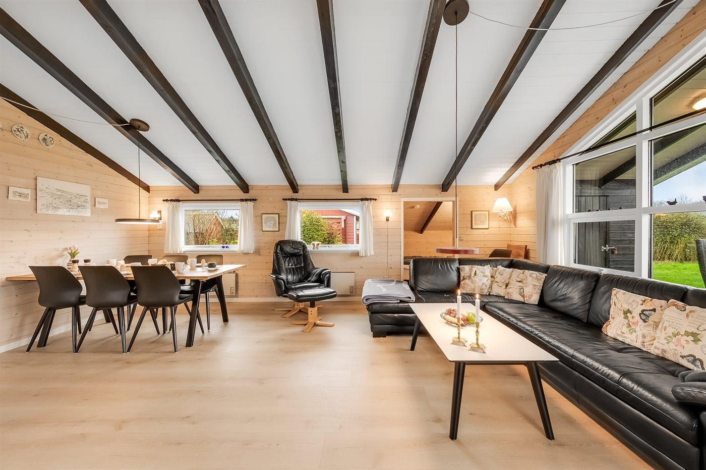 De vakantiewoning is gelegen op een 1000 m² groot aangelegde tuin. De grond is omheind. Afstand tot de zee 7200 m. Afstand tot de fjord 800 m. Dichtstbijzijnde winkel 800 m. Bij de vakantiewoning hoort 25 m² terras. Daarnaast is er een 30 m² groot overdekt terras. Gereedschapsruimte. Schommel. Zandbak. Glijbaan. Het huis heeft een stopcontact voor het opladen van een elektrische auto. Oplaadstekker type 2. Parkeerplaats bij het huis.