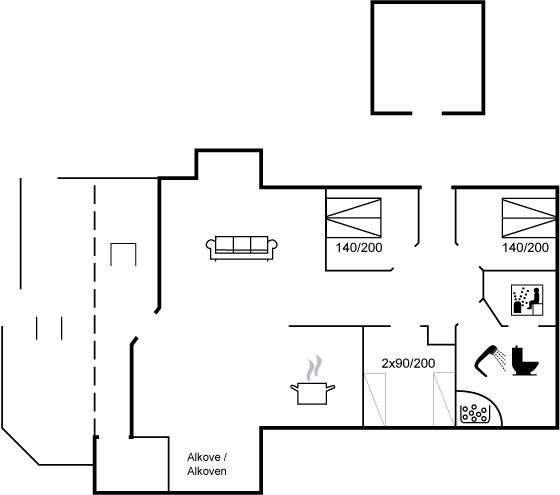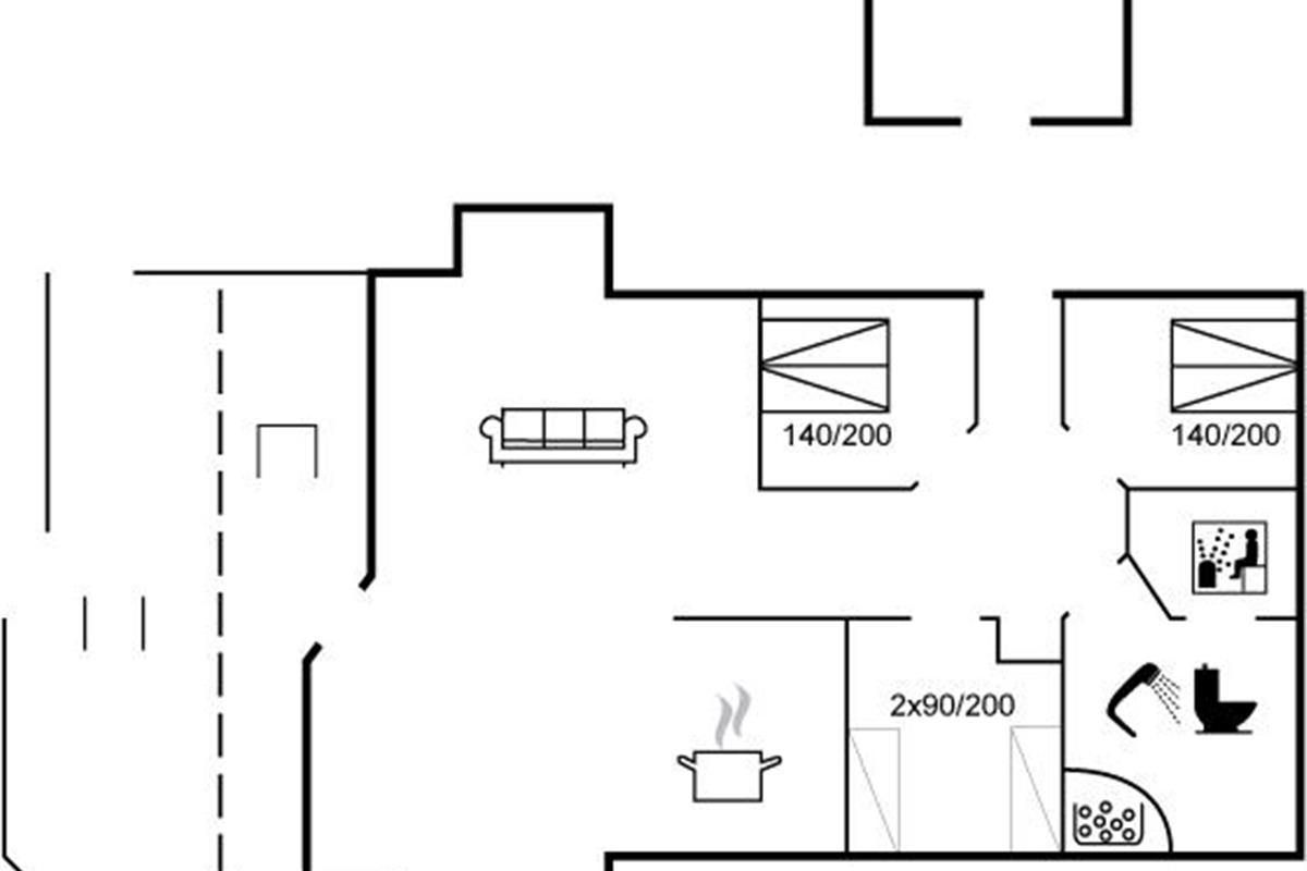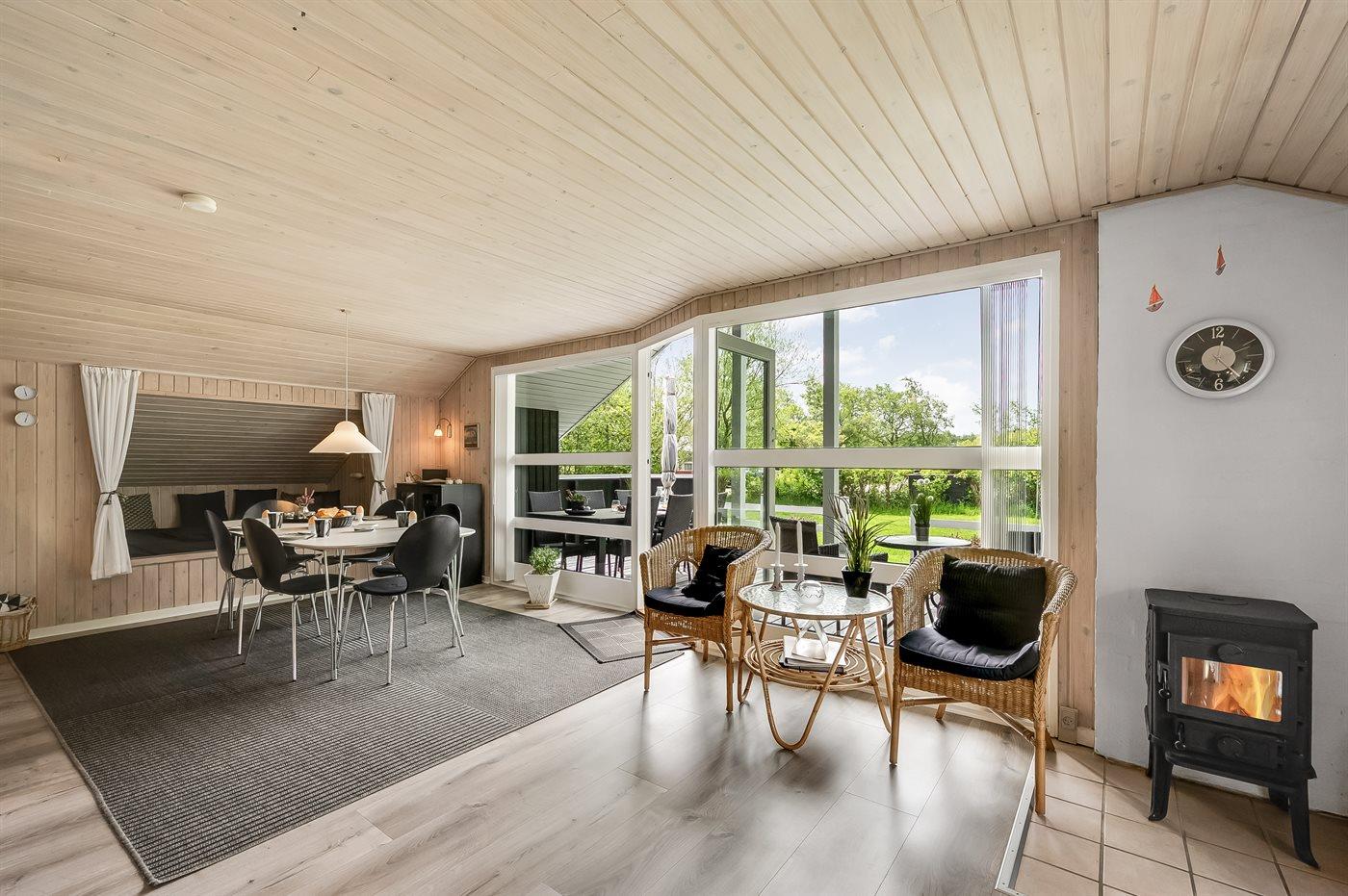 De vakantiewoning is gelegen op een 704 m² groot natuural grond. Afstand tot de zee 8000 m. Afstand tot de fjord 600 m. Dichtstbijzijnde winkel 200 m. Bij de vakantiewoning hoort 10 m² terras. Daarnaast is er een 10 m² groot overdekt terras. Parkeerplaats bij het huis.