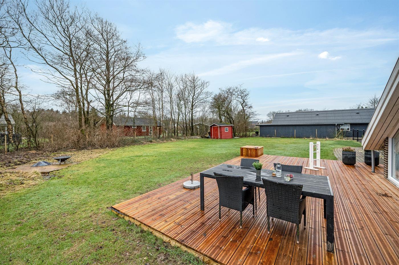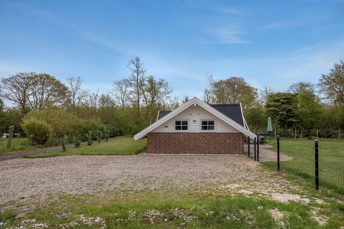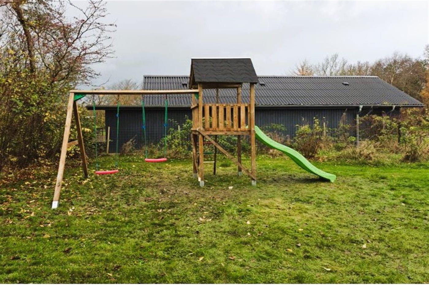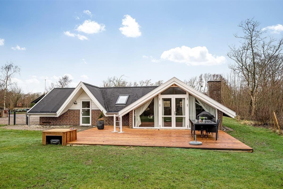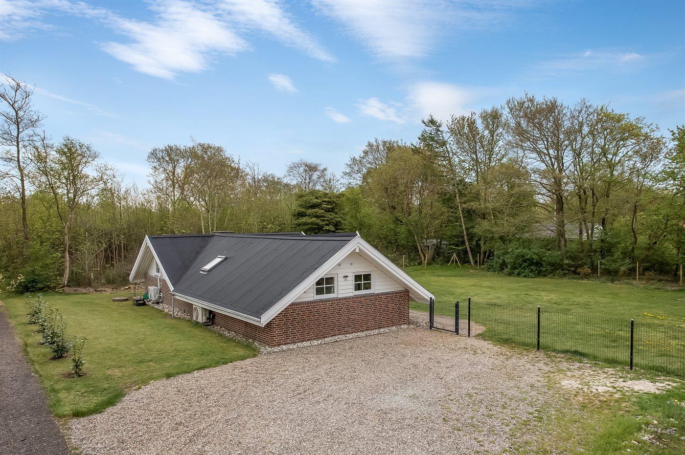 De vakantiewoning is gelegen op een 1100 m² groot natuural grond. De grond is omheind. Afstand tot de zee 6800 m. Afstand tot de fjord 300 m. Dichtstbijzijnde winkel 1600 m. Bij de vakantiewoning hoort terras. Schommel. Speeltoren. Glijbaan. Afstand tot speelplaats 150 m. Parkeerplaats bij het huis.
