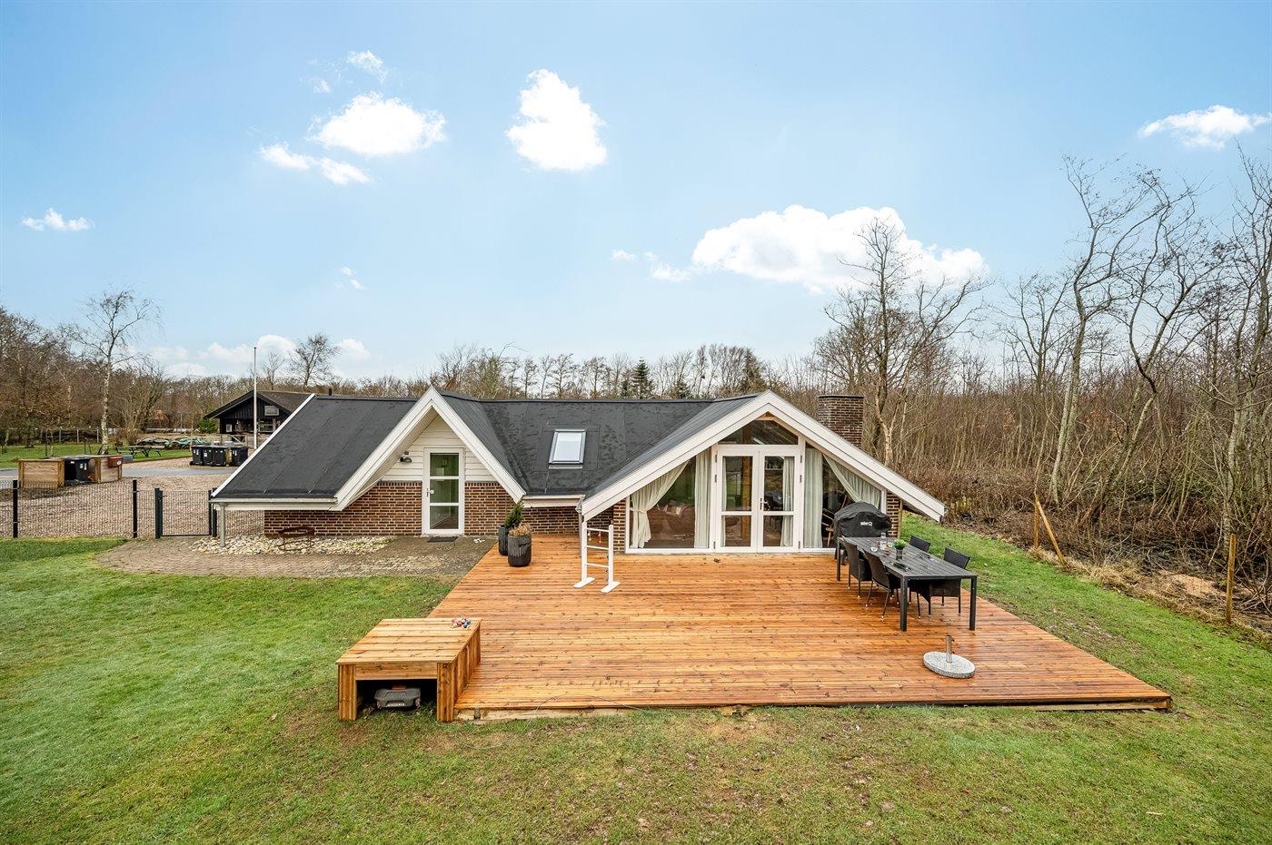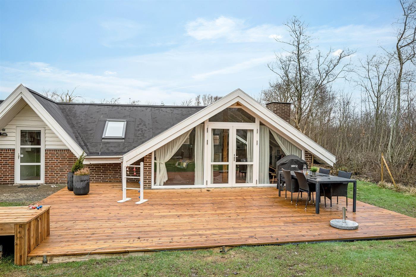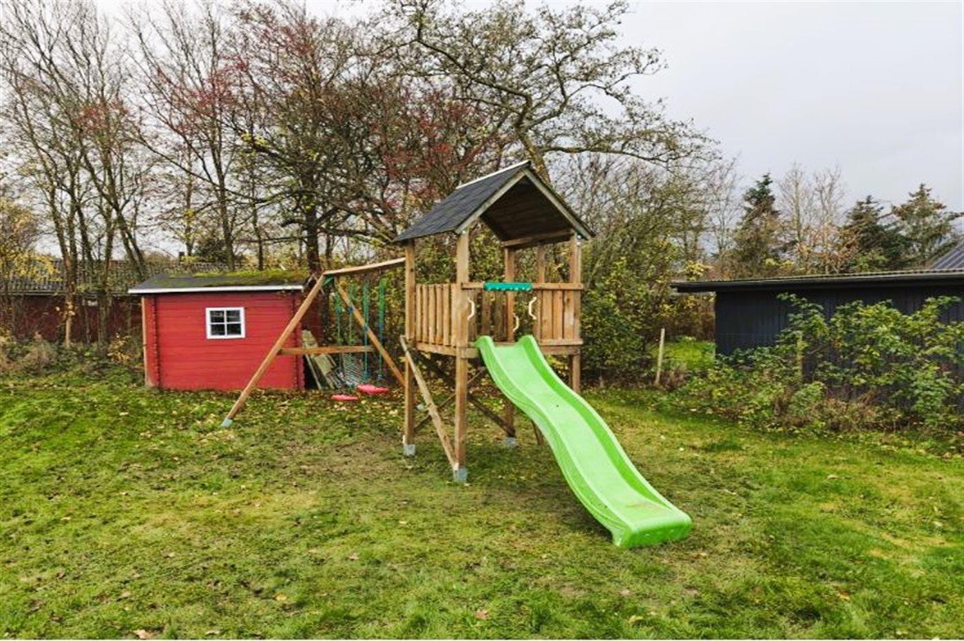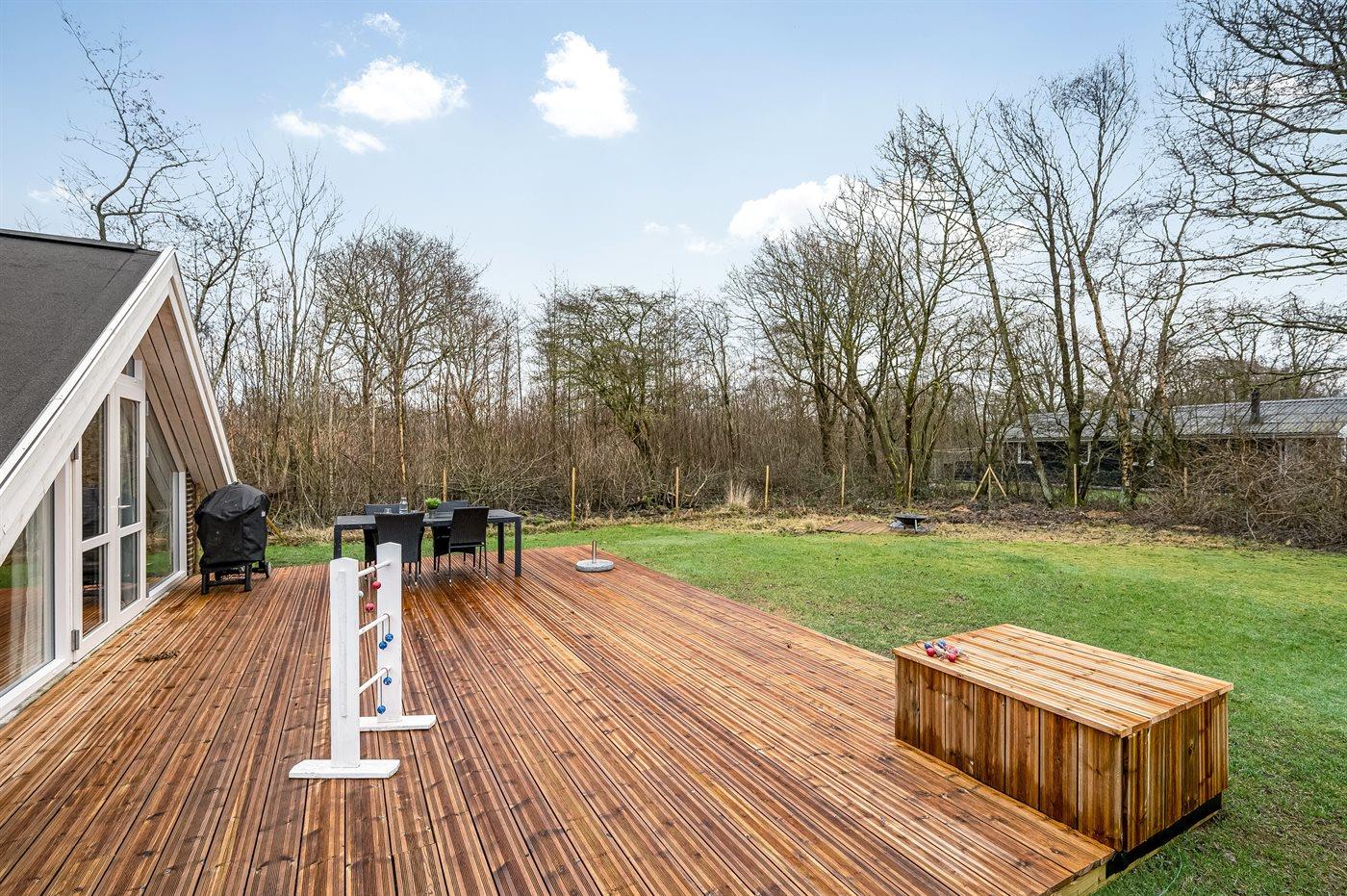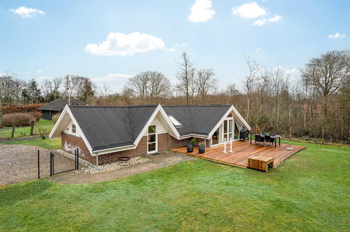 De vakantiewoning is gelegen op een 1100 m² groot natuural grond. De grond is omheind. Afstand tot de zee 6800 m. Afstand tot de fjord 300 m. Dichtstbijzijnde winkel 1600 m. Bij de vakantiewoning hoort terras. Schommel. Speeltoren. Glijbaan. Afstand tot speelplaats 150 m. Parkeerplaats bij het huis.