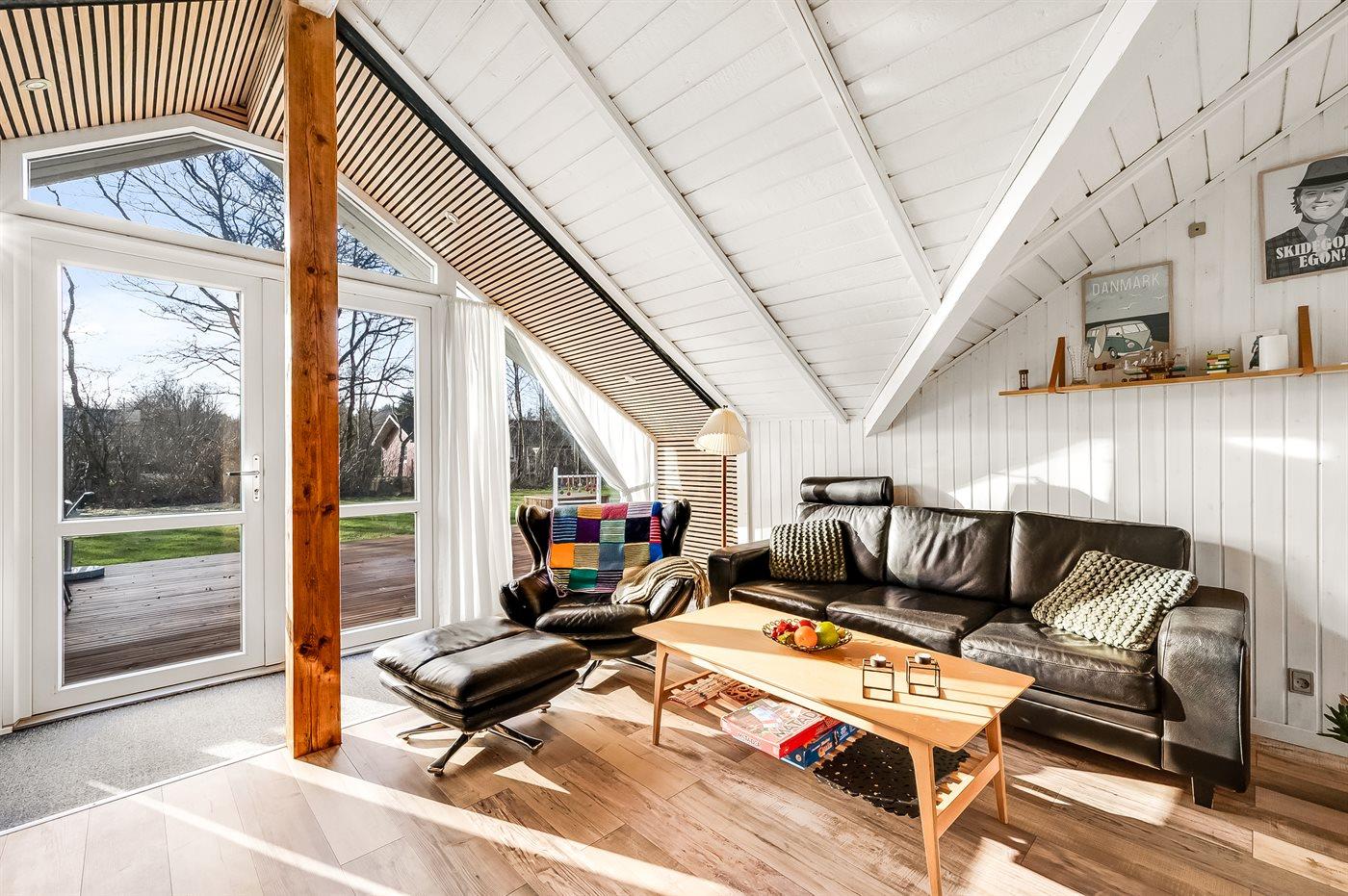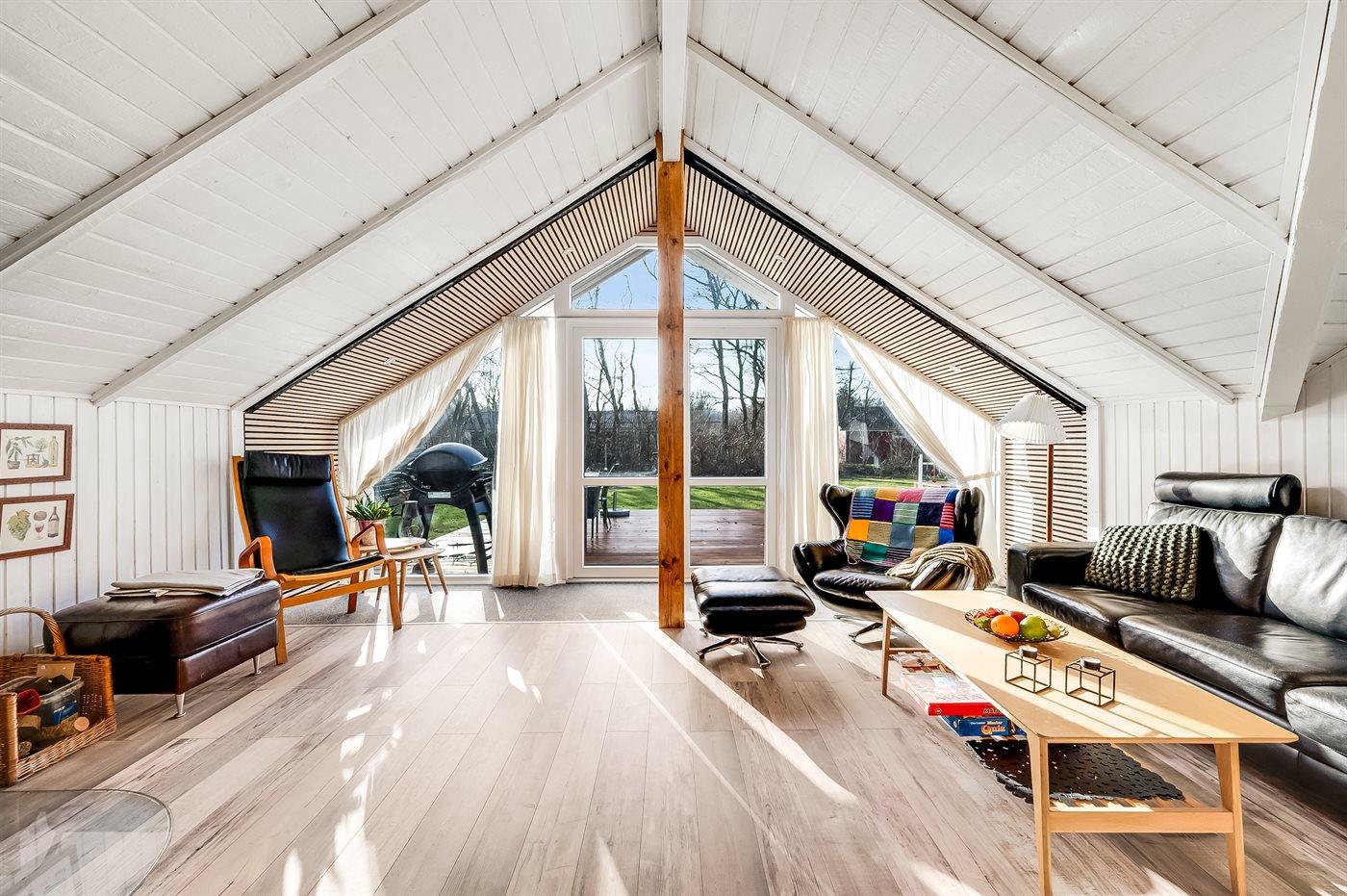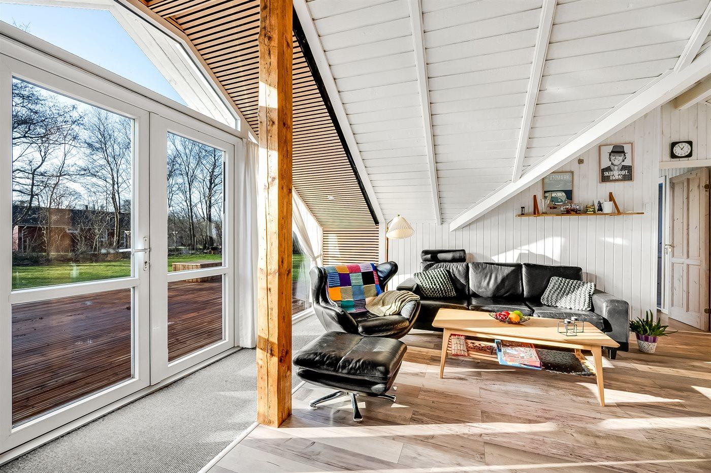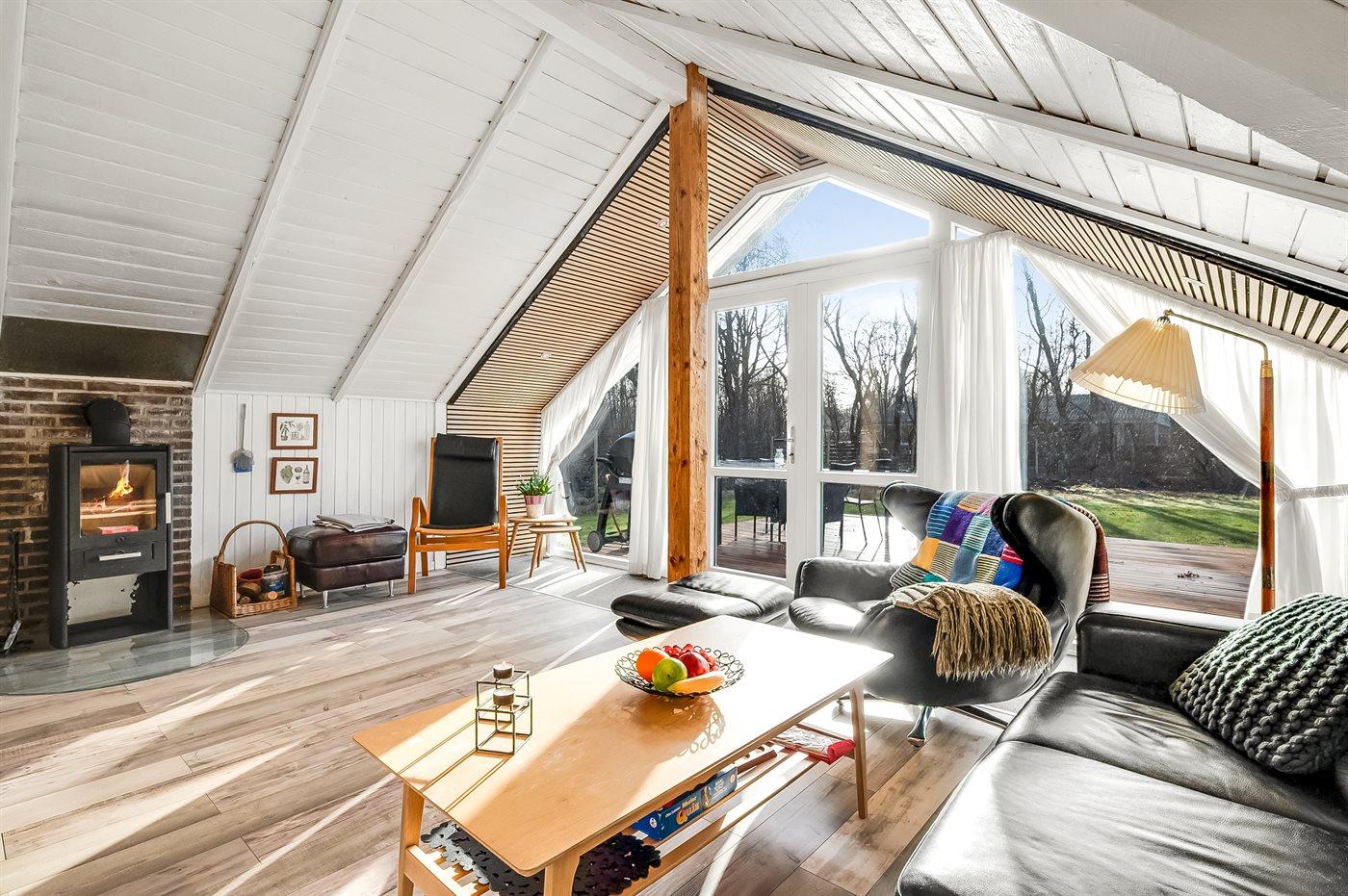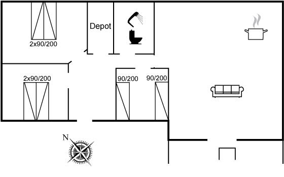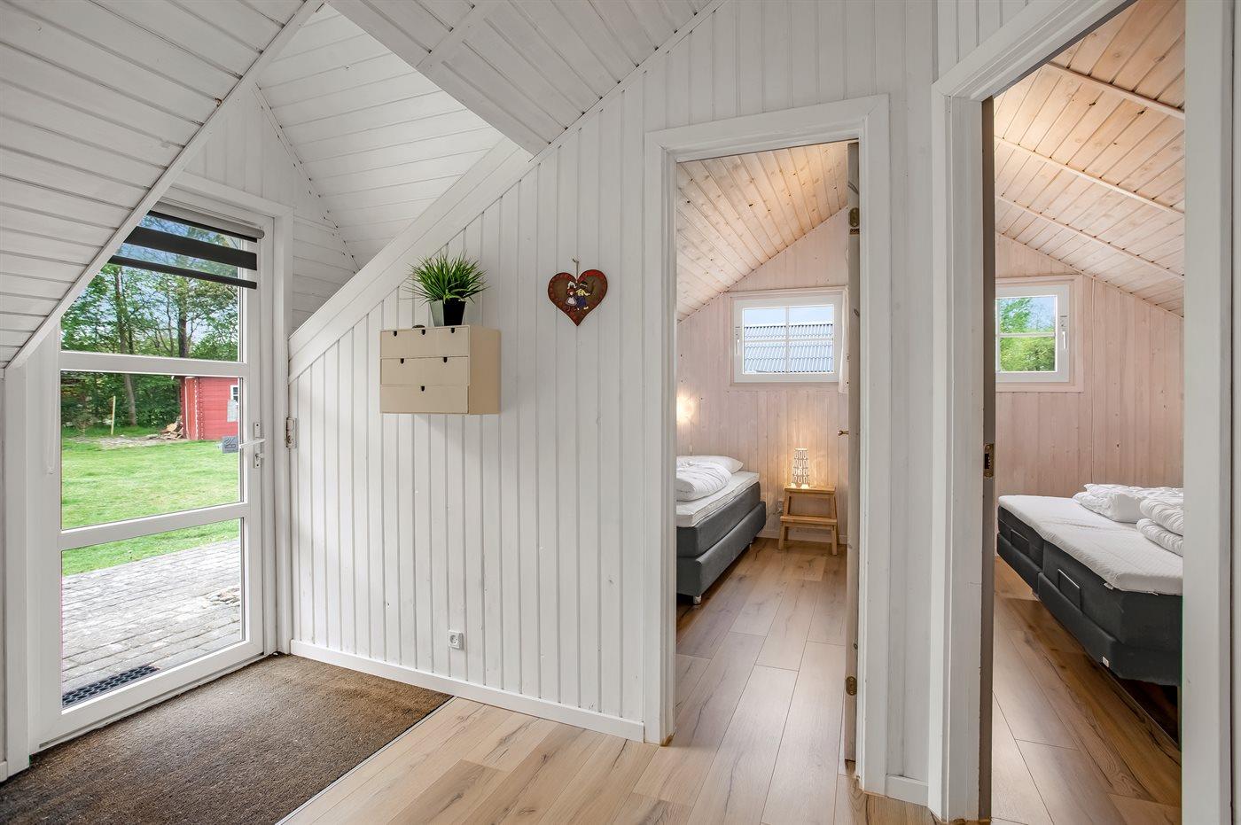 De vakantiewoning is gelegen op een 1100 m² groot natuural grond. De grond is omheind. Afstand tot de zee 6800 m. Afstand tot de fjord 300 m. Dichtstbijzijnde winkel 1600 m. Bij de vakantiewoning hoort terras. Schommel. Speeltoren. Glijbaan. Afstand tot speelplaats 150 m. Parkeerplaats bij het huis.