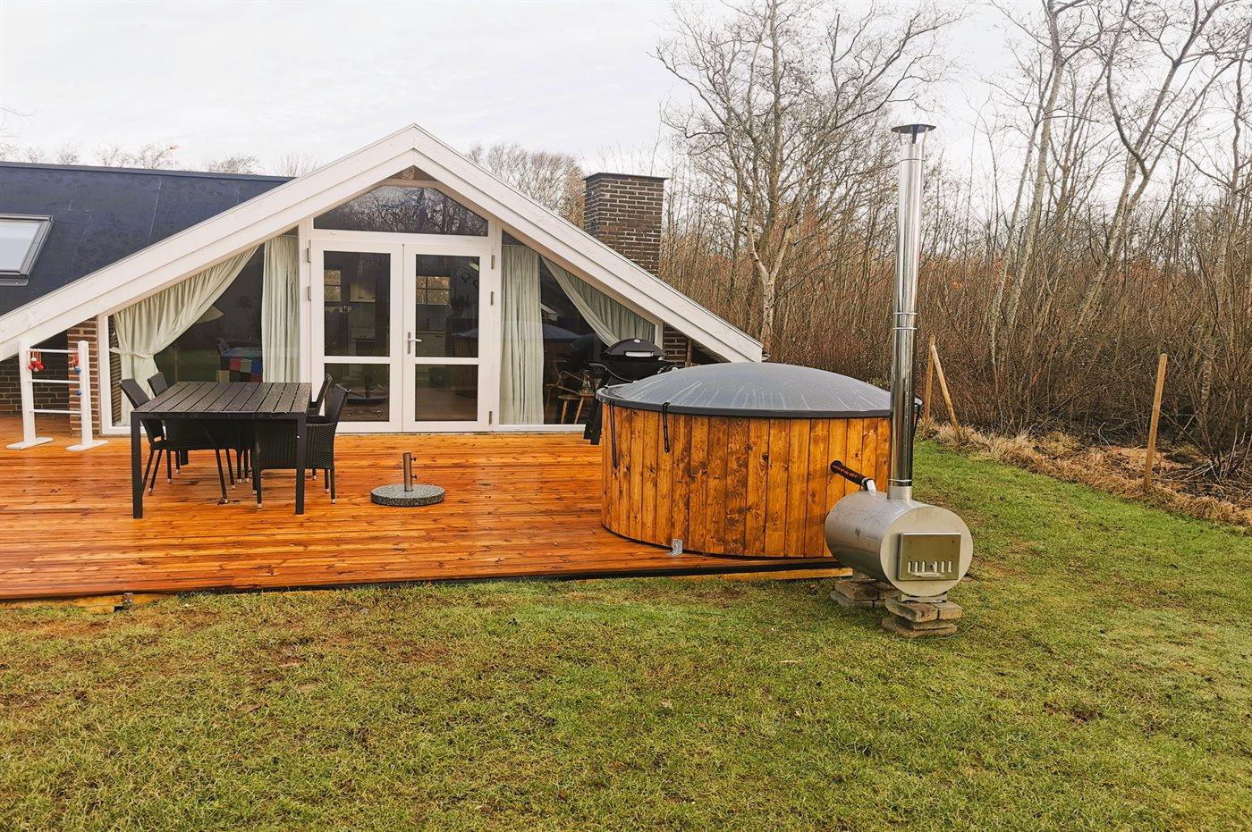 Het buiten hot tub biedt ontspanning aan 6 personen.