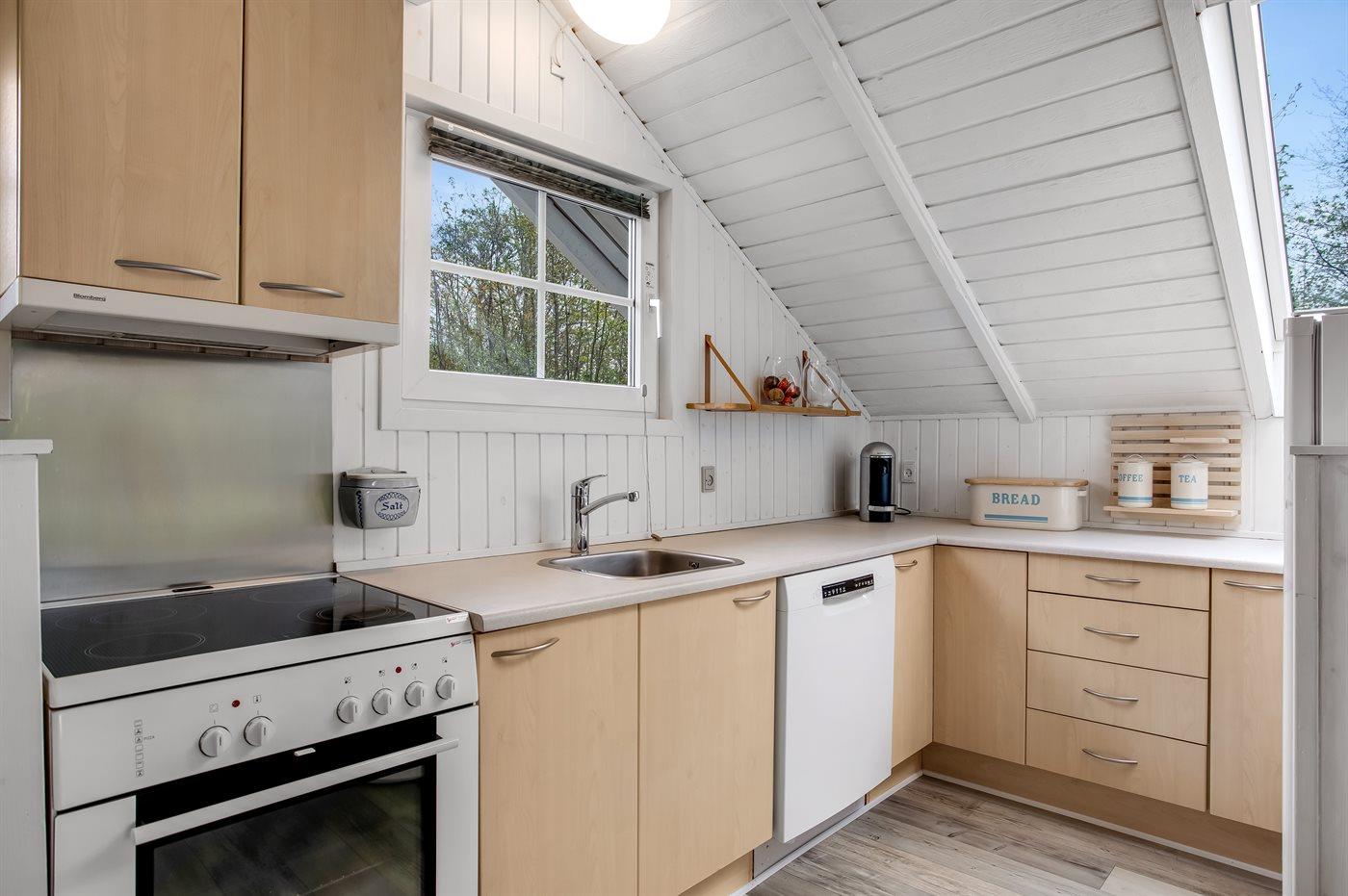 De keuken is uitgerust met koelkast Er zijn 4 keramische kookplaten, heteluchtoven, magnetron en vaatwasser.
