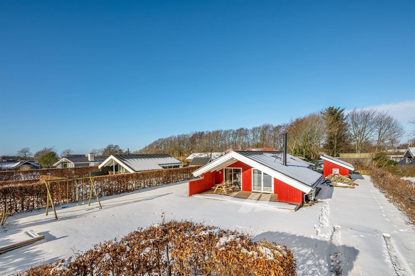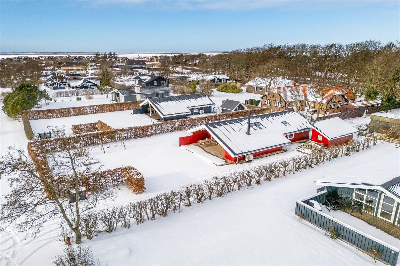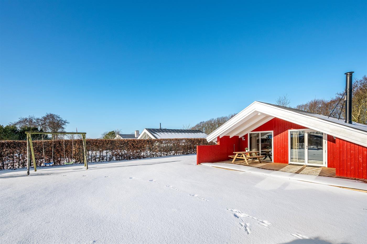 De vakantiewoning is gelegen op een 720 m² groot Afstand tot de zee 7700 m. Afstand tot de fjord 450 m. Dichtstbijzijnde winkel 200 m. Bij de vakantiewoning hoort 15 m² terras. Daarnaast is er een 20 m² groot overdekt terras. Gereedschapsruimte. Schommel. Zandbak. Parkeerplaats bij het huis.