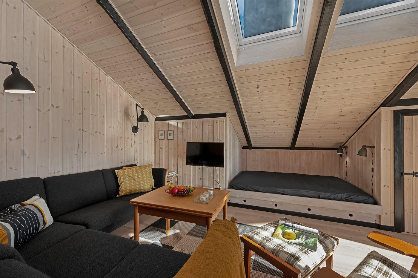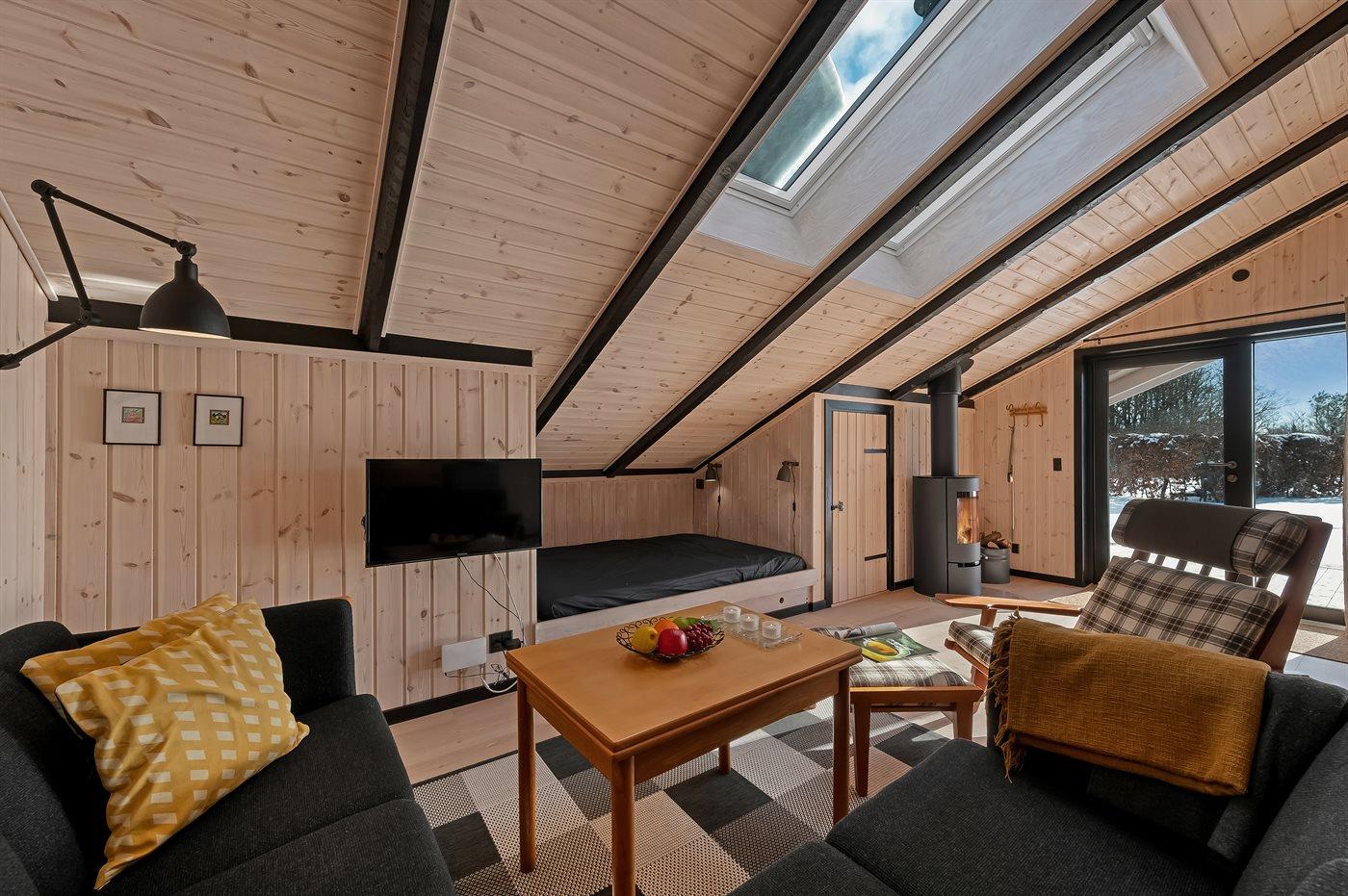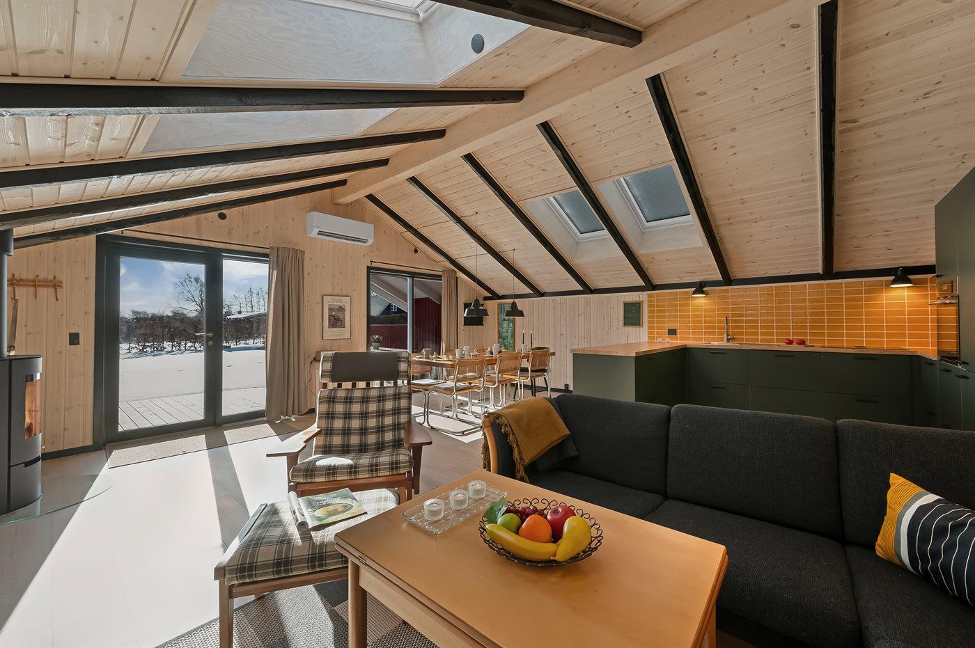 De vakantiewoning is gelegen op een 720 m² groot Afstand tot de zee 7700 m. Afstand tot de fjord 450 m. Dichtstbijzijnde winkel 200 m. Bij de vakantiewoning hoort 15 m² terras. Daarnaast is er een 20 m² groot overdekt terras. Gereedschapsruimte. Schommel. Zandbak. Parkeerplaats bij het huis.