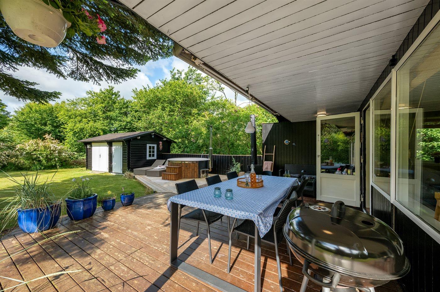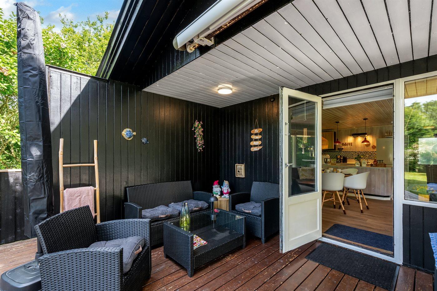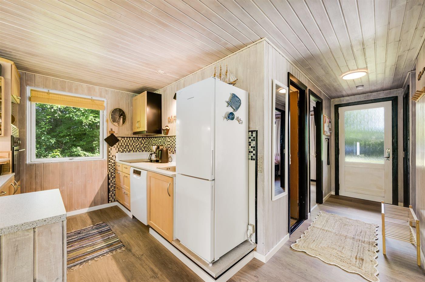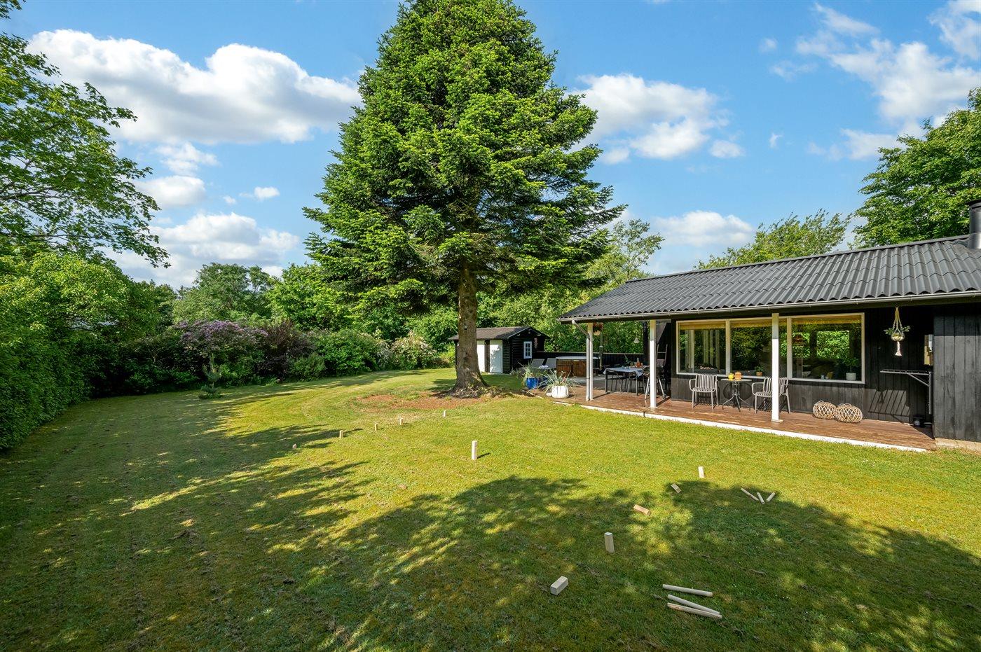De vakantiewoning is gelegen op een 925 m² groot natuural grond. De grond is omheind. Afstand tot de zee 6700 m. Afstand tot de fjord 950 m. Dichtstbijzijnde winkel 1500 m. Bij de vakantiewoning hoort terras en 15 m2 overdekt terras. Gereedschapsruimte. Parkeerplaats bij het huis.
