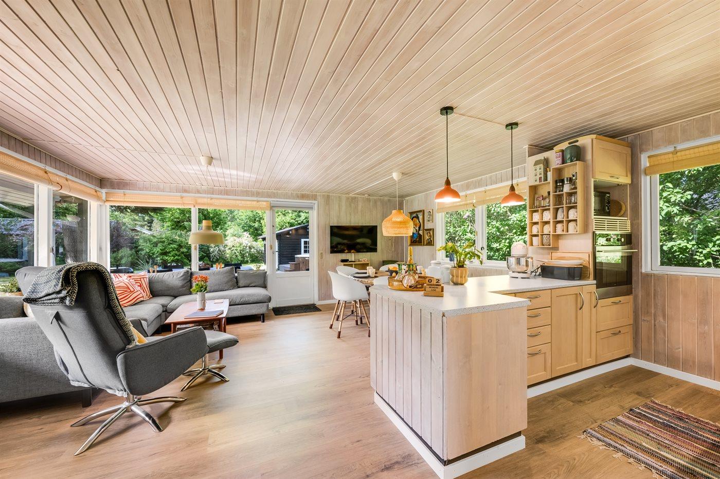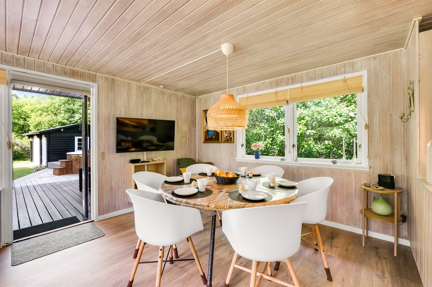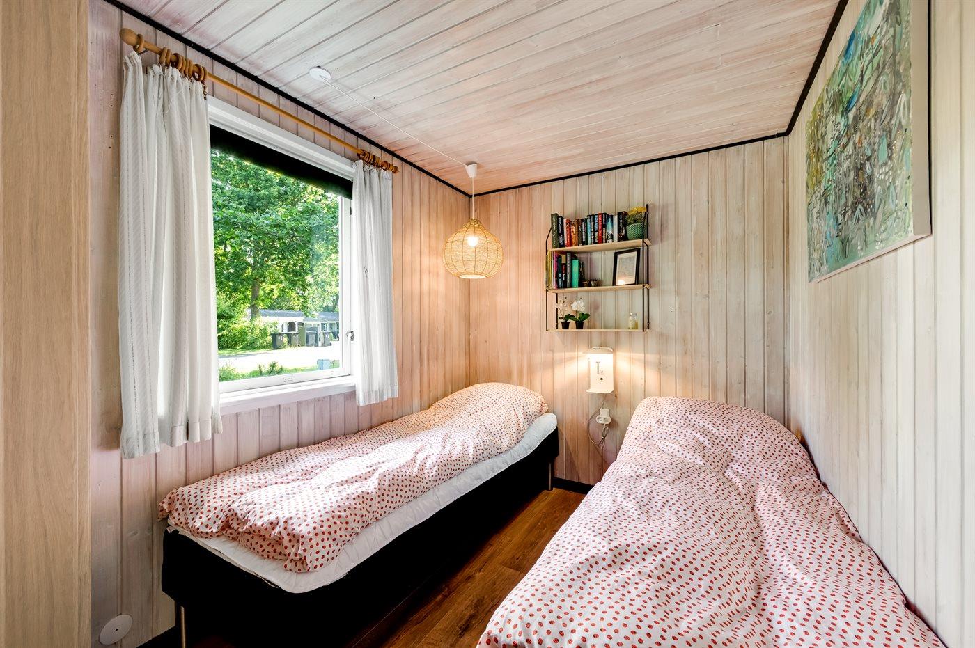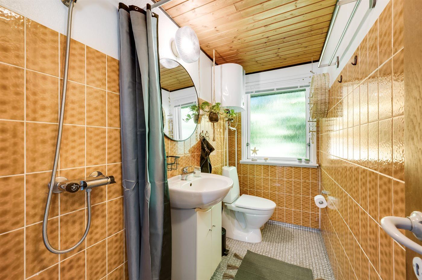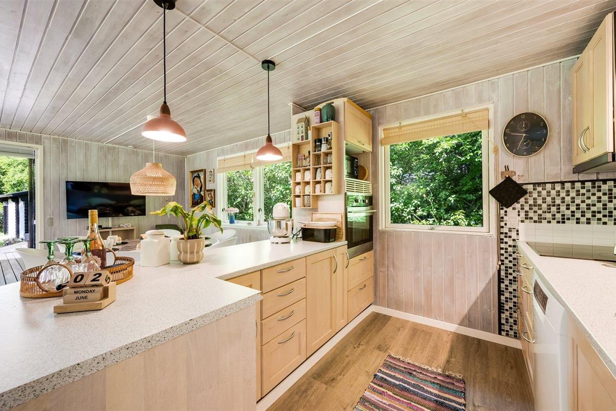 De vakantiewoning is gelegen op een 925 m² groot natuural grond. De grond is omheind. Afstand tot de zee 6700 m. Afstand tot de fjord 950 m. Dichtstbijzijnde winkel 1500 m. Bij de vakantiewoning hoort terras en 15 m2 overdekt terras. Gereedschapsruimte. Parkeerplaats bij het huis.