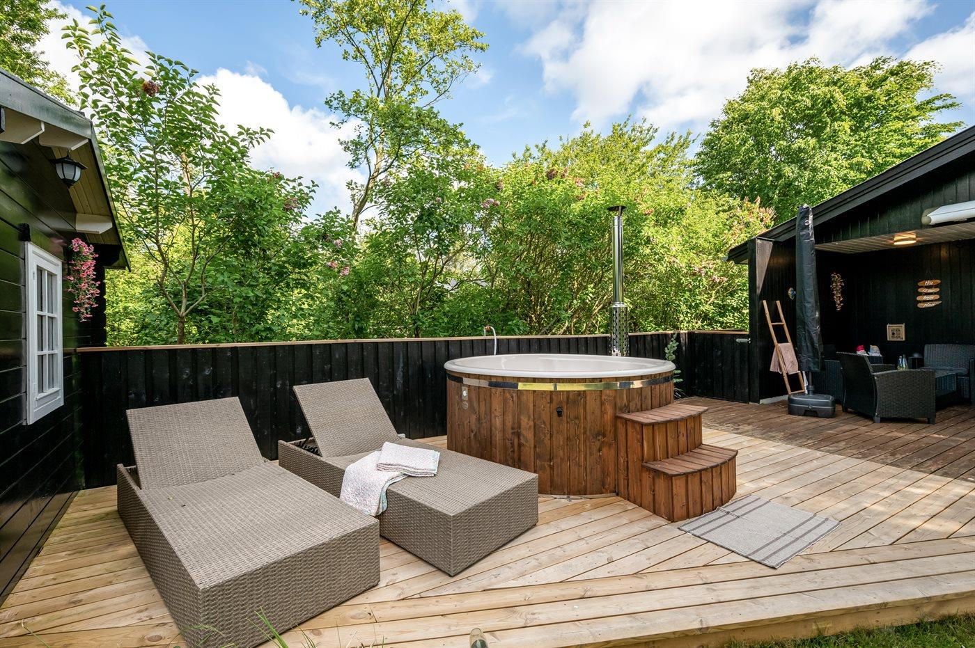 Het buiten hot tub biedt ontspanning aan 6 personen.