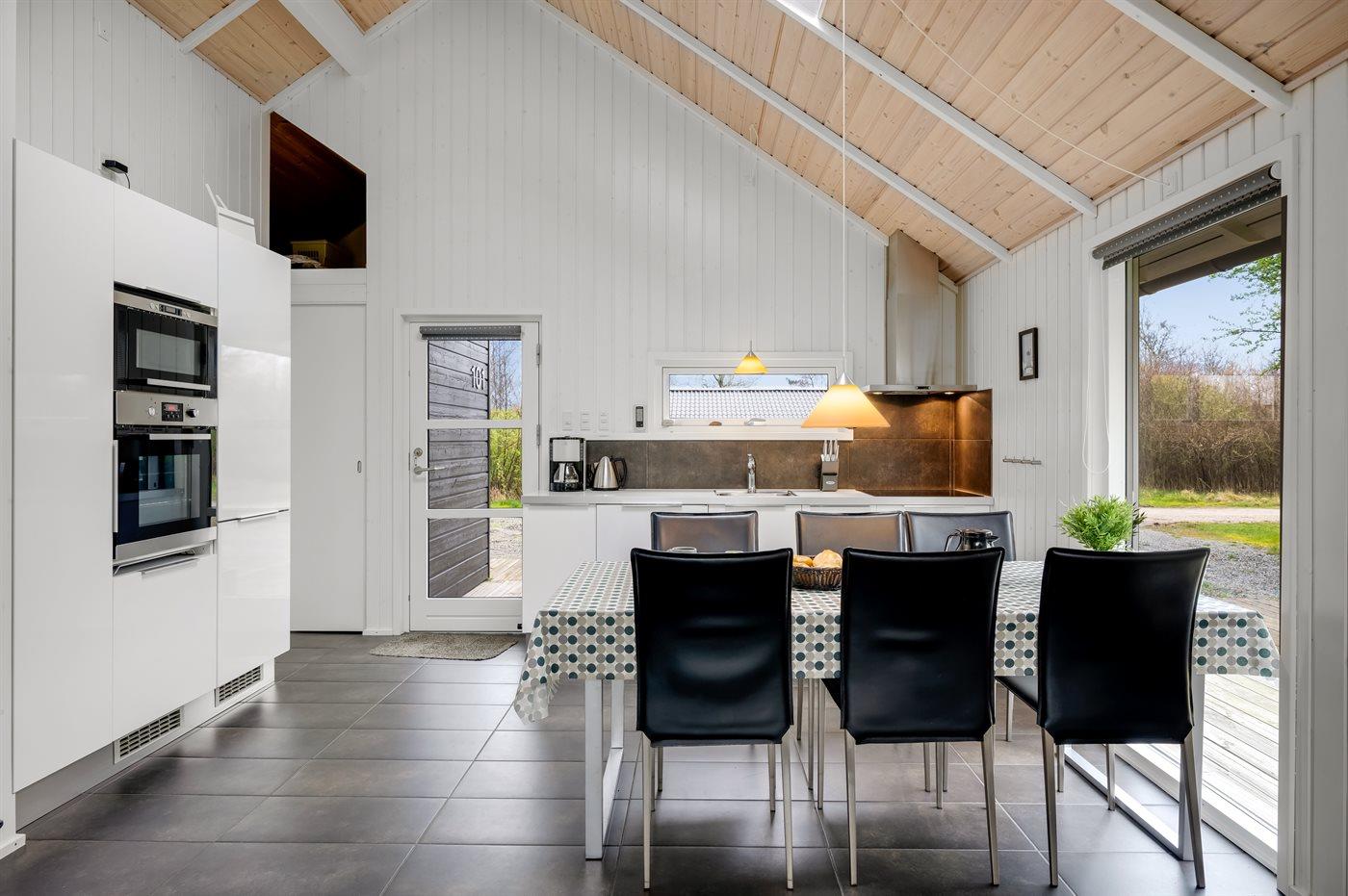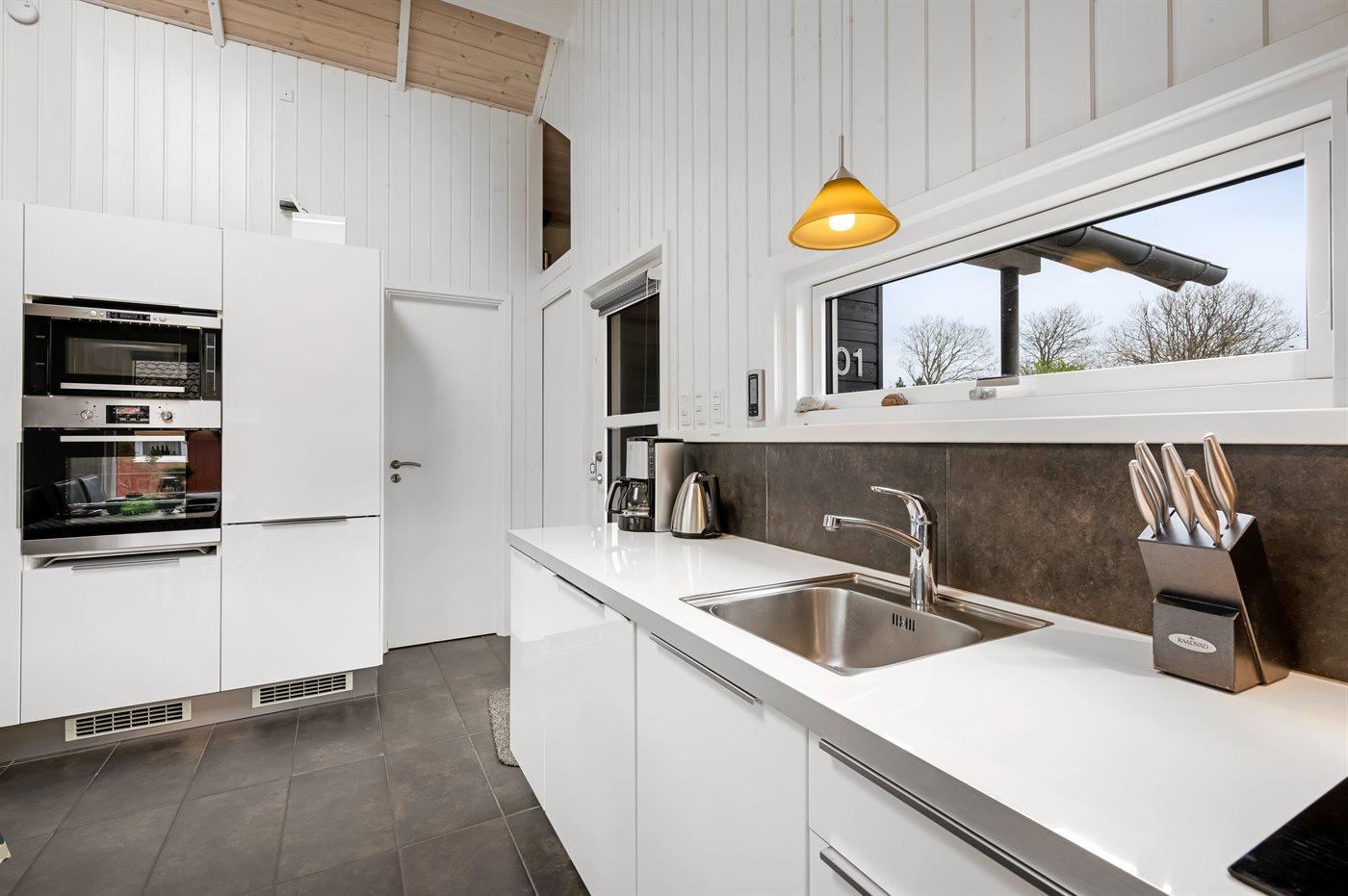De keuken is uitgerust met koelkast Er zijn 4 keramische kookplaten, heteluchtoven, magnetron en vaatwasser.