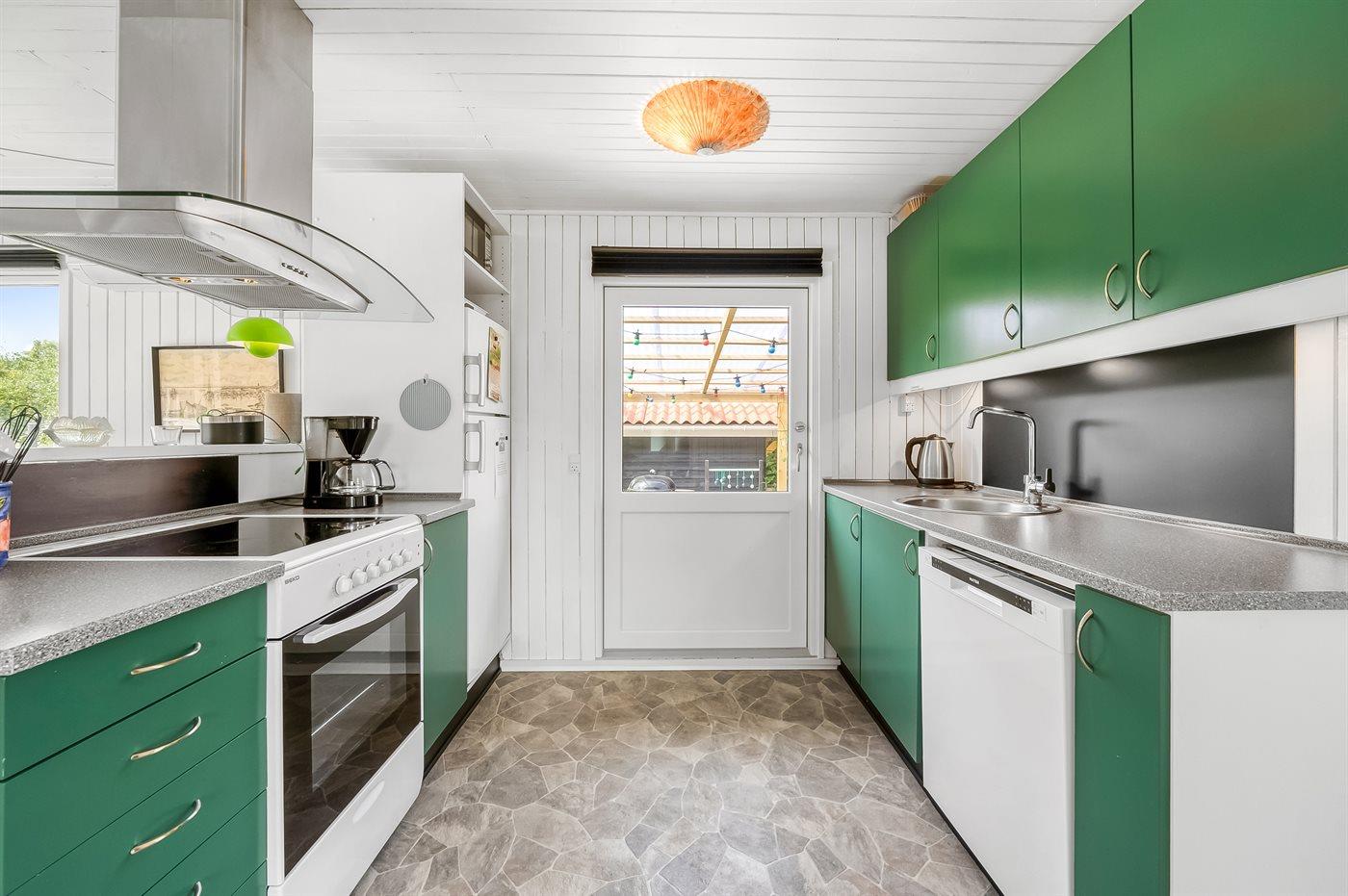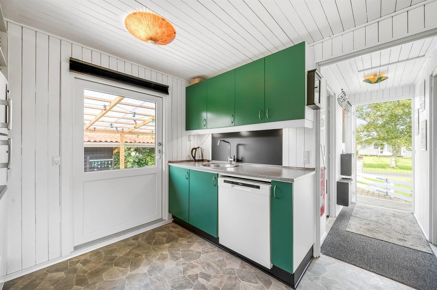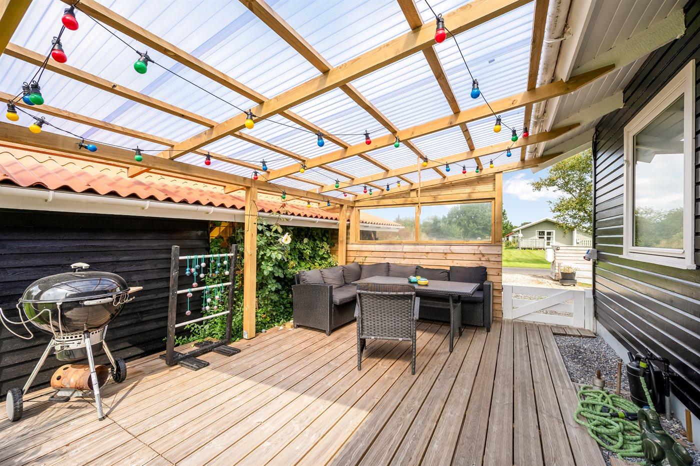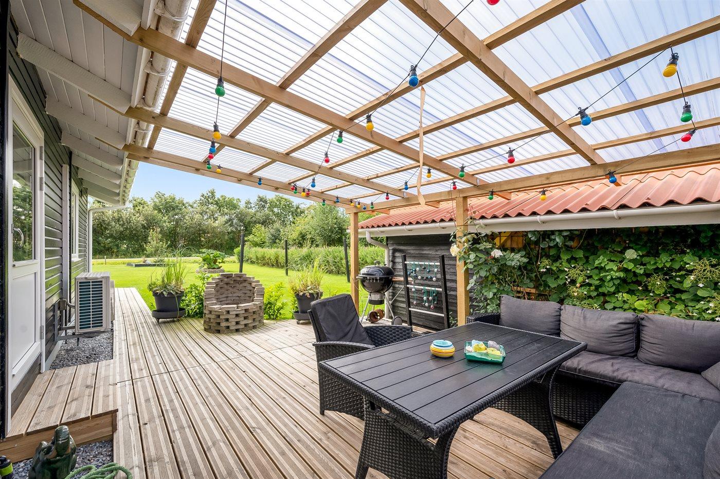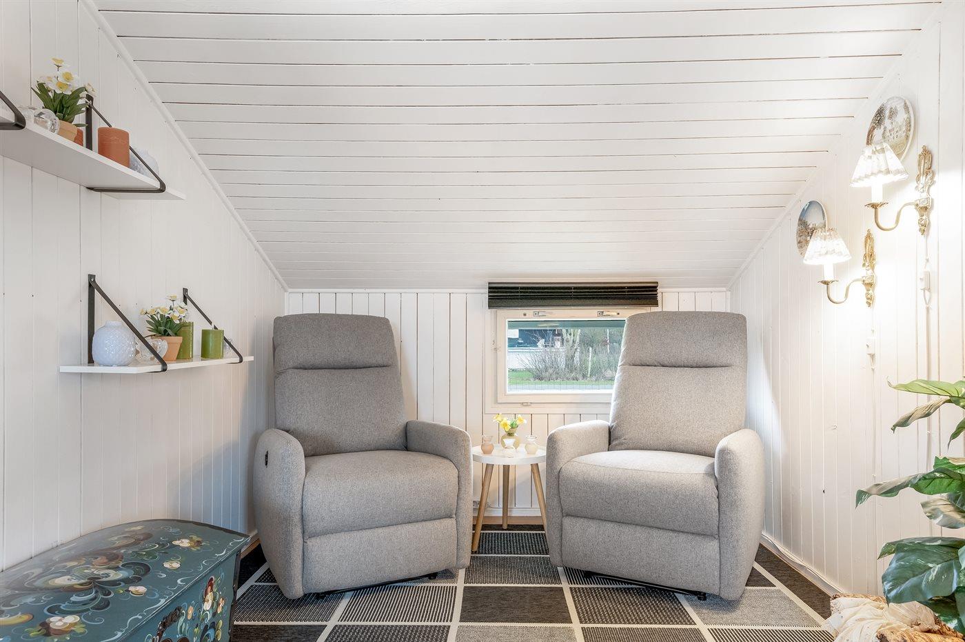 De vakantiewoning is gelegen op een 987 m² groot natuural grond. De grond is omheind. Afstand tot de zee 7200 m. Afstand tot de fjord 600 m. Er is een zwemsteiger in de buurt. Dichtstbijzijnde winkel 800 m. Bij de vakantiewoning hoort 26 m² terras. Daarnaast is er een 7 m² groot overdekt terras. Gereedschapsruimte. Afstand tot speelplaats 400 m.Vuurplaats. Barbecue. Het huis heeft een stopcontact voor het opladen van een elektrische auto. Parkeerplaats bij het huis.
