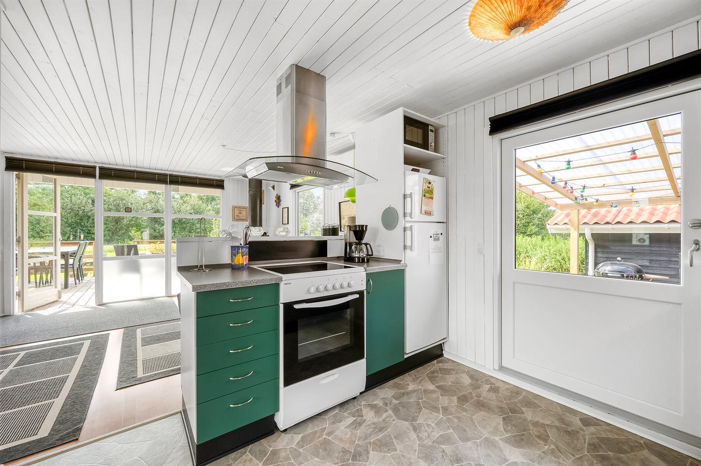 De keuken is uitgerust met koelkast Er zijn 4 keramische kookplaten, heteluchtoven, magnetron en vaatwasser.