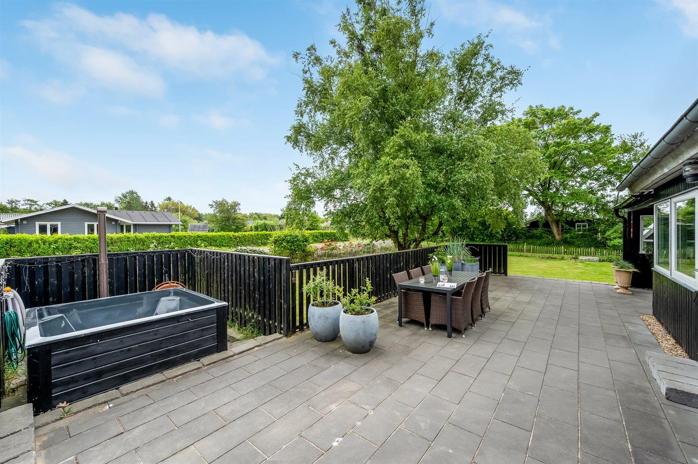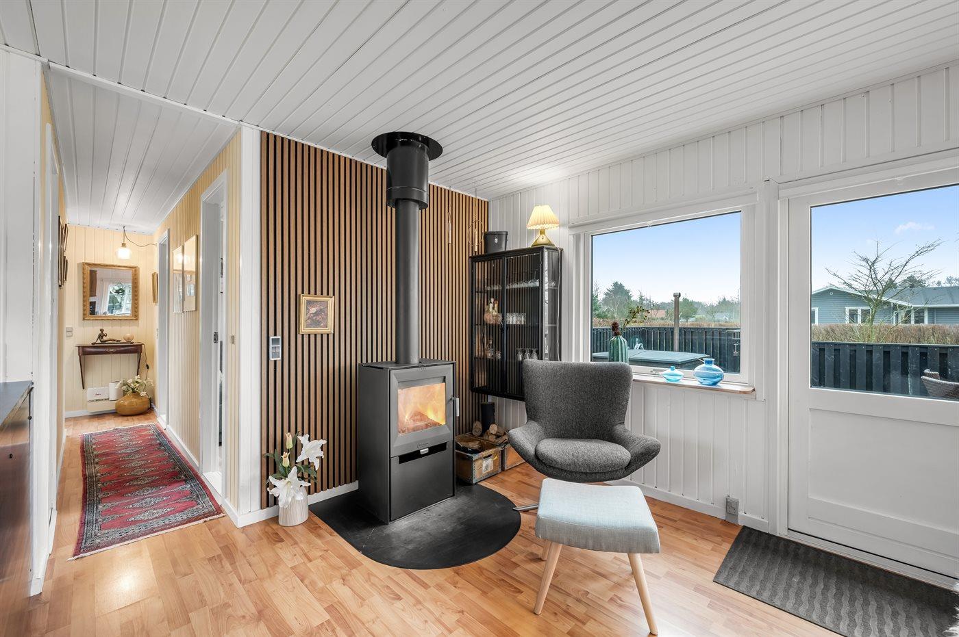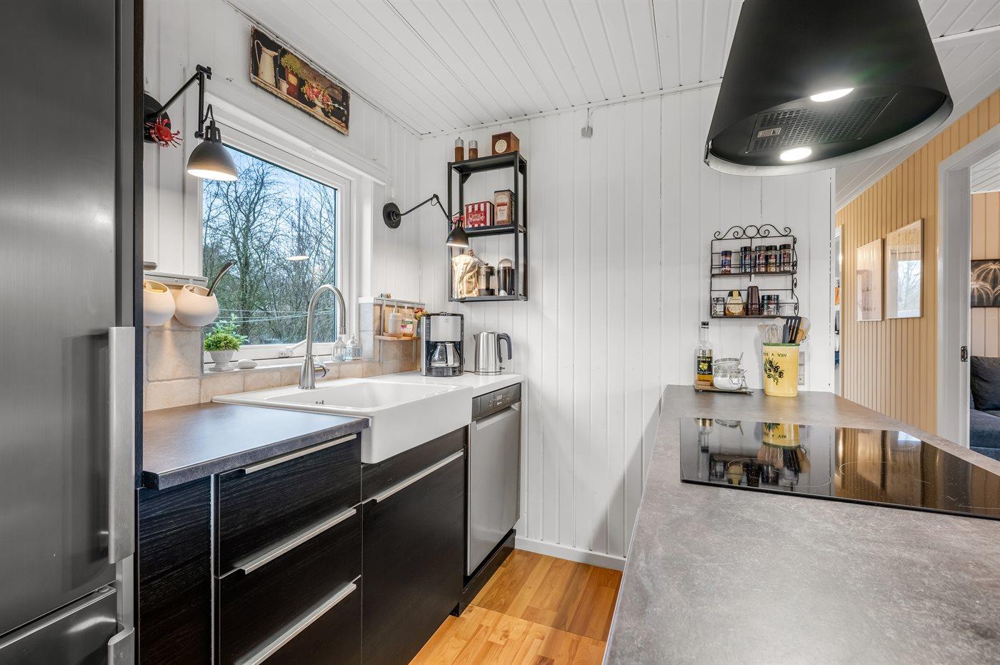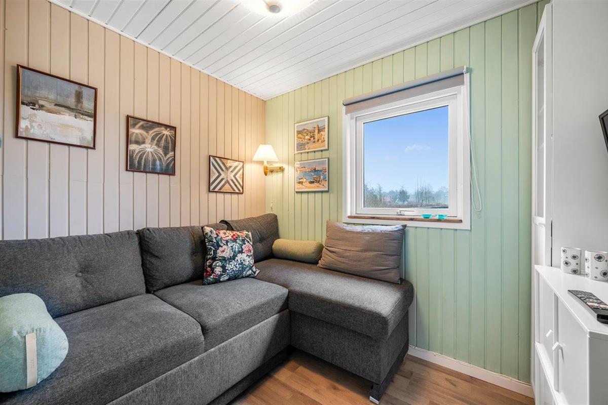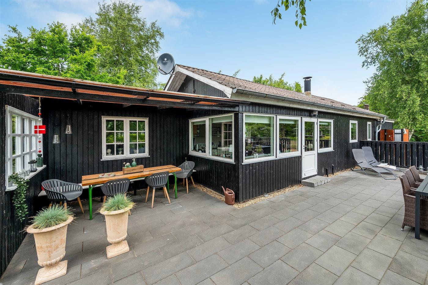 De vakantiewoning is gelegen op een 994 m² groot natuural grond. De grond is omheind. Afstand tot de zee 7200 m. Afstand tot de fjord 550 m. Er is een zwemsteiger in de buurt. Dichtstbijzijnde winkel 800 m. Bij de vakantiewoning hoort terras. Daarnaast is er een overdekt terras. Gereedschapsruimte. Parkeerplaats bij het huis.