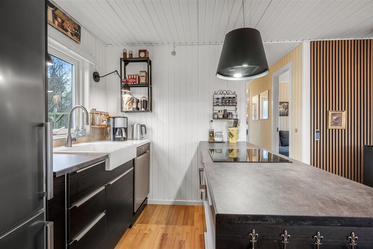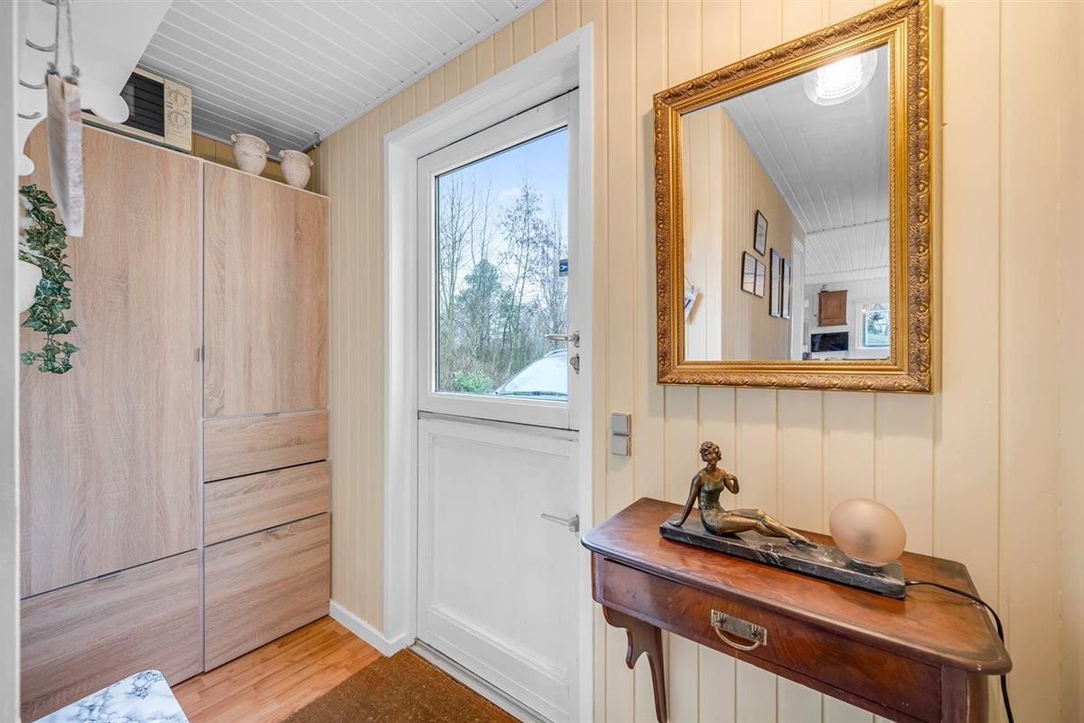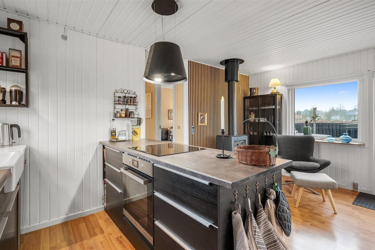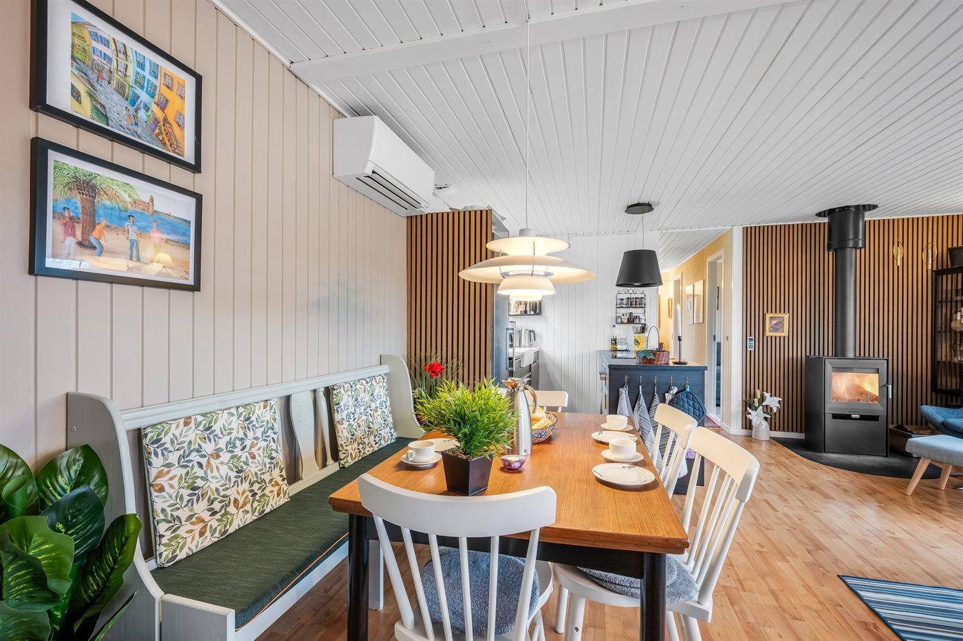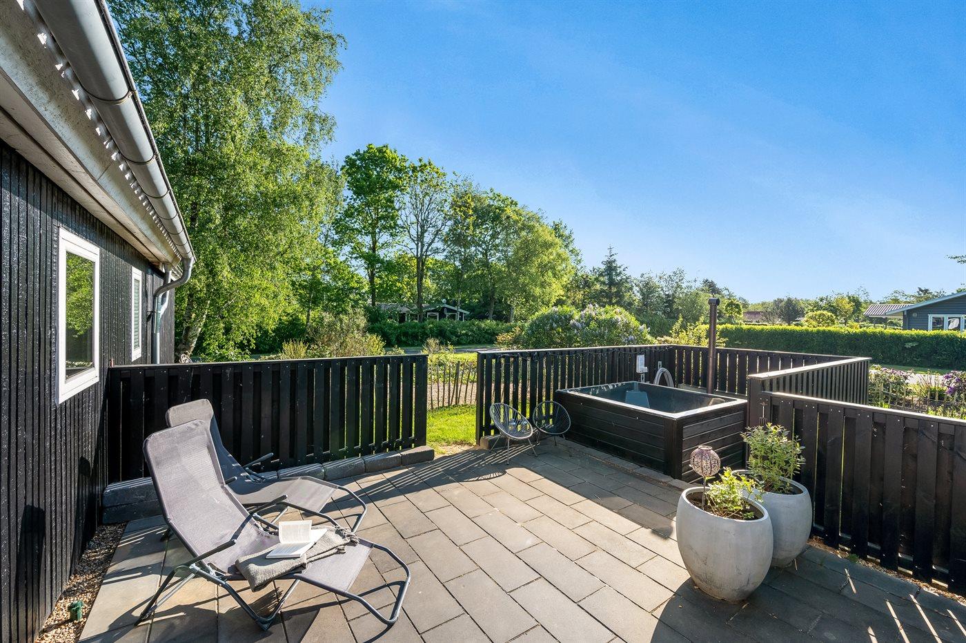 De vakantiewoning is gelegen op een 994 m² groot natuural grond. De grond is omheind. Afstand tot de zee 7200 m. Afstand tot de fjord 550 m. Er is een zwemsteiger in de buurt. Dichtstbijzijnde winkel 800 m. Bij de vakantiewoning hoort terras. Daarnaast is er een overdekt terras. Gereedschapsruimte. Parkeerplaats bij het huis.