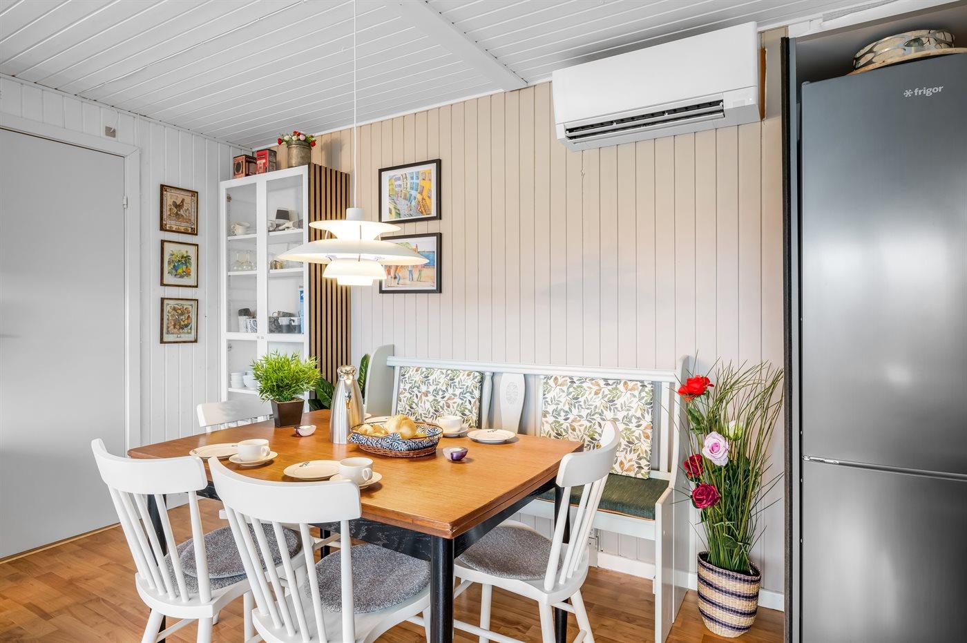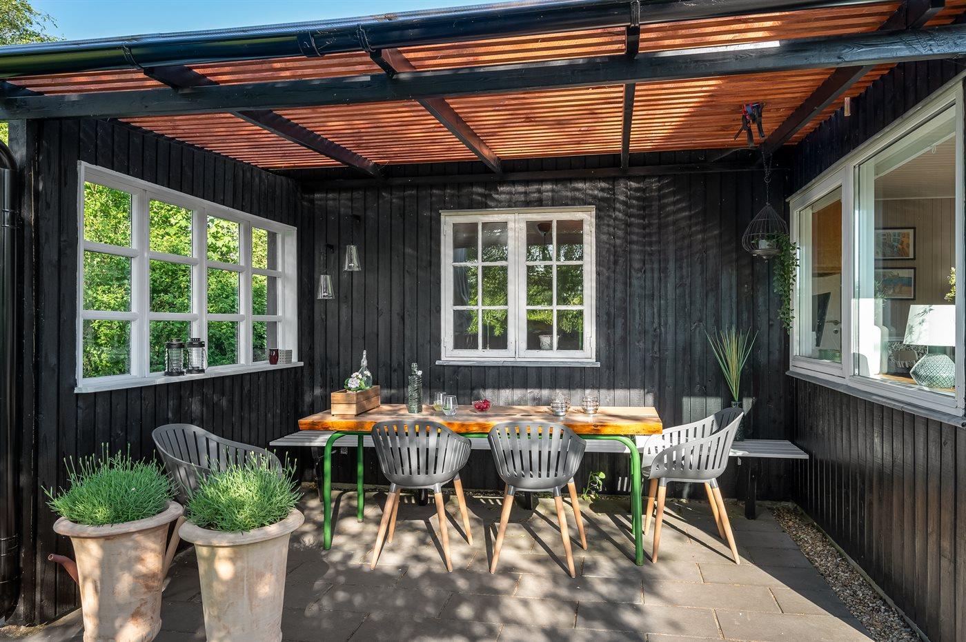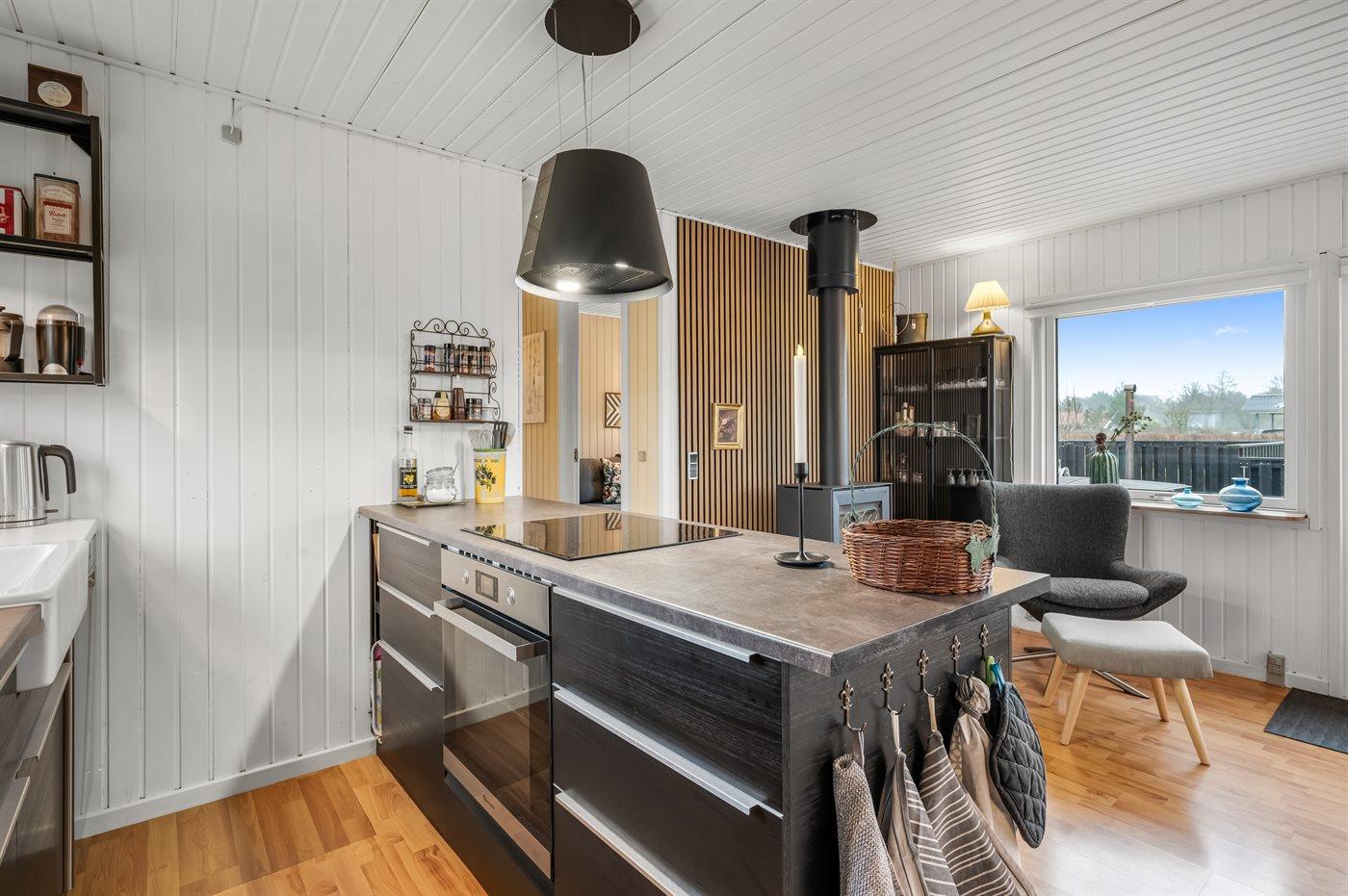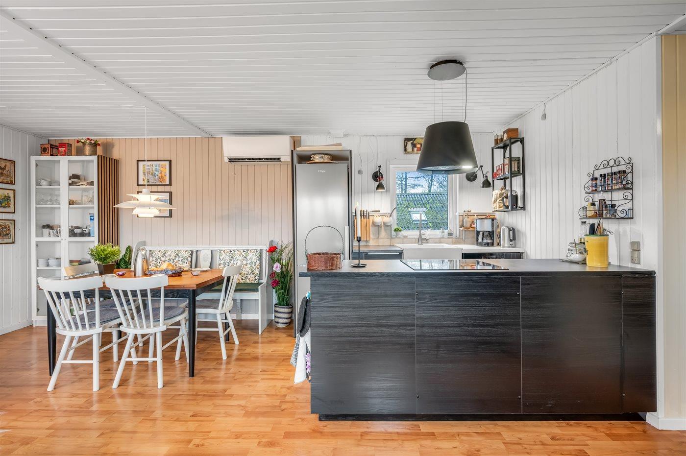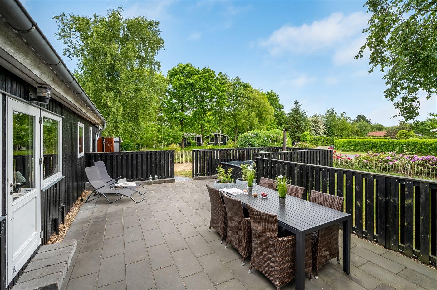 De vakantiewoning is gelegen op een 994 m² groot natuural grond. De grond is omheind. Afstand tot de zee 7200 m. Afstand tot de fjord 550 m. Er is een zwemsteiger in de buurt. Dichtstbijzijnde winkel 800 m. Bij de vakantiewoning hoort terras. Daarnaast is er een overdekt terras. Gereedschapsruimte. Parkeerplaats bij het huis.