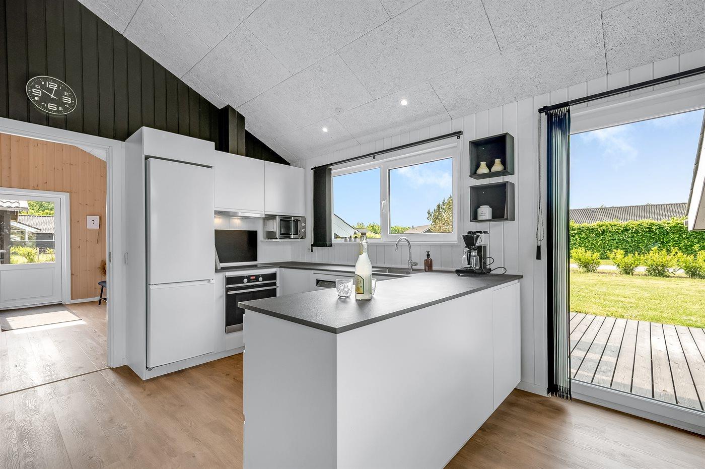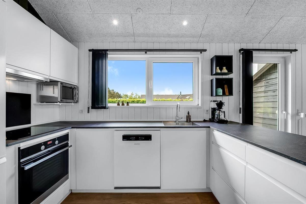 De keuken is uitgerust met koelkast Er zijn 4 keramische kookplaten, heteluchtoven, magnetron en vaatwasser.