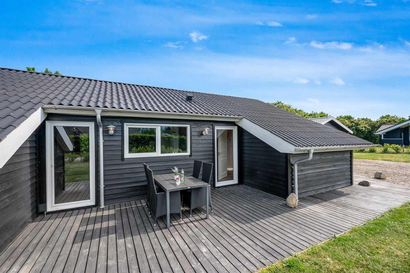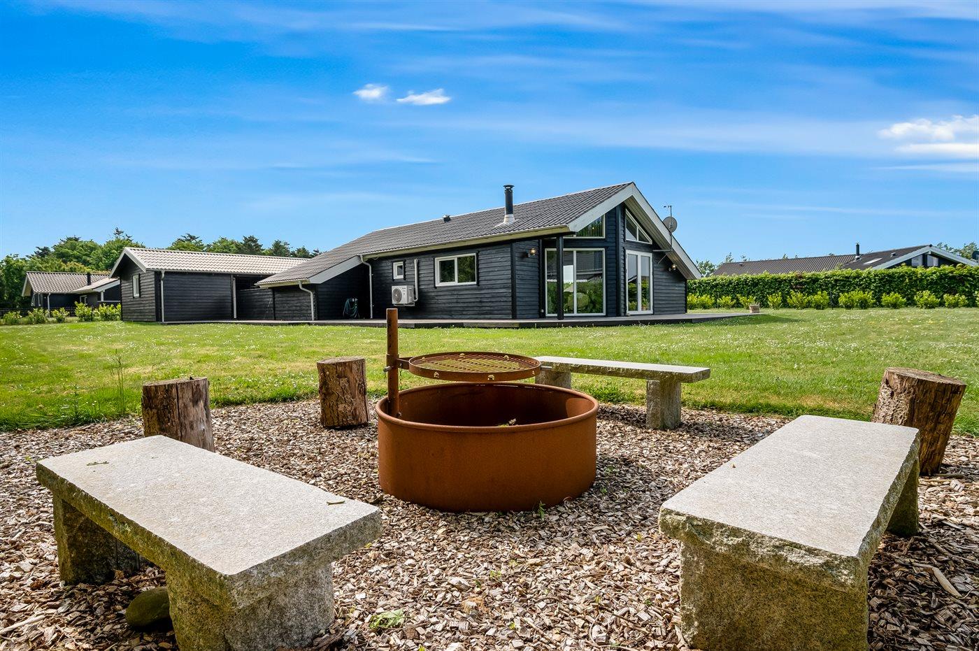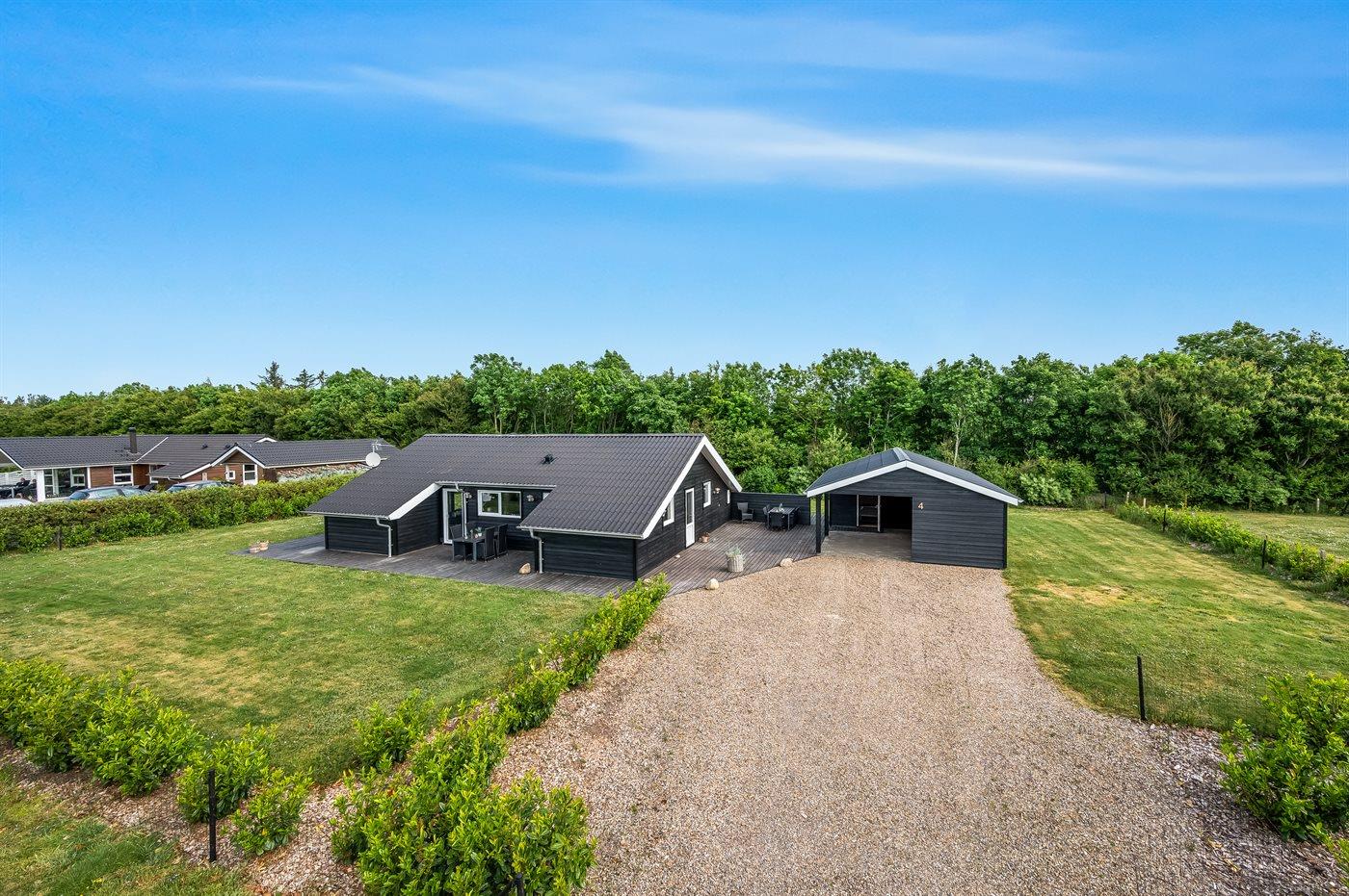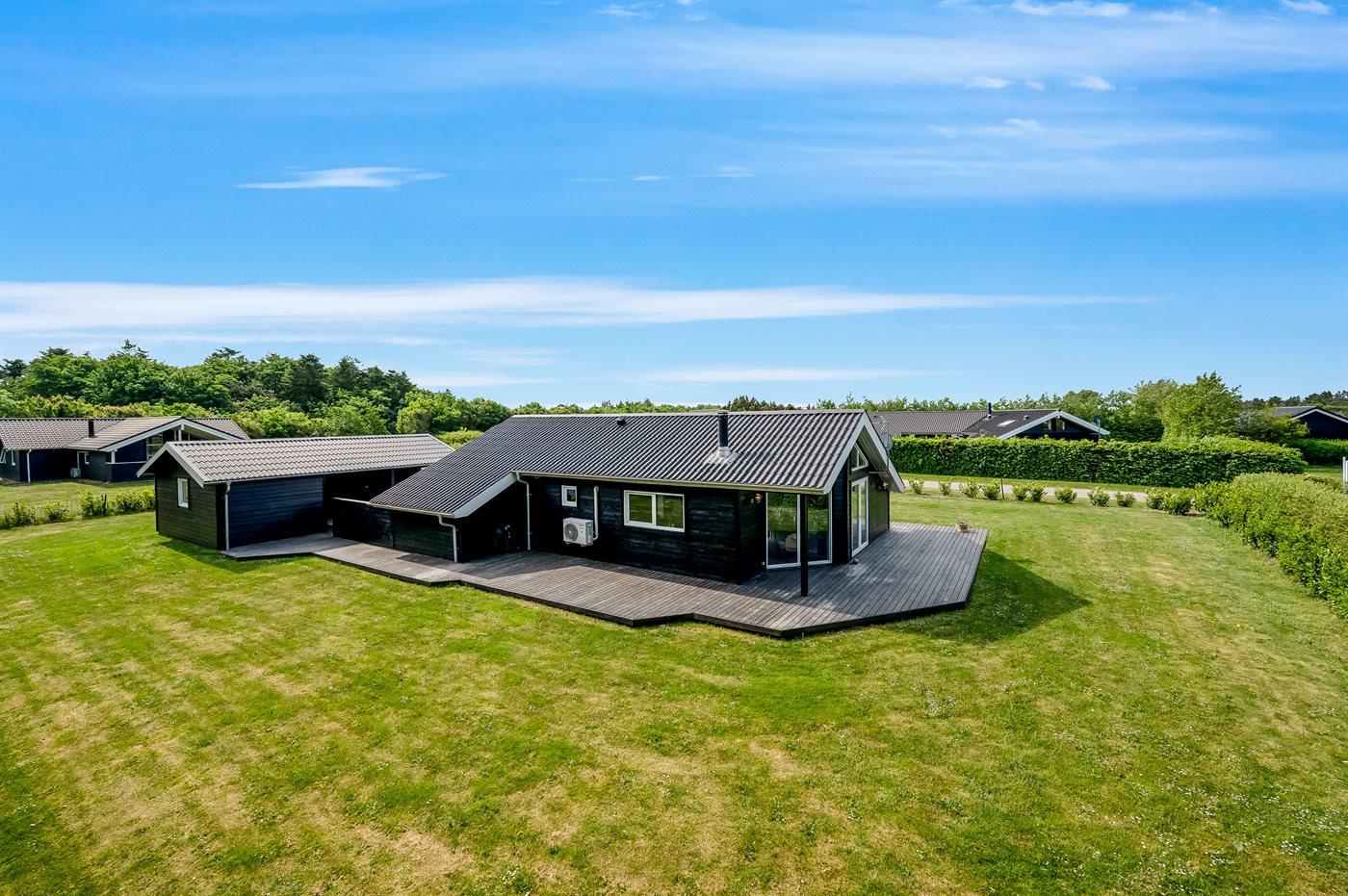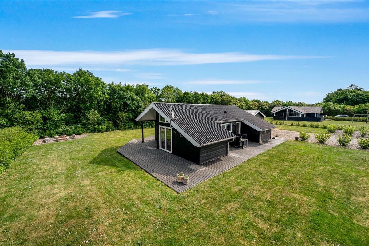 De vakantiewoning is gelegen op een 1241 m² groot natuural grond. De grond is omheind. Afstand tot de zee 7000 m. Afstand tot de fjord 1400 m. Dichtstbijzijnde winkel 1500 m. Bij de vakantiewoning hoort 70 m² terras.Vuurplaats. Carport ter beschikking. Parkeerplaats bij het huis.