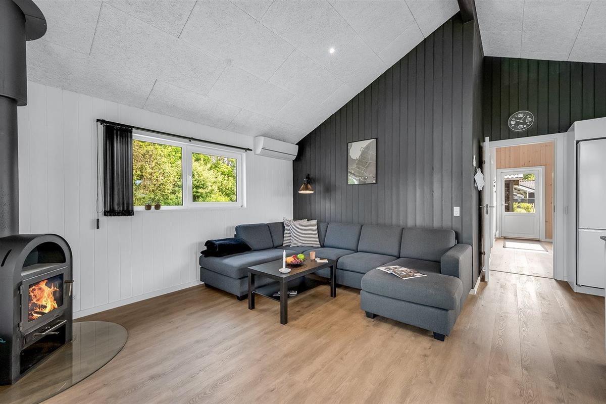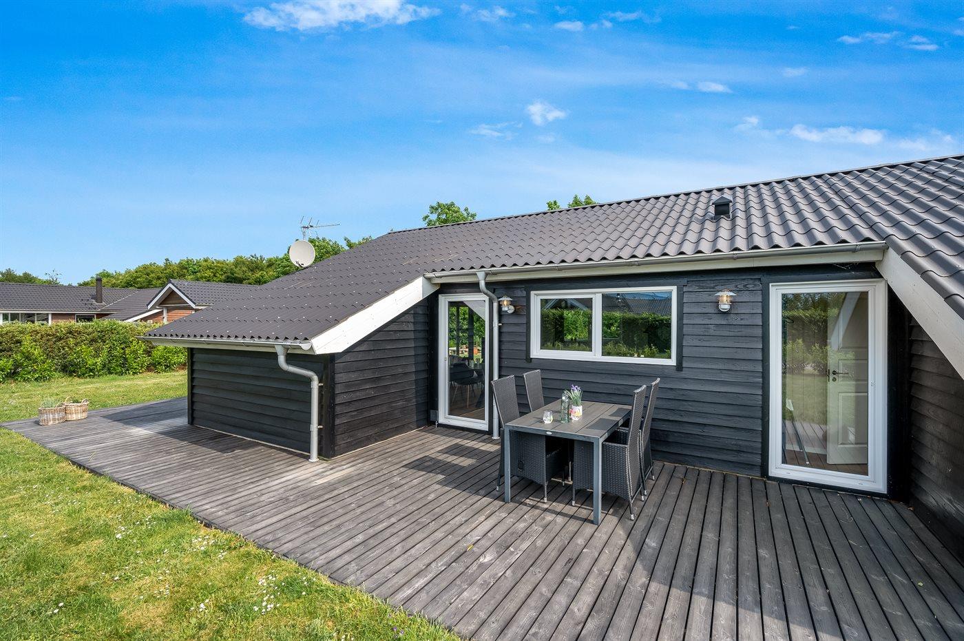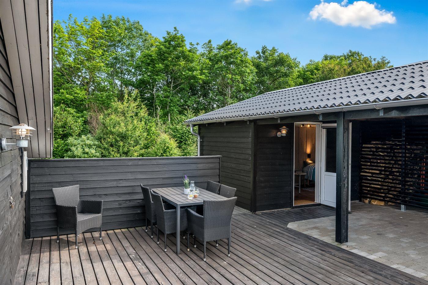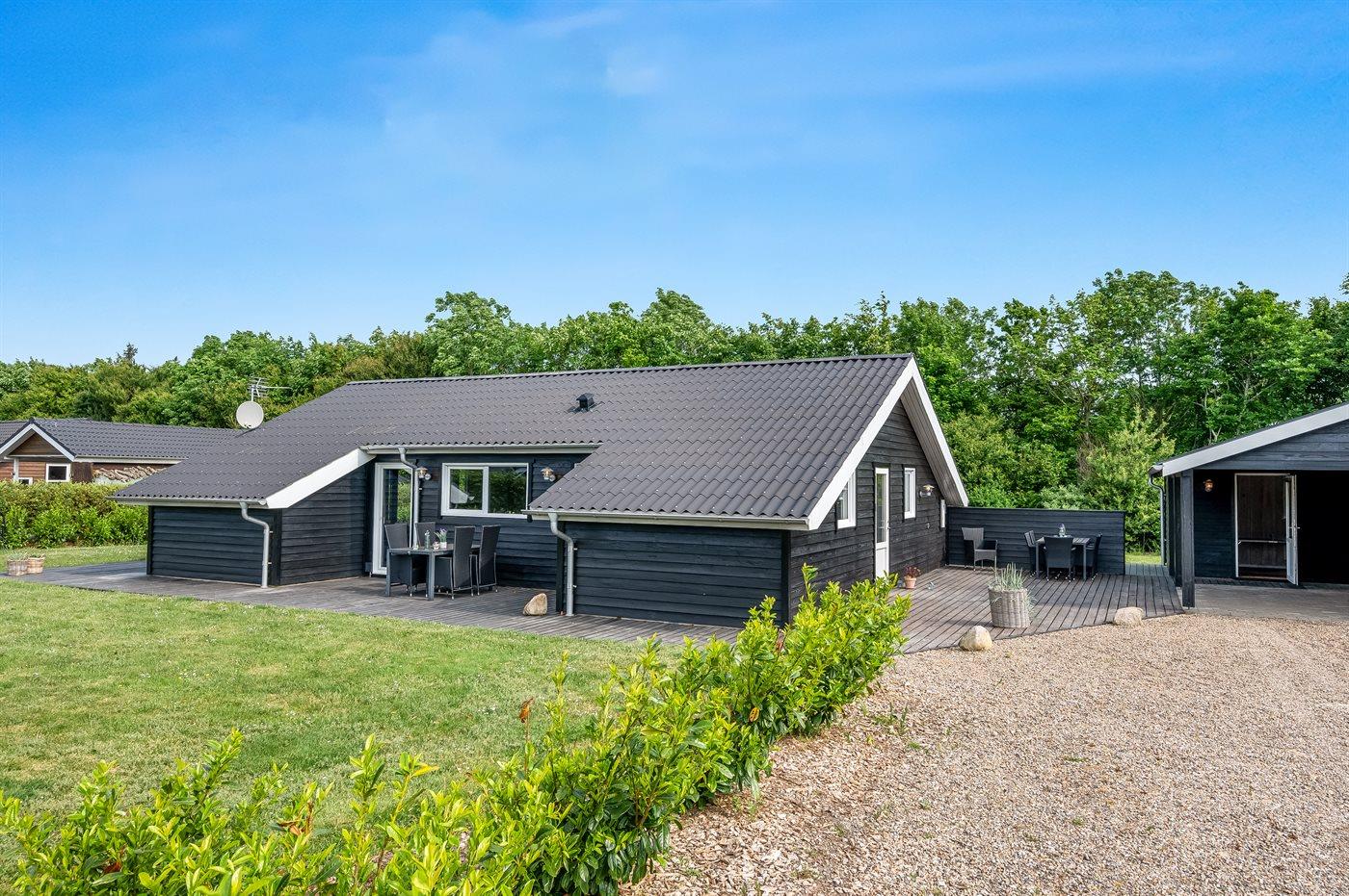 De vakantiewoning is gelegen op een 1241 m² groot natuural grond. De grond is omheind. Afstand tot de zee 7000 m. Afstand tot de fjord 1400 m. Dichtstbijzijnde winkel 1500 m. Bij de vakantiewoning hoort 70 m² terras.Vuurplaats. Carport ter beschikking. Parkeerplaats bij het huis.