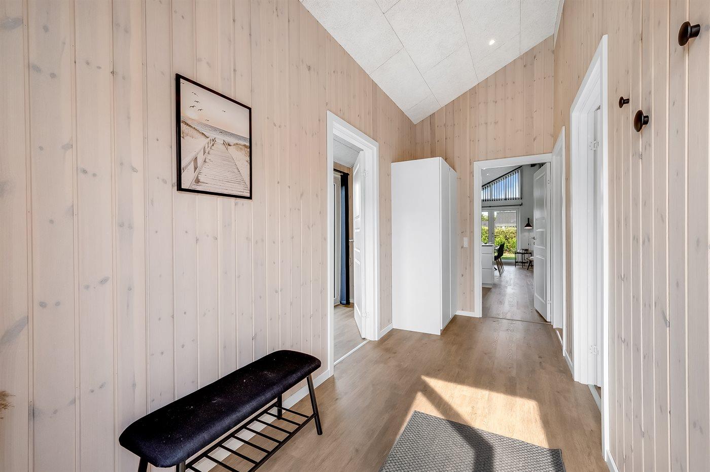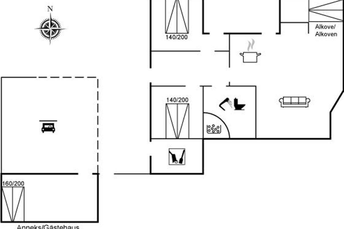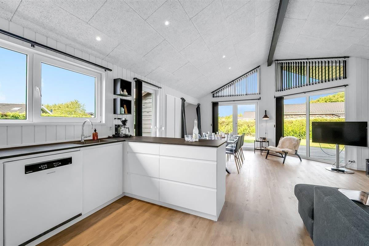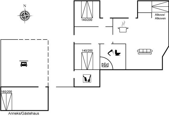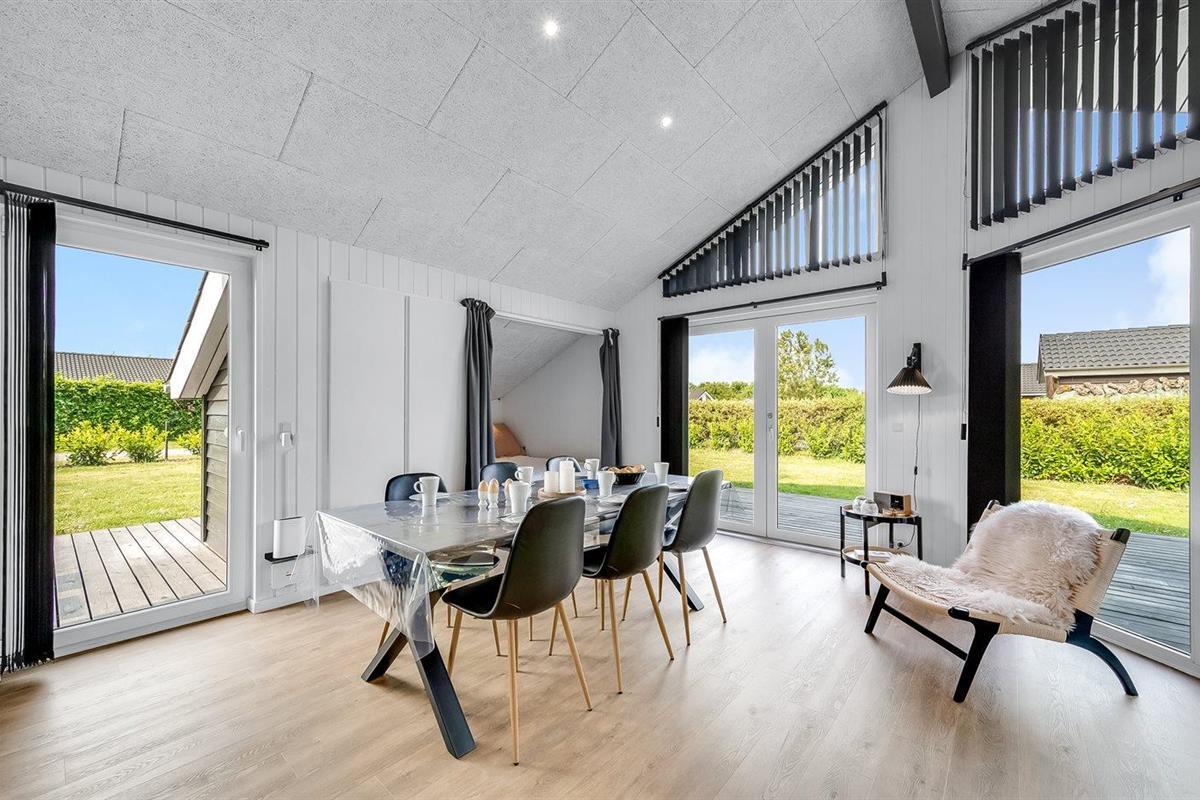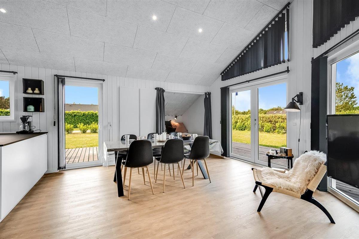 De vakantiewoning is gelegen op een 1241 m² groot natuural grond. De grond is omheind. Afstand tot de zee 7000 m. Afstand tot de fjord 1400 m. Dichtstbijzijnde winkel 1500 m. Bij de vakantiewoning hoort 70 m² terras.Vuurplaats. Carport ter beschikking. Parkeerplaats bij het huis.