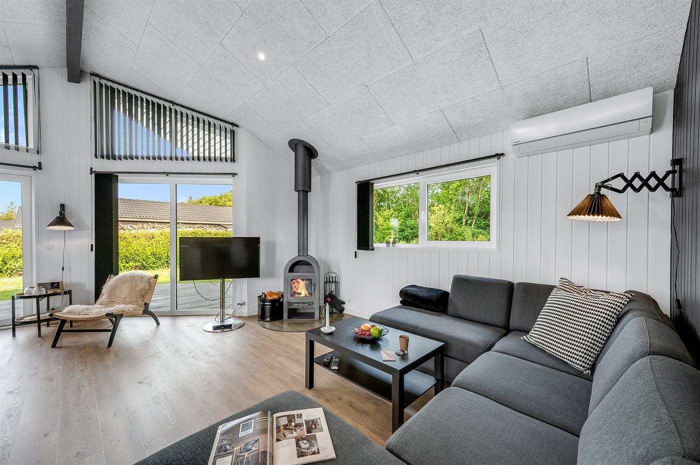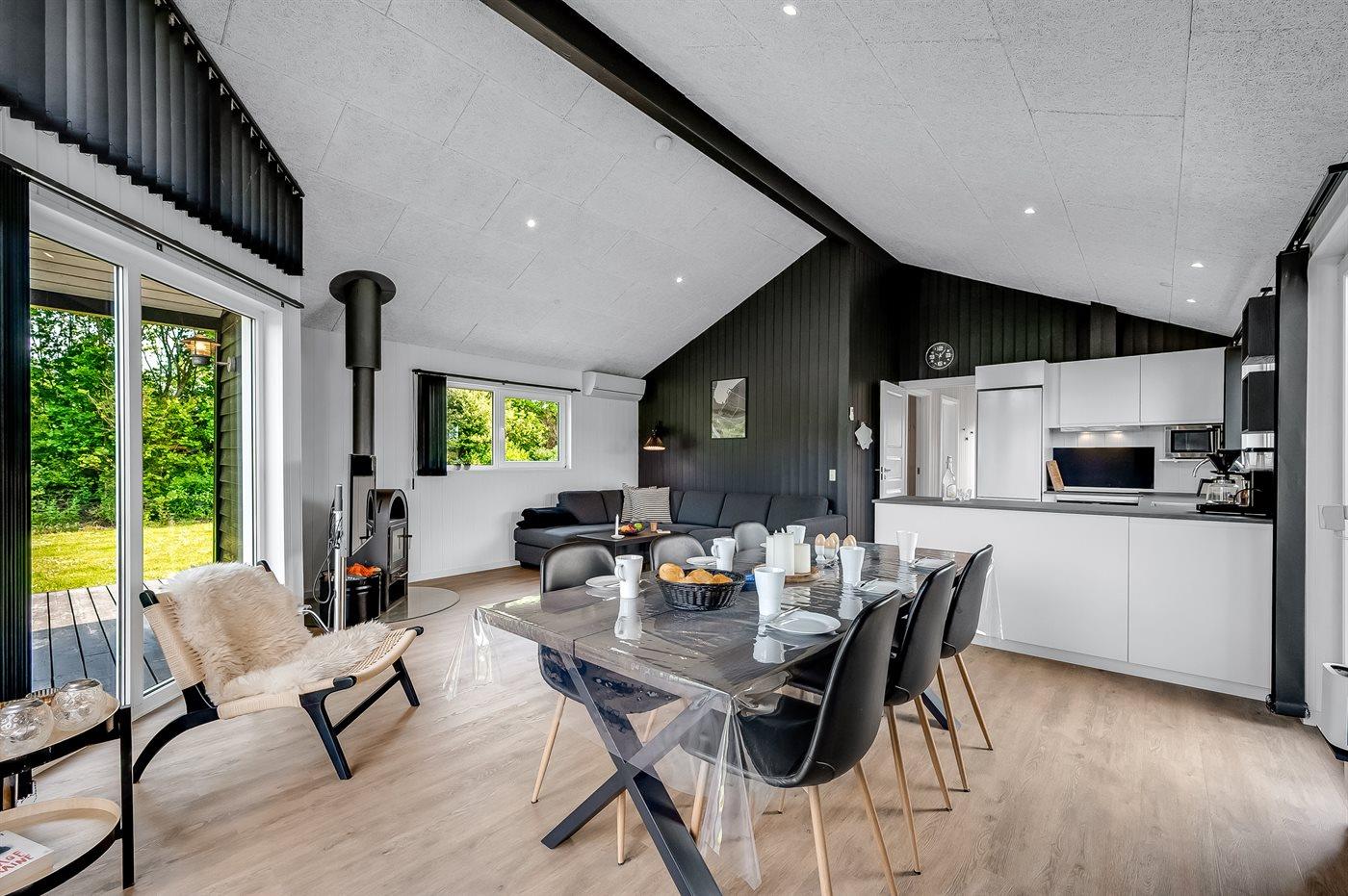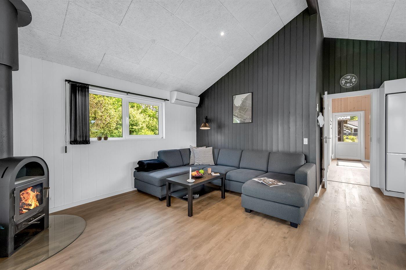 Modern en gerenoveerd vakantiehuis met bubbelbad, houtkachel en groot terras in de natuur nabij fjord.