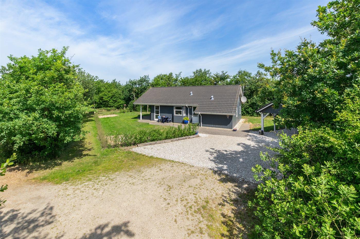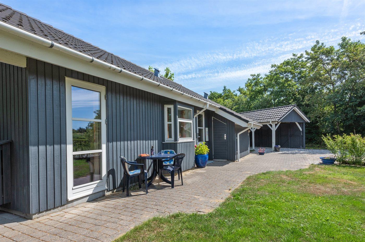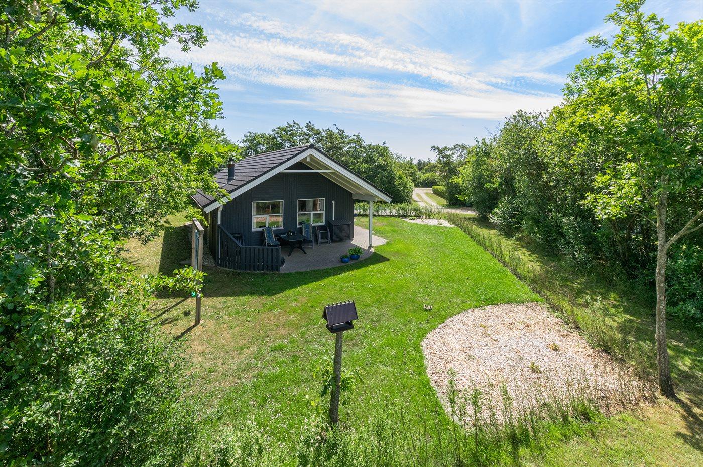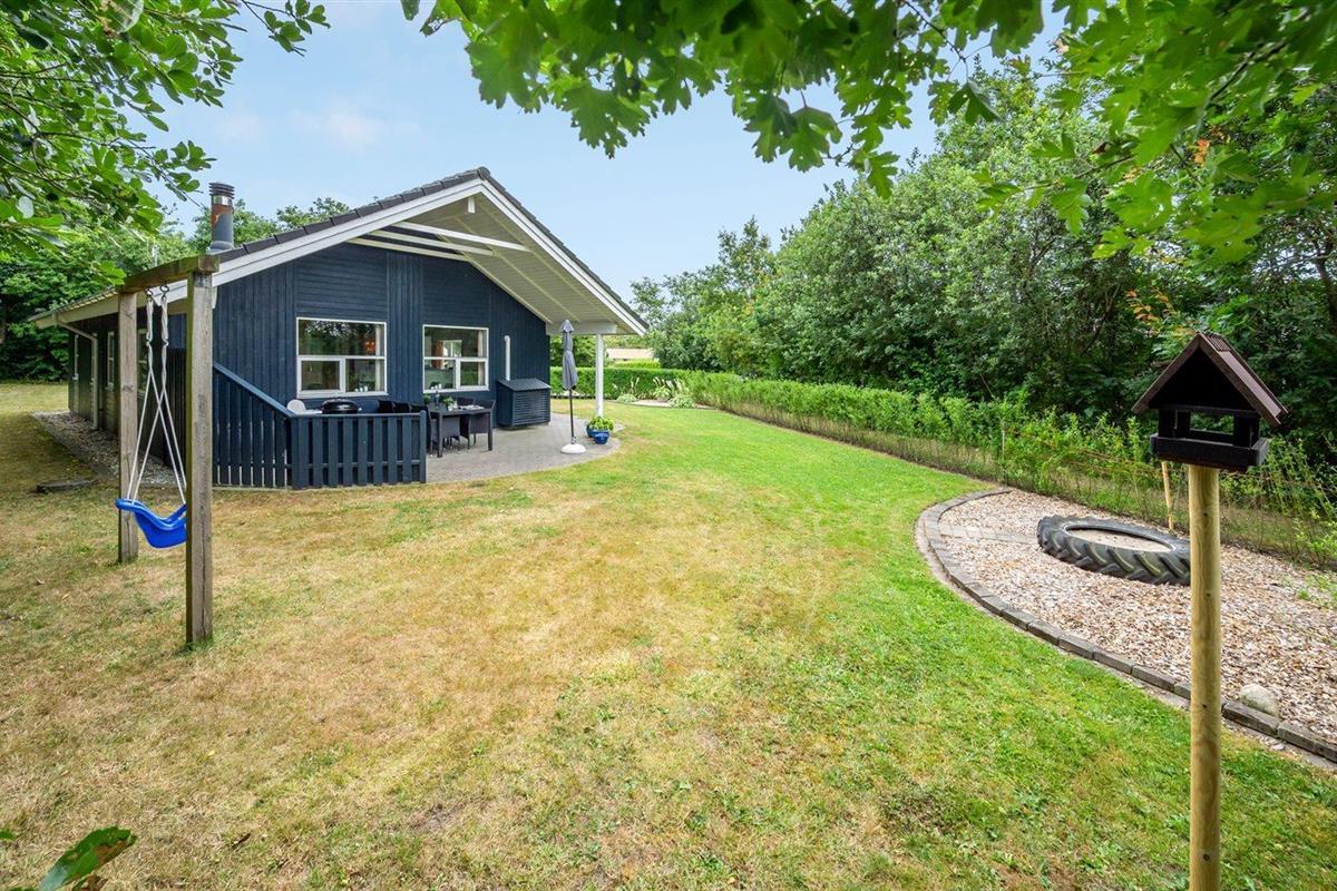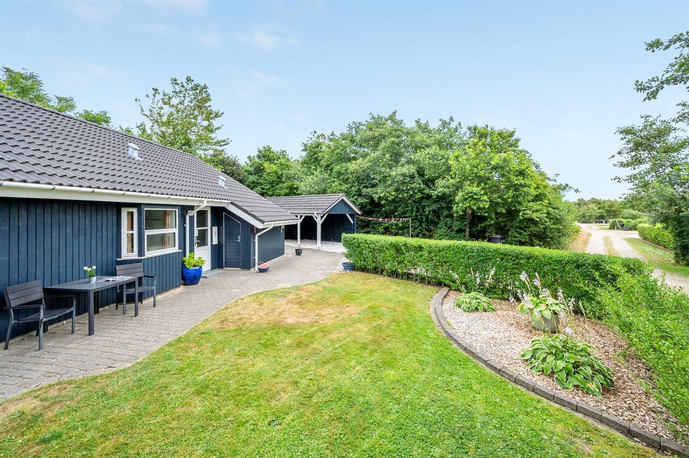 De vakantiewoning is gelegen op een 968 m² groot aangelegde tuin. Afstand tot de zee 7000 m. Afstand tot de fjord 1000 m. Dichtstbijzijnde winkel 1000 m. Bij de vakantiewoning hoort 24 m² terras. Daarnaast is er een 14 m² groot overdekt terras. Gereedschapsruimte. Schommel. Zandbak. Carport ter beschikking. Parkeerplaats bij het huis.