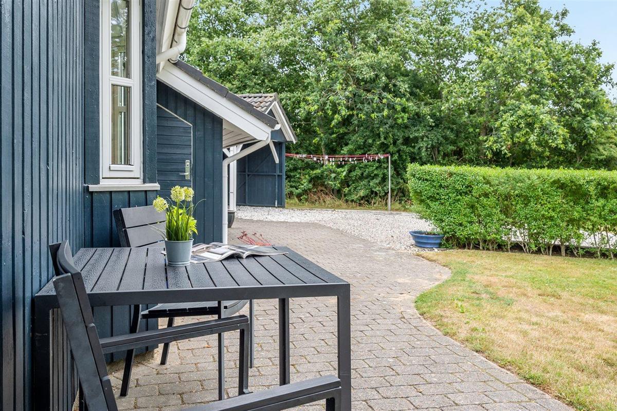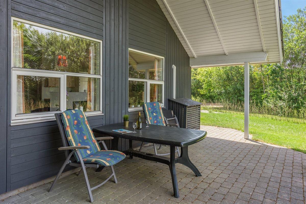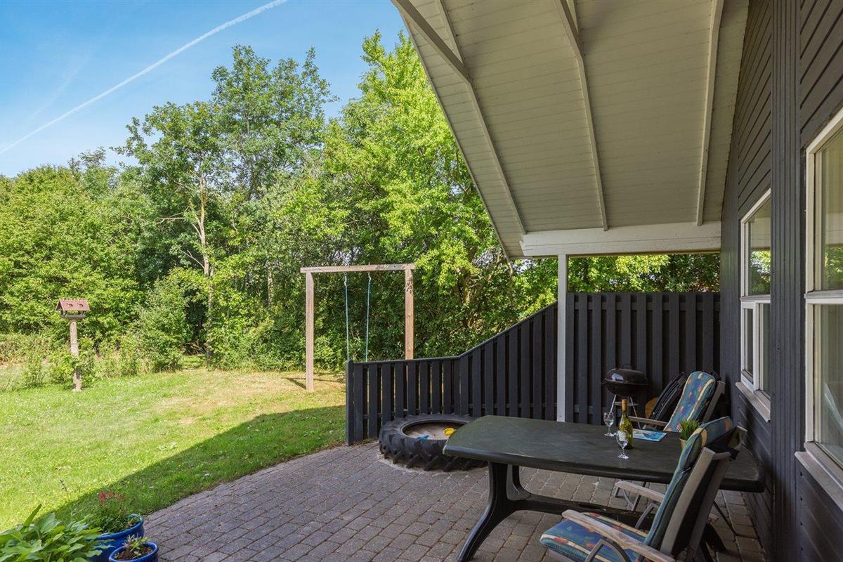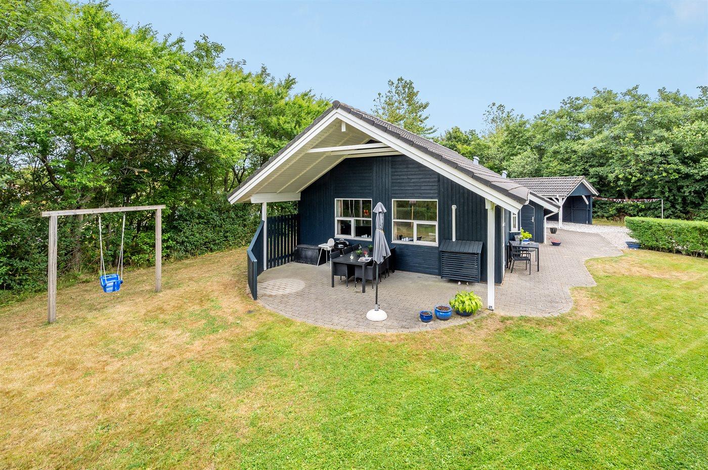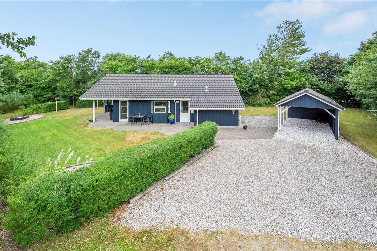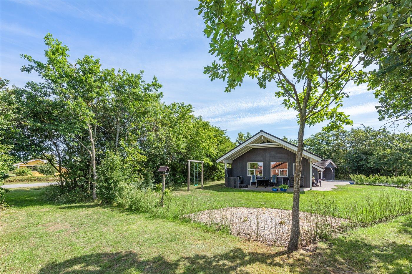 De vakantiewoning is gelegen op een 968 m² groot aangelegde tuin. Afstand tot de zee 7000 m. Afstand tot de fjord 1000 m. Dichtstbijzijnde winkel 1000 m. Bij de vakantiewoning hoort 24 m² terras. Daarnaast is er een 14 m² groot overdekt terras. Gereedschapsruimte. Schommel. Zandbak. Carport ter beschikking. Parkeerplaats bij het huis.