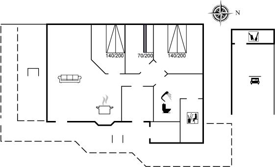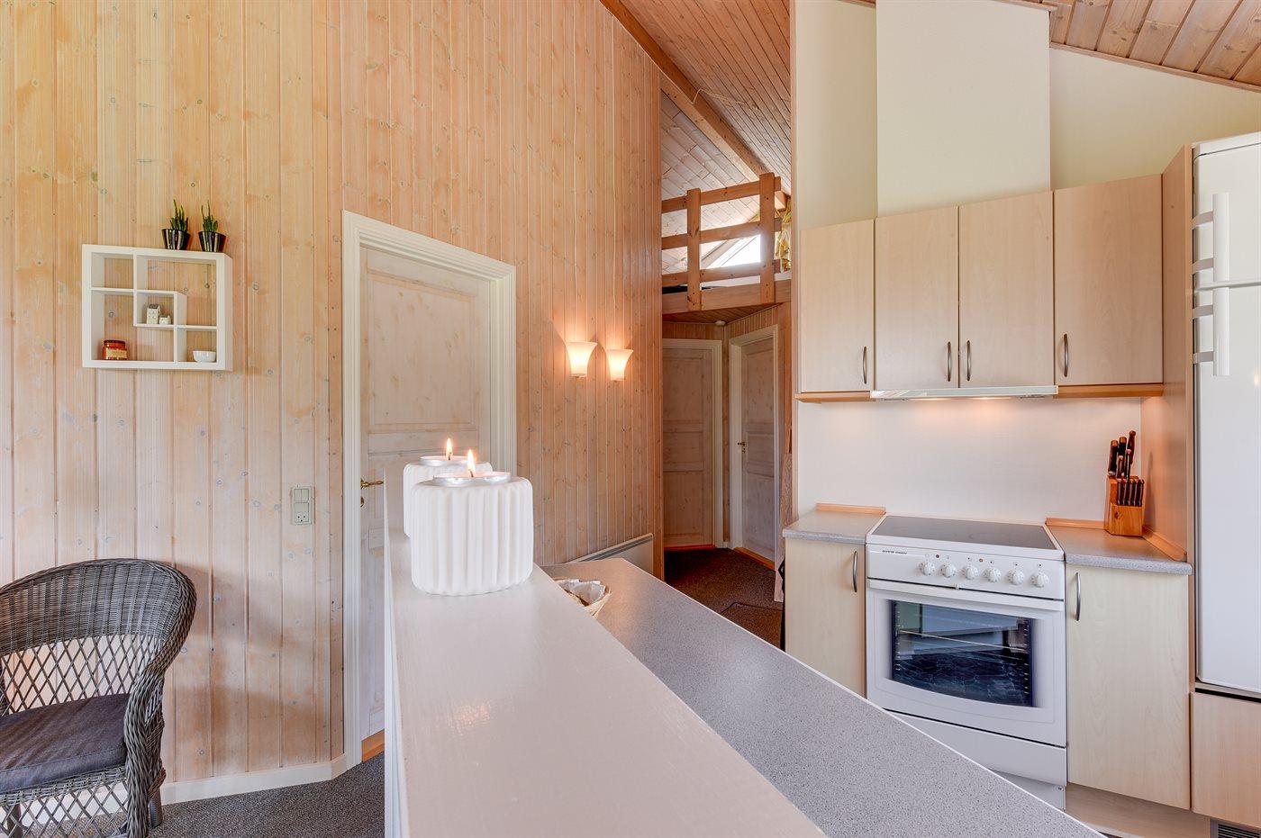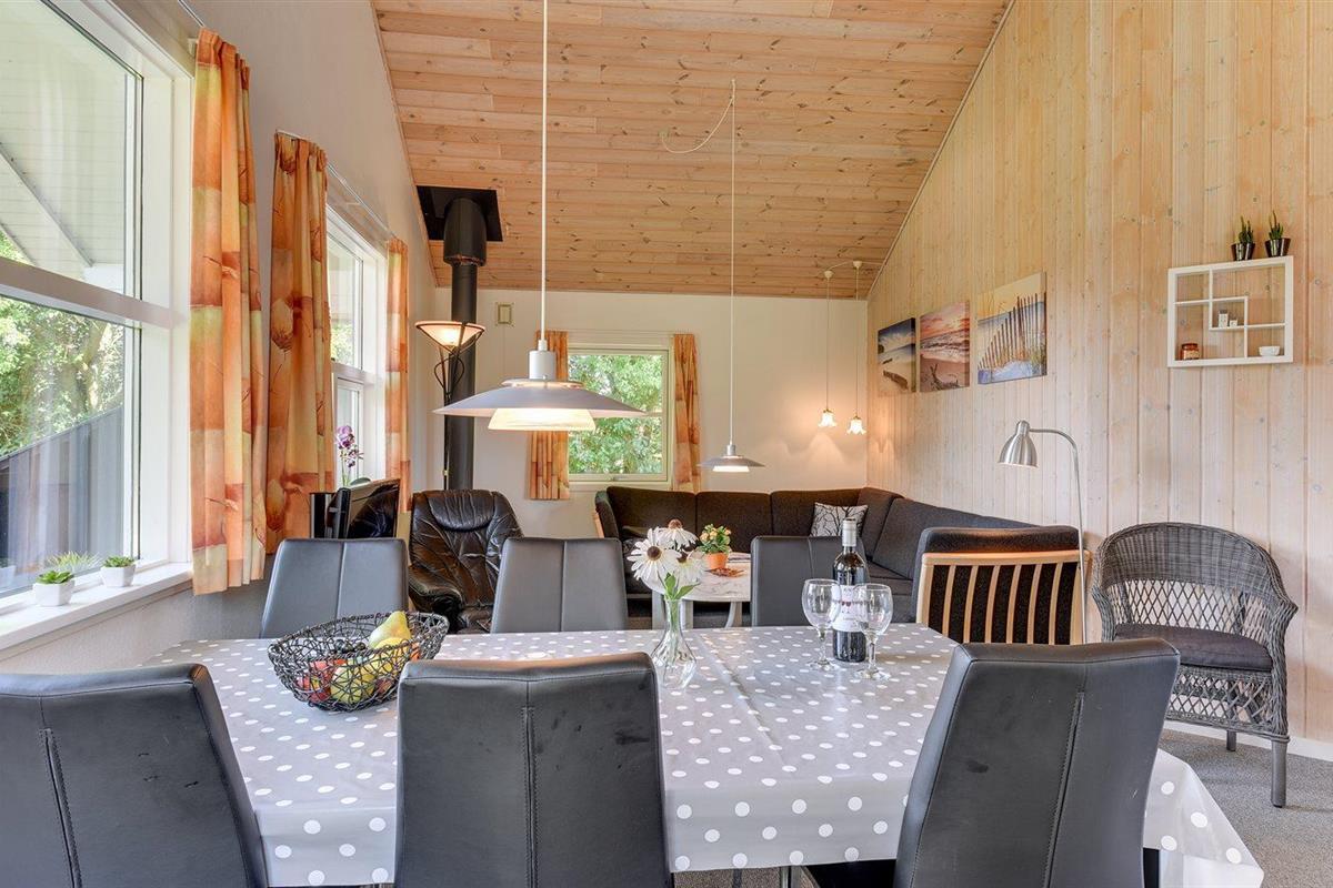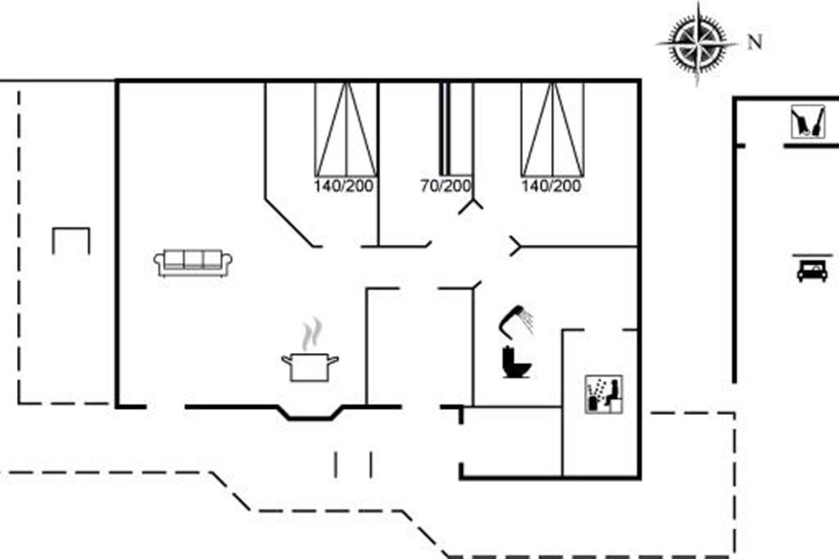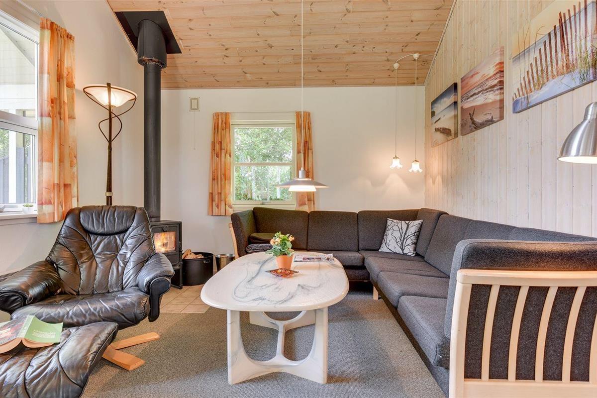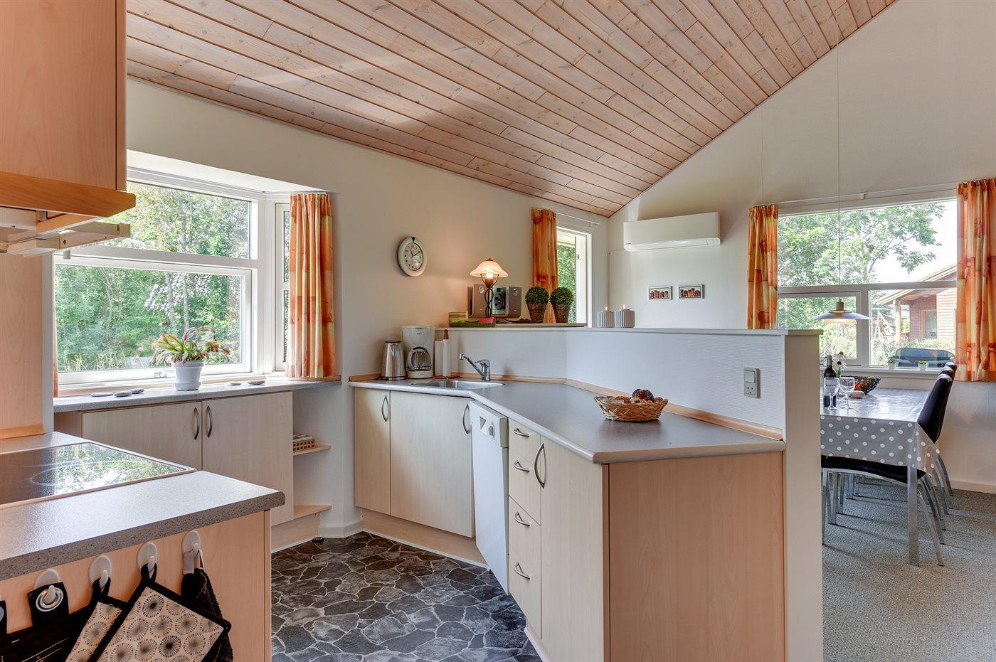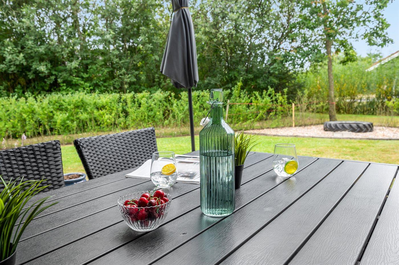 De vakantiewoning is gelegen op een 968 m² groot aangelegde tuin. Afstand tot de zee 7000 m. Afstand tot de fjord 1000 m. Dichtstbijzijnde winkel 1000 m. Bij de vakantiewoning hoort 24 m² terras. Daarnaast is er een 14 m² groot overdekt terras. Gereedschapsruimte. Schommel. Zandbak. Carport ter beschikking. Parkeerplaats bij het huis.